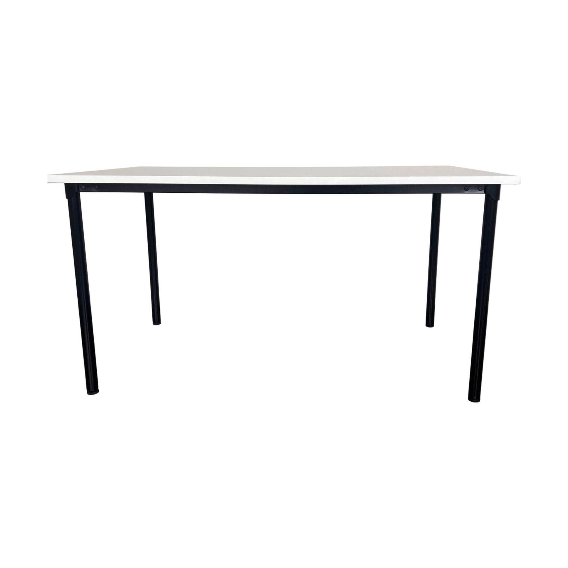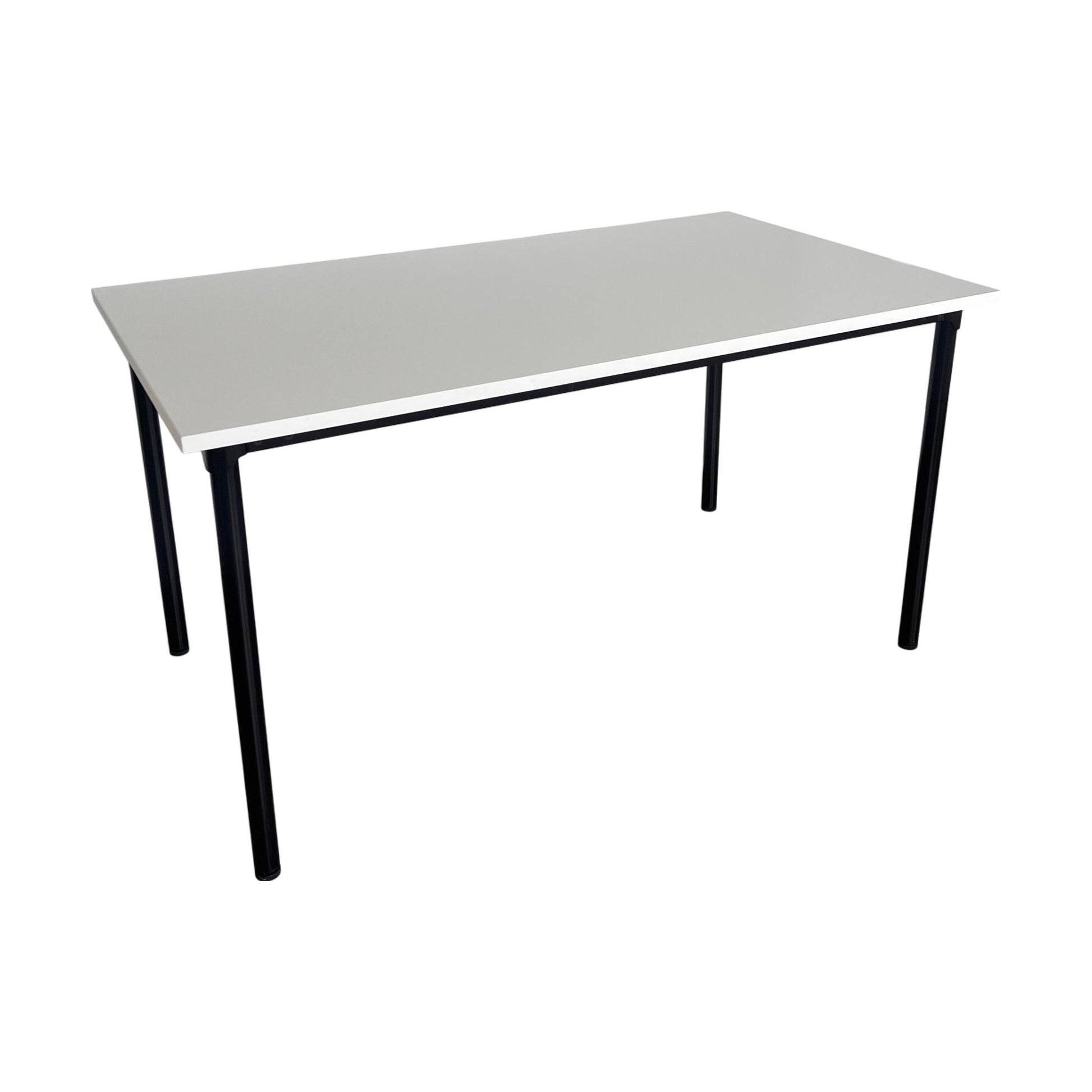 Solid møtebord med en slitesterk hvit laminat bordplate og et robust understell. Bordet gir et stilrent og profesjonelt preg, og egner seg godt i møterom, kontorer og andre arbeidsmiljøer.