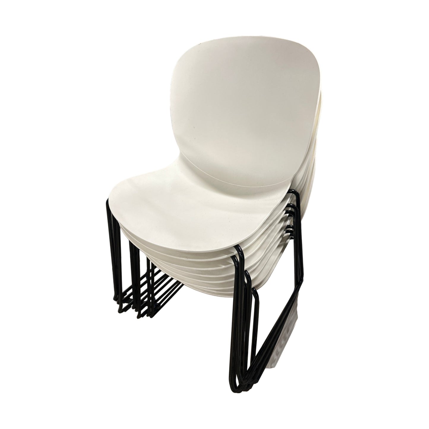 Praktisk stabelbar møtestol fra RBM i hvit, perfekt for møterom eller kontorlandskap. Dent klassiske designen kombinerer behagelig sittekomfort med solid konstruksjon, ideell for både korte og lange møter.