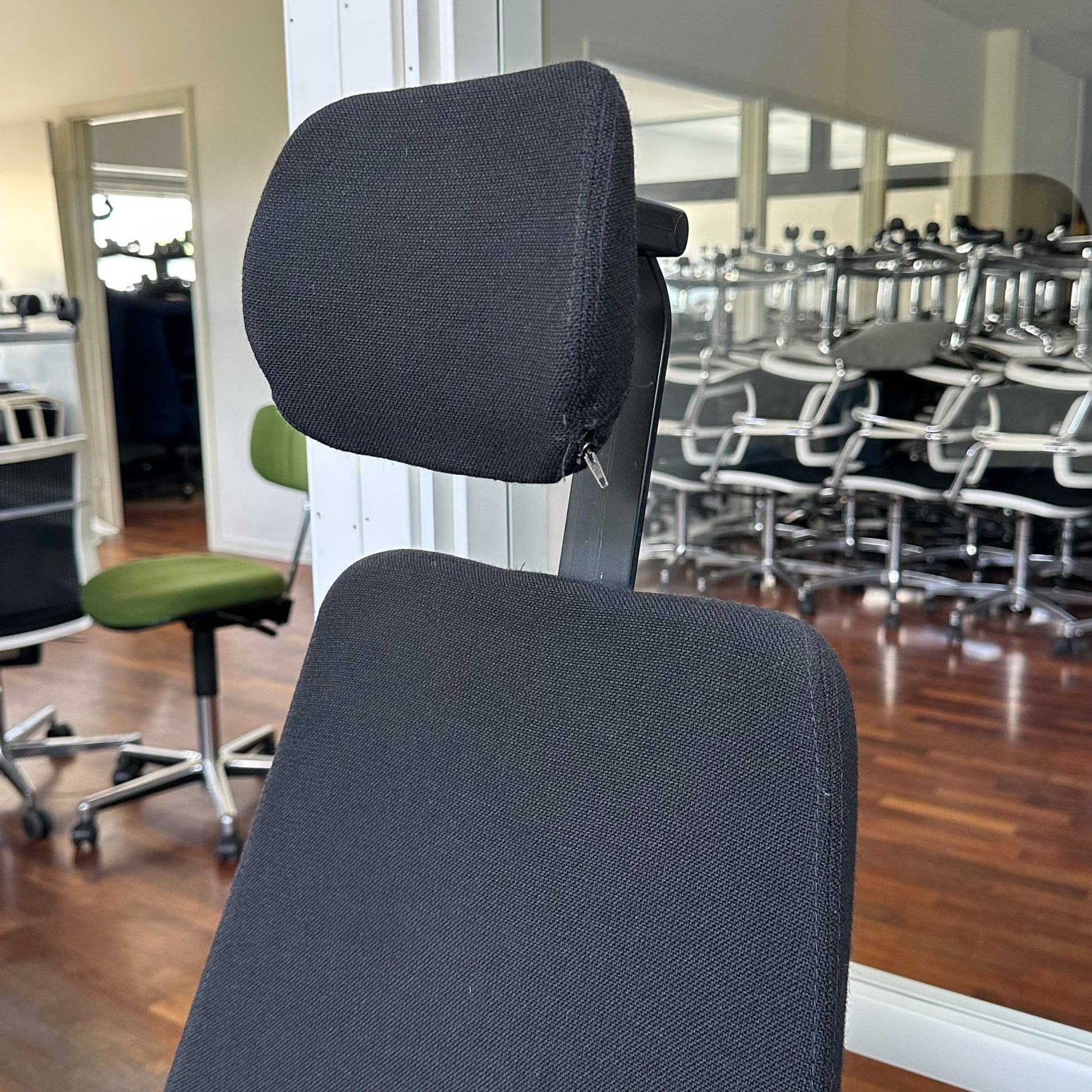 Stolen er i utmerket tilstand med minimalt slitasje. Det er ingen synlige merker på stoffet, og alle justeringsmekanismer fungerer som de skal, noe som sikrer en komfortabel og praktisk brukeropplevelse.