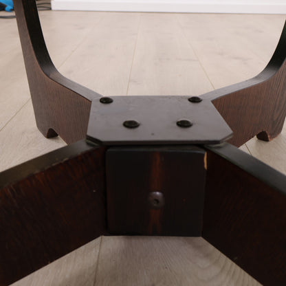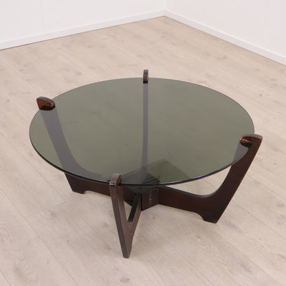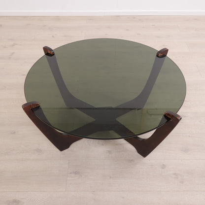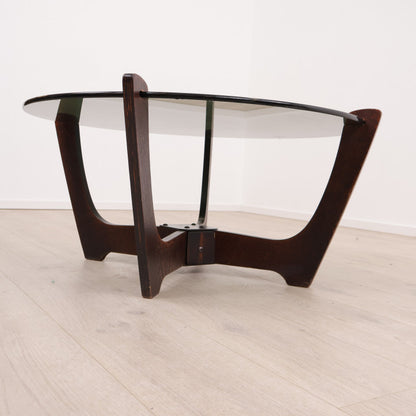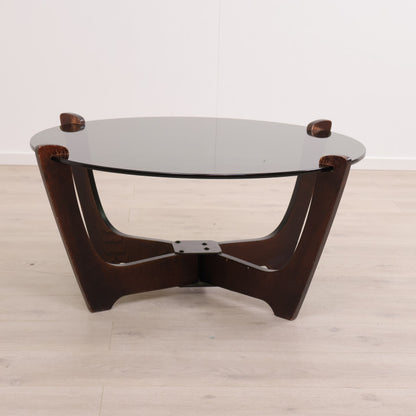 Retro salongbord i brunt tre med glassplate