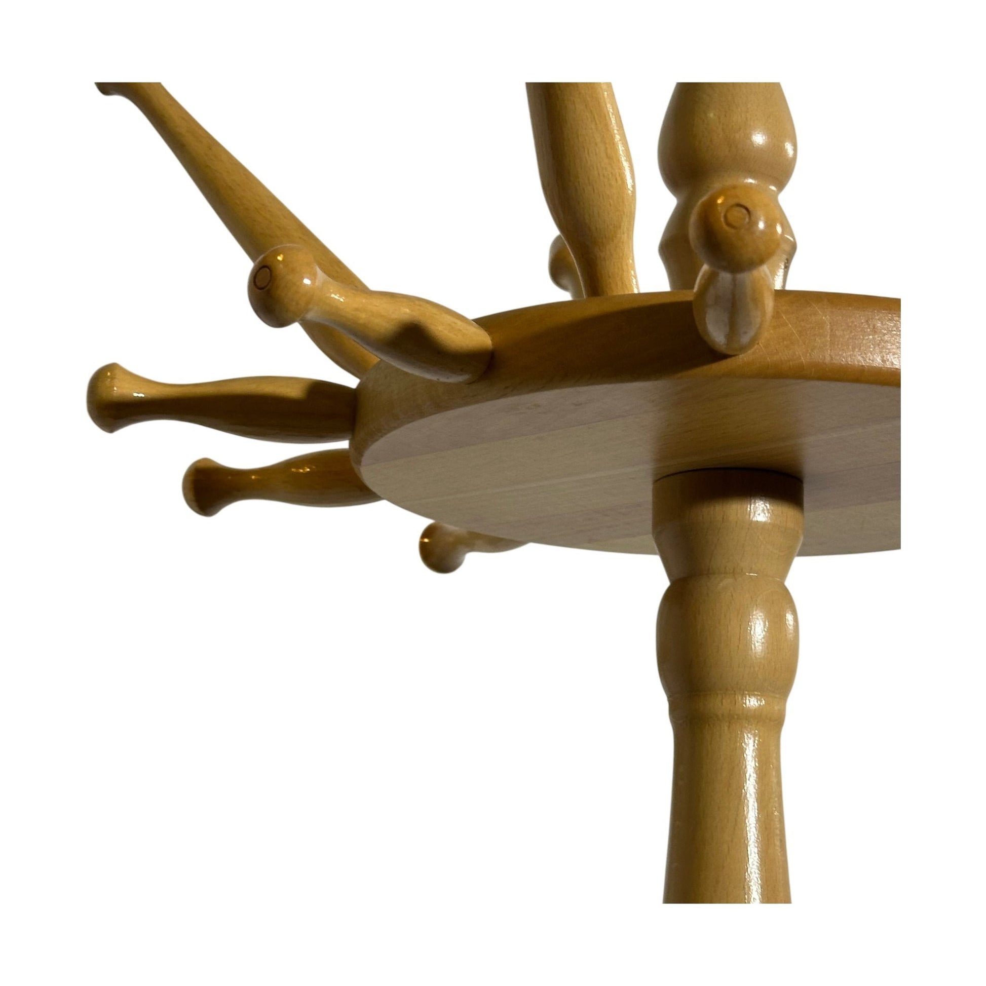 Stumtjener i tre er en praktisk og dekorativ løsning for oppbevaring av yttertøy og tilbehør. Den har en naturlig trefarge som gir et varmt og innbydende uttrykk, og med sin funksjonelle design kan den passe inn i både entréen og stuen.