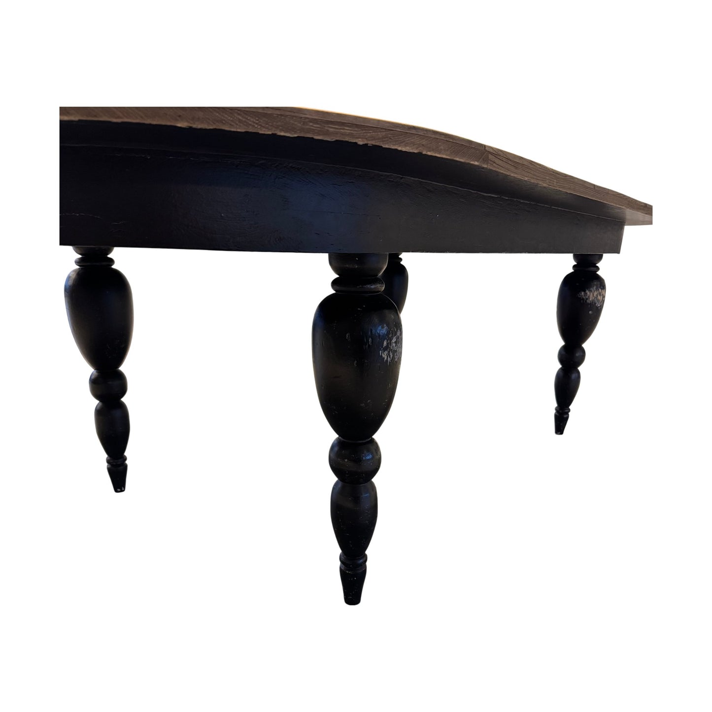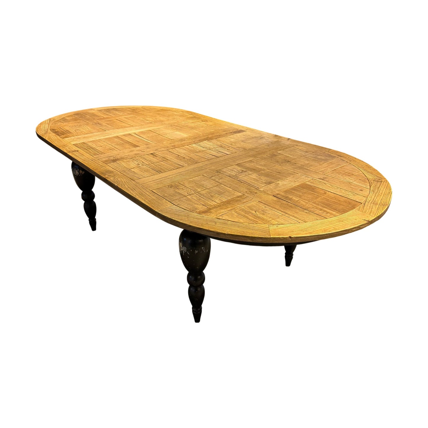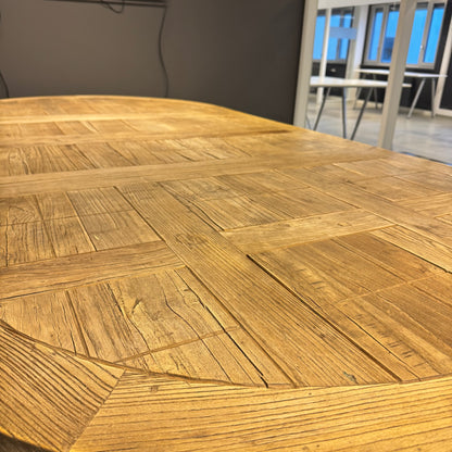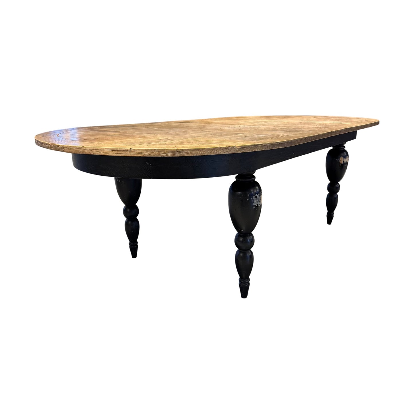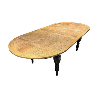 Romslig, retro spisebord i massiv eik med sorte ben, 260cm