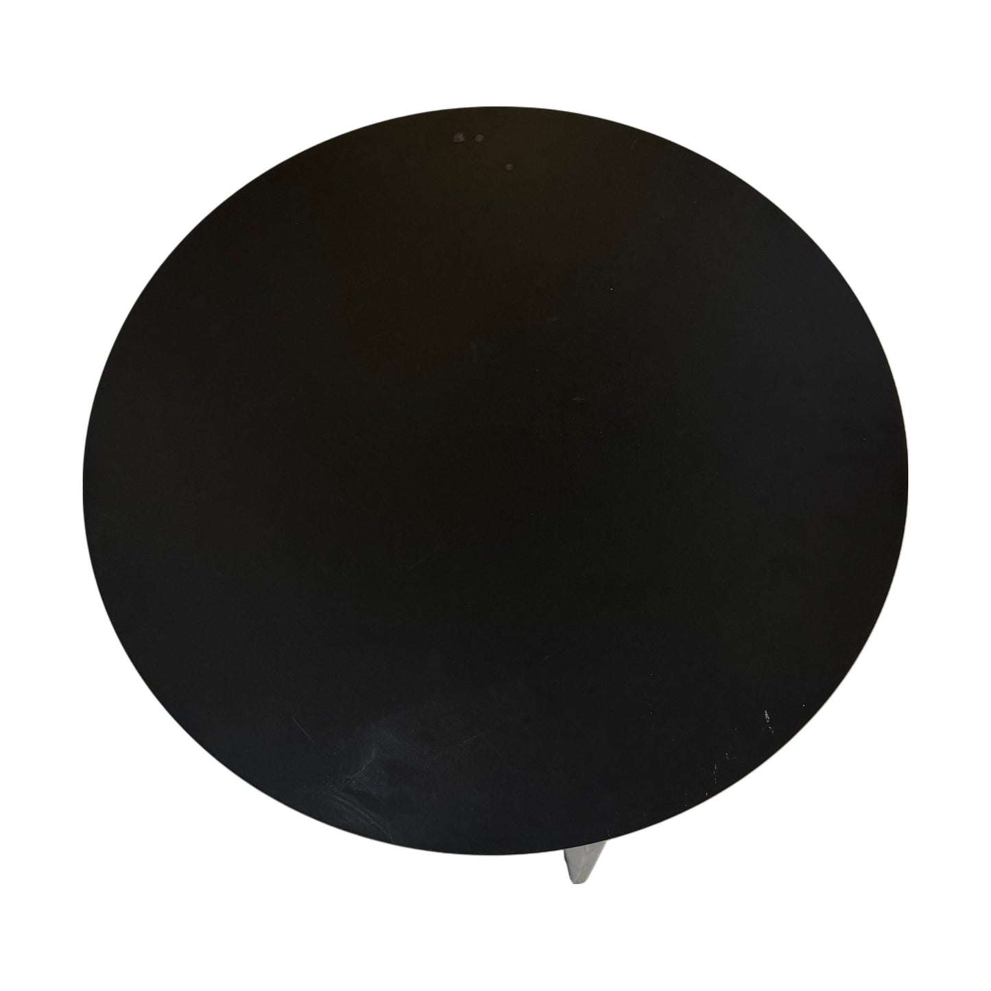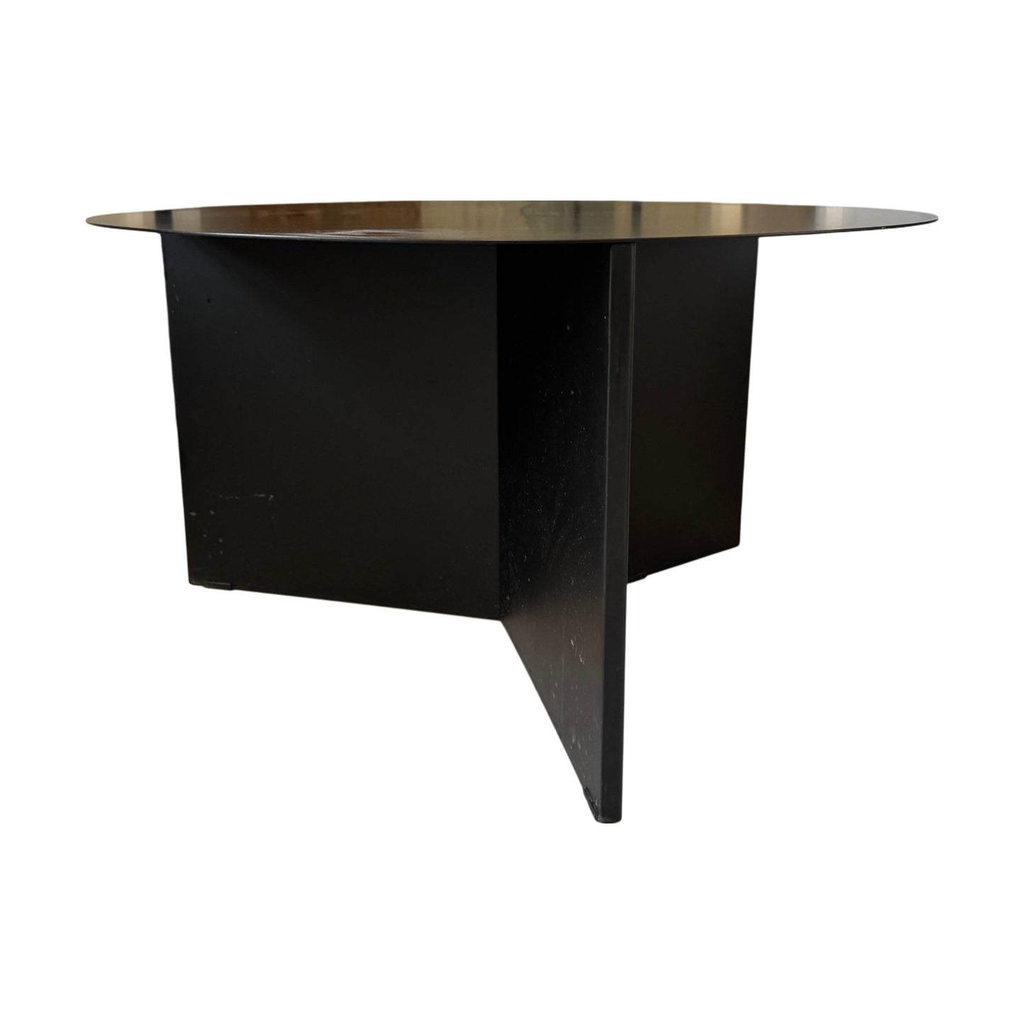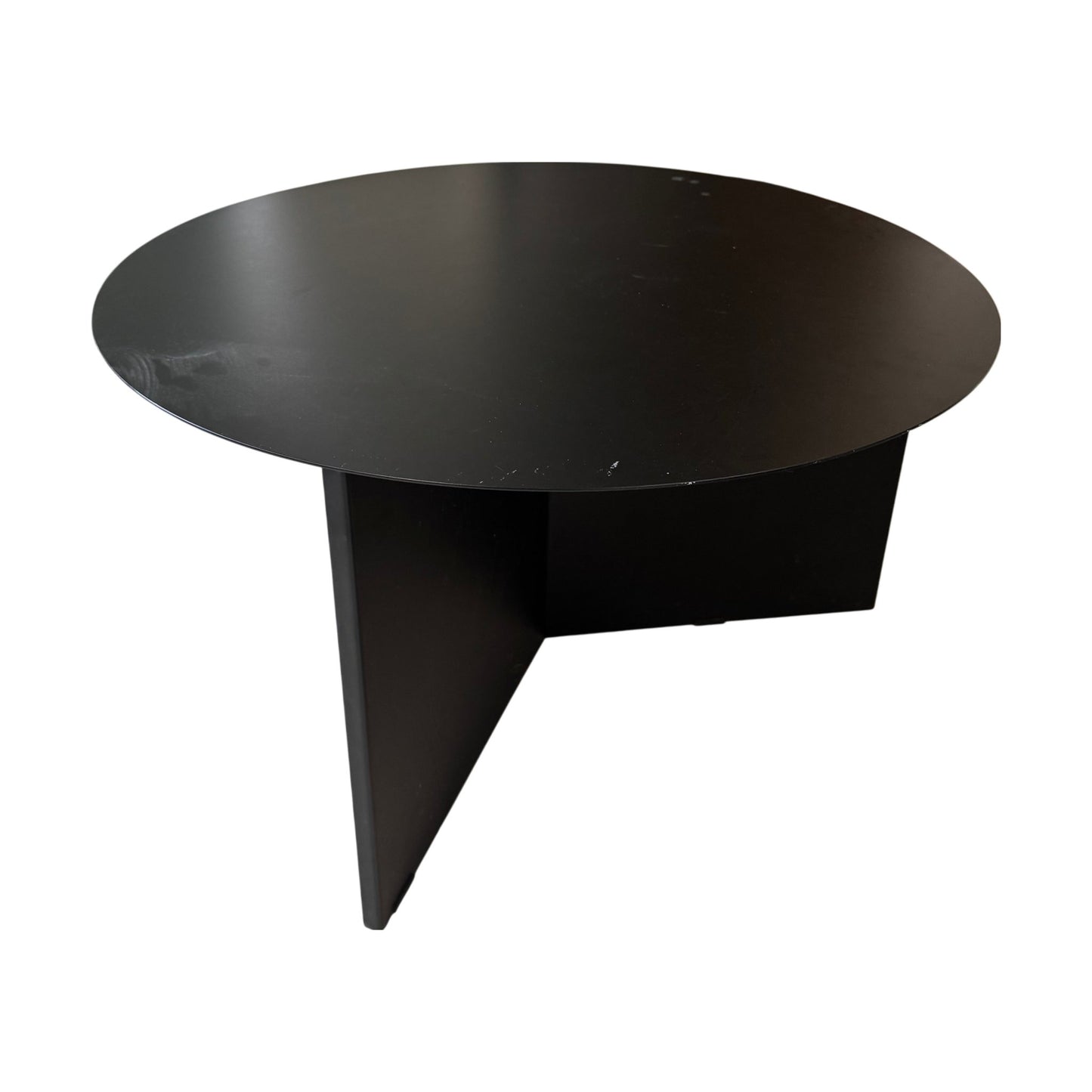 Dette runde bordet i svart er et moderne og stilrent møbel som passer perfekt til stuen eller som et sidebord. Med sin enkle og runde form, gir dette bordet et minimalistisk preg og er enkelt å plassere i ulike interiører.