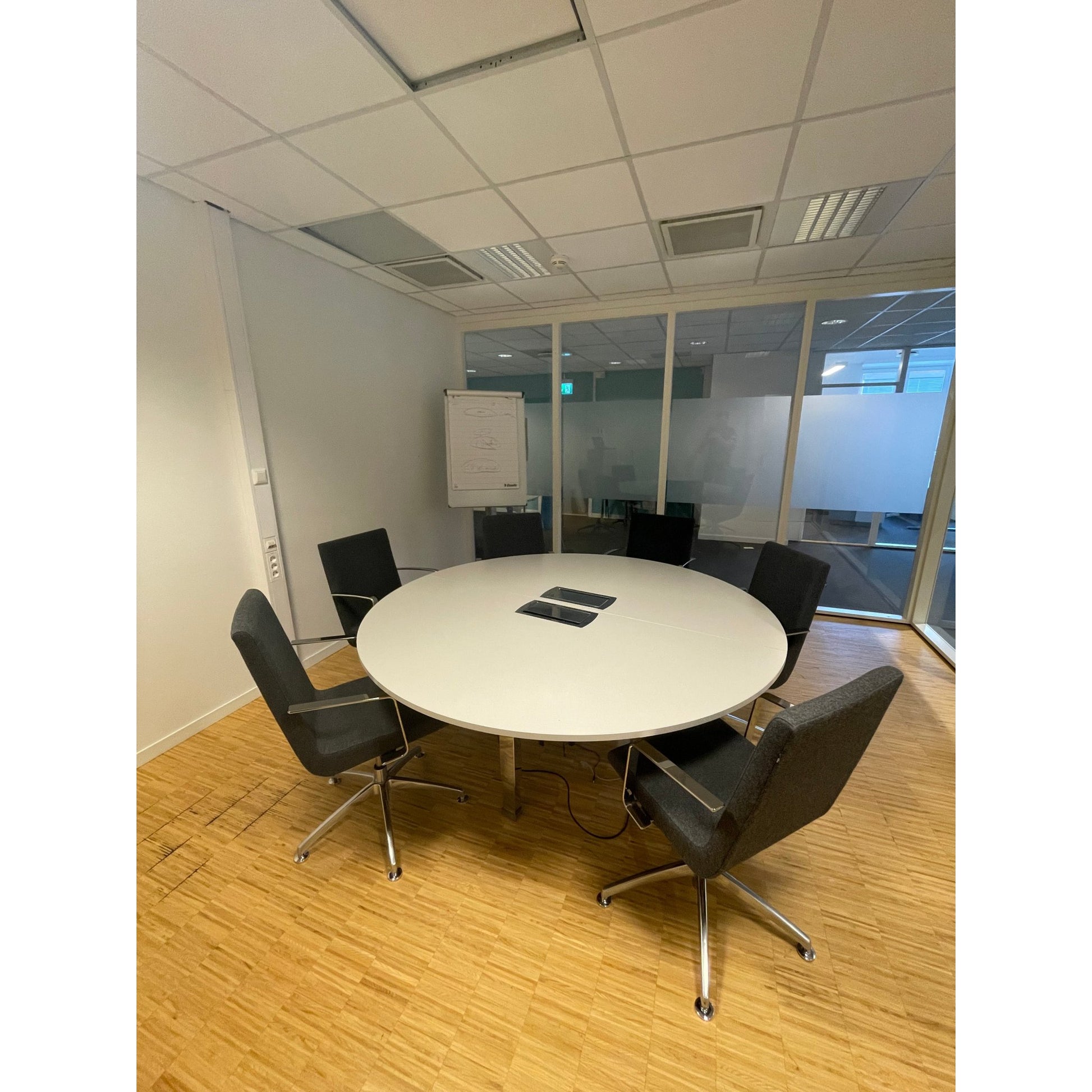 Bordet fremstår i utmerket tilstand og har minimal slitasje, noe som sikrer både estetikk og funksjonalitet i møte- og kontorbruk.
