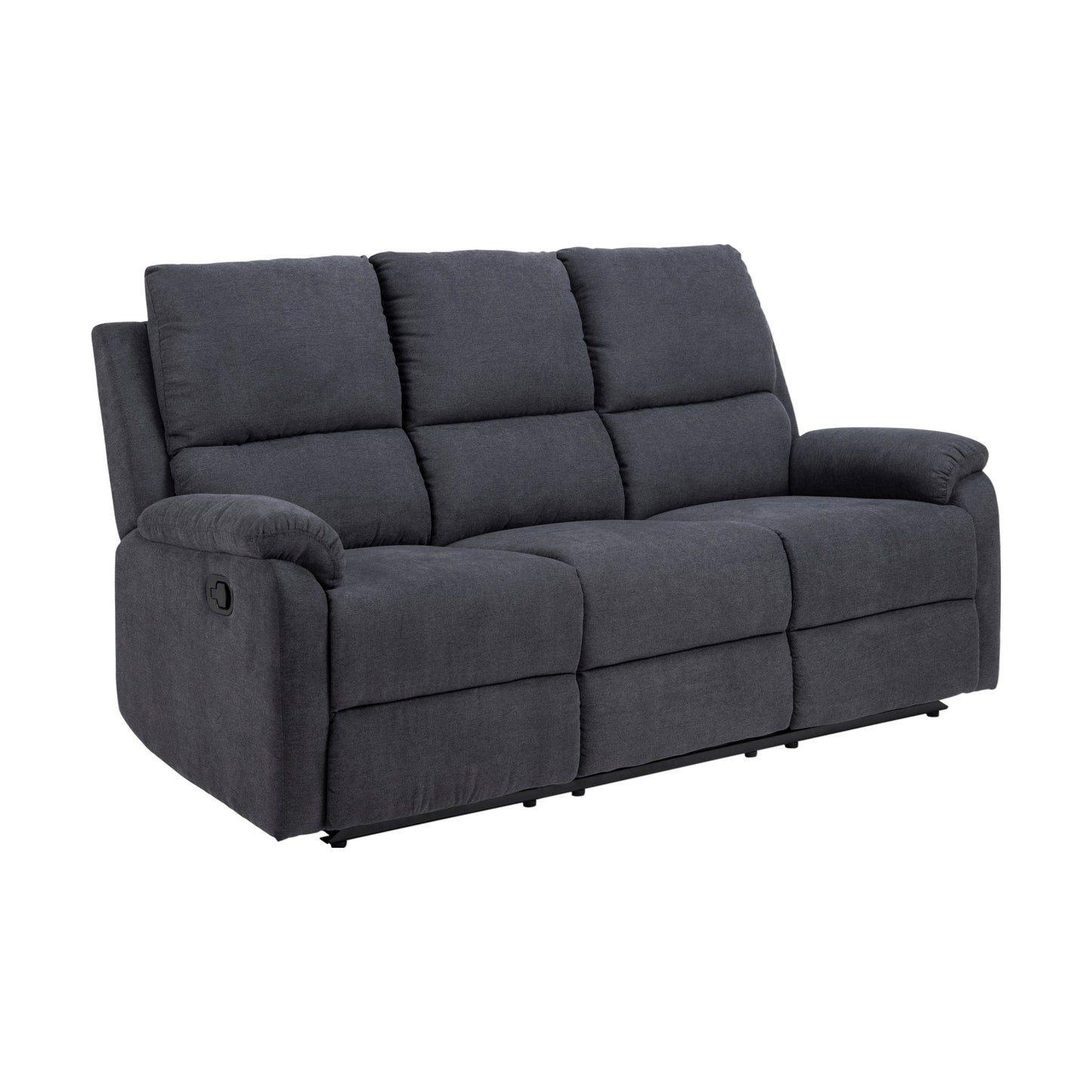 Sabia reclinersofa er en praktisk og komfortabel 3-seter sofa, ideell for både avslapning og sosiale anledninger. Den har et stilrent, moderne design med høy rygg og myk sittekomfort, trukket i slitesterkt, mørkt grått polyesterstoff. Recliner-funksjonen aktiveres enkelt med en spak plassert på utsiden av armlenet, noe som gjør det lett å få opp bena og nyte en god bok eller se favorittprogrammet ditt på TV.