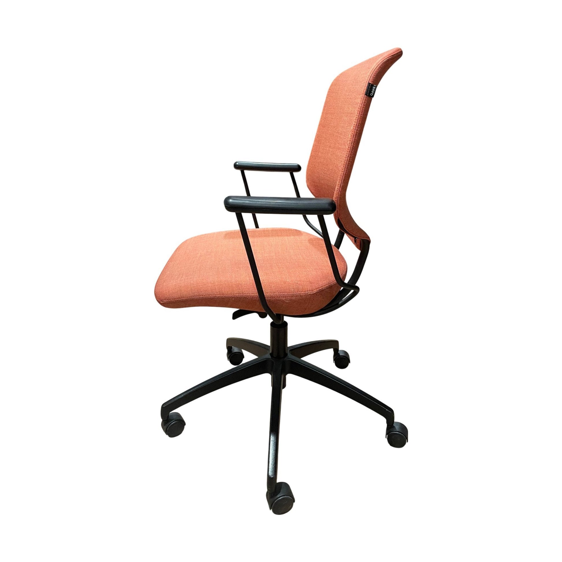 Moderne møteromsstol fra Savo, designet med fokus på komfort og funksjonalitet. Stolen har et polstret sete og rygg i en varm rød farge, som gir en innbydende atmosfære i møterommet. Armlenene gjør den ekstra behagelig for lange møter, og den stilige base med hjul gjør den lett å flytte rundt. Dette er en stol som passer utmerket til både kontorer og konferanser.