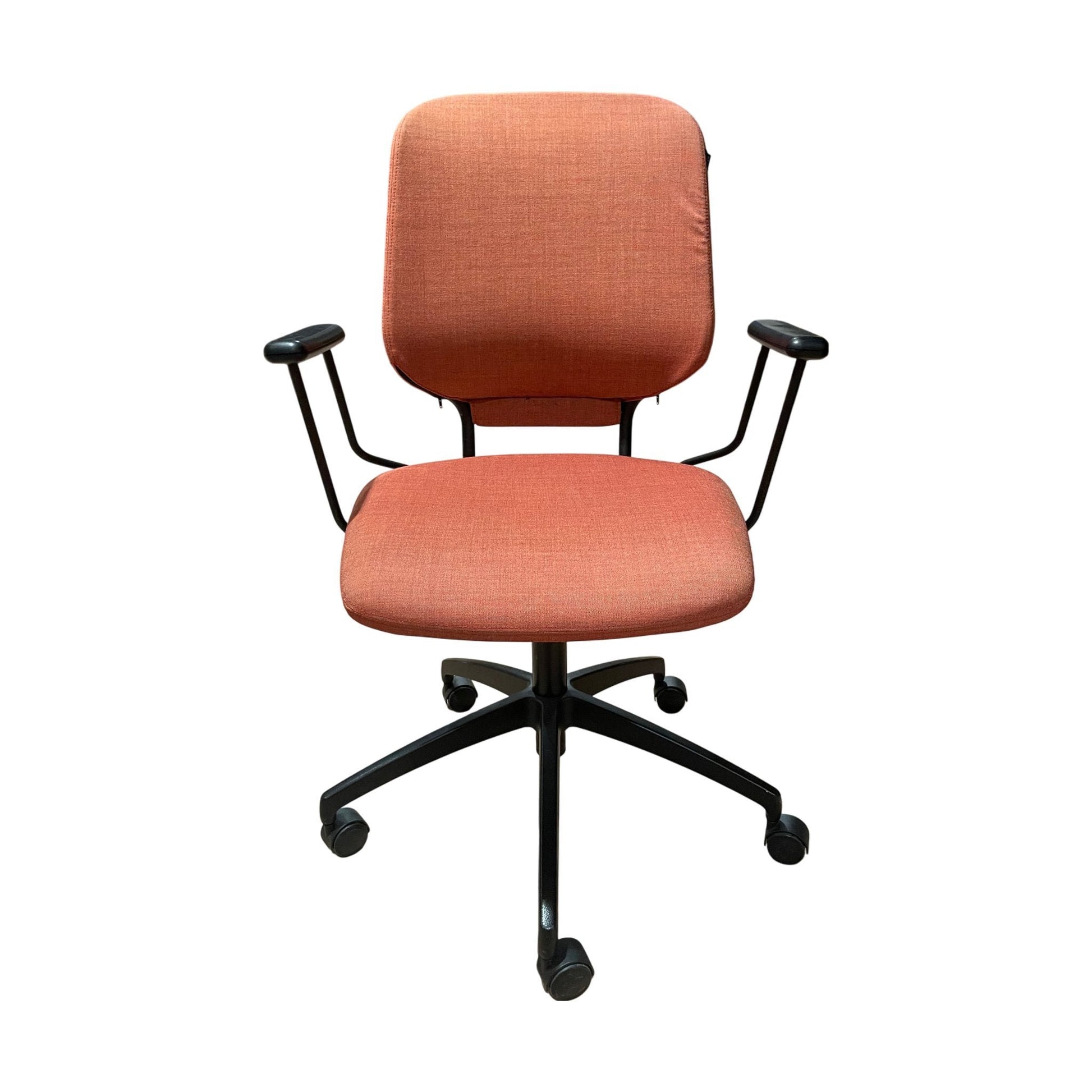 Stolen er i god tilstand med merkbare merker i armlenene etter bruk. Tross disse merker, er helhetsinntrykket fortsatt positivt, og stolen er klar til bruk for mange flere møter.