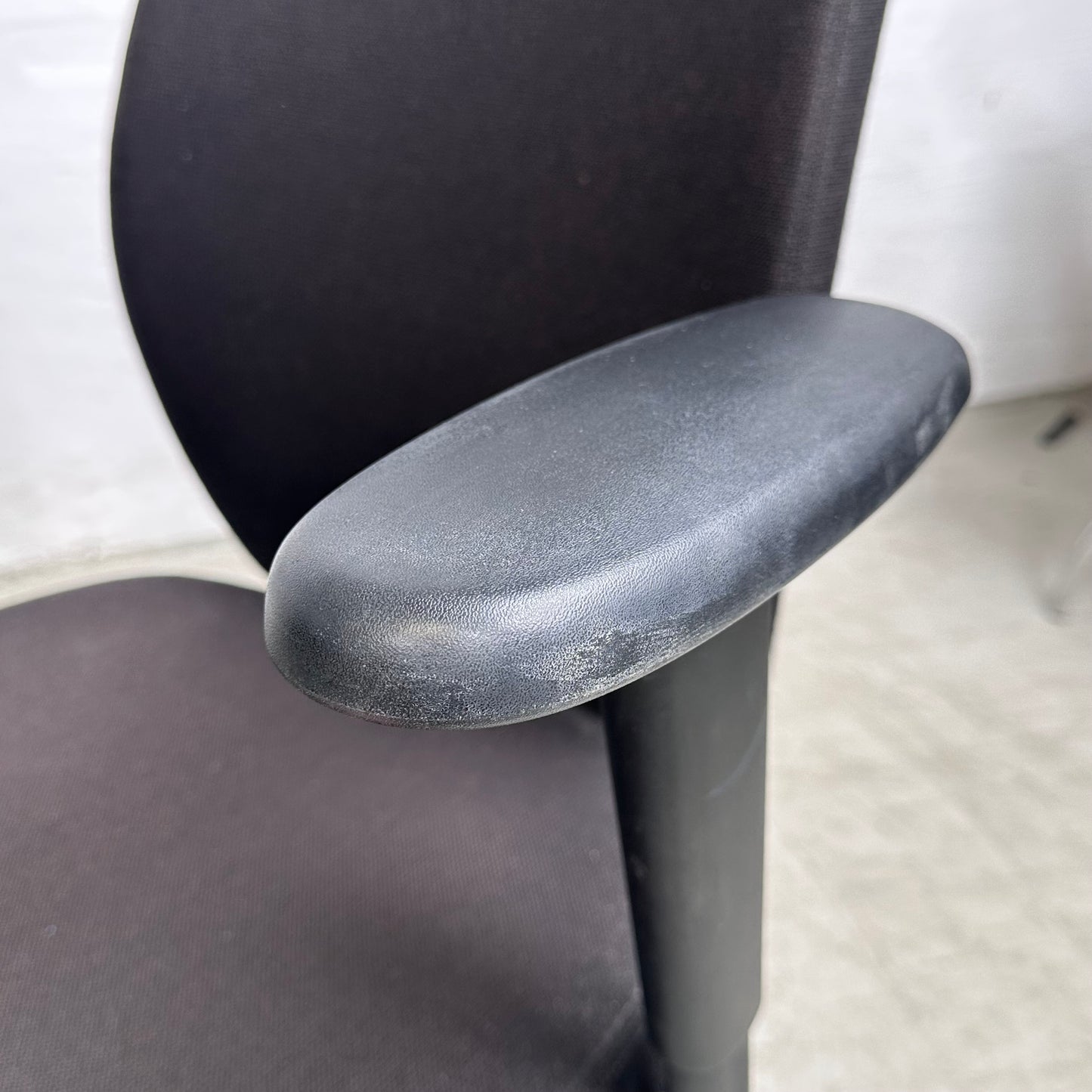 Stolen er i god tilstand med noen merker på ryggen etter fjerning av nakkestøttene, samt noen flekker på armlenene. Helhetsinntrykket er fortsatt svært godt, og alle funksjoner virker som de skal.