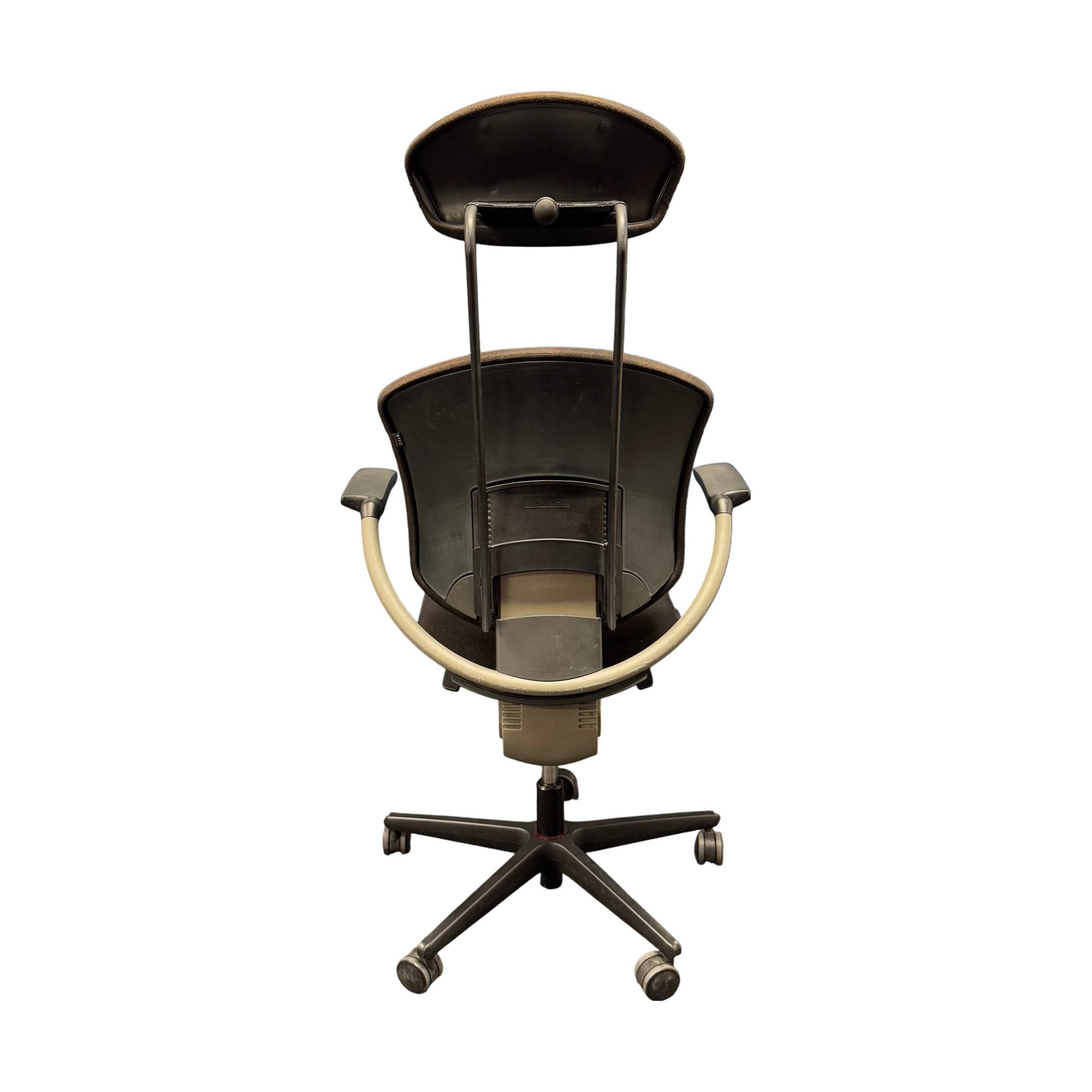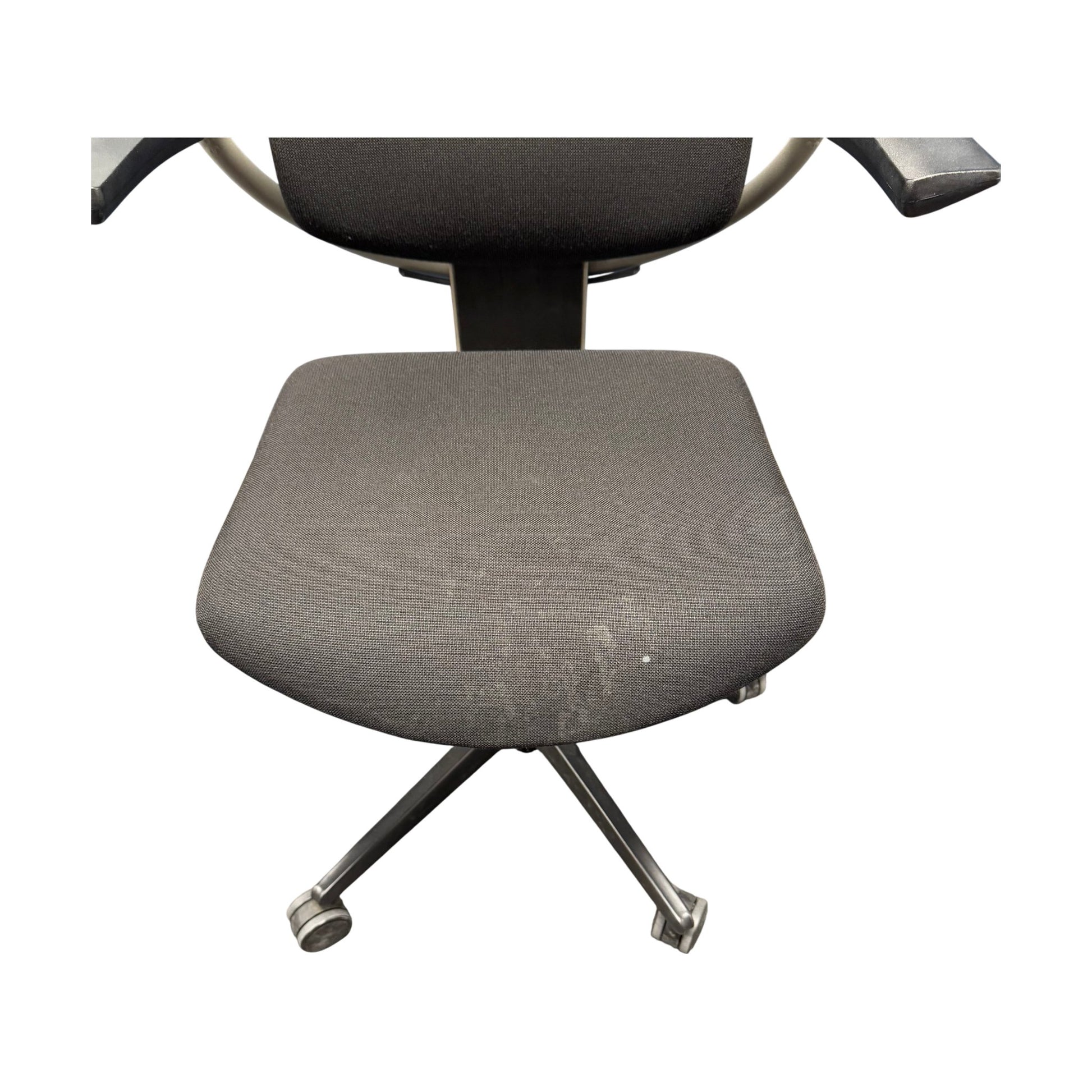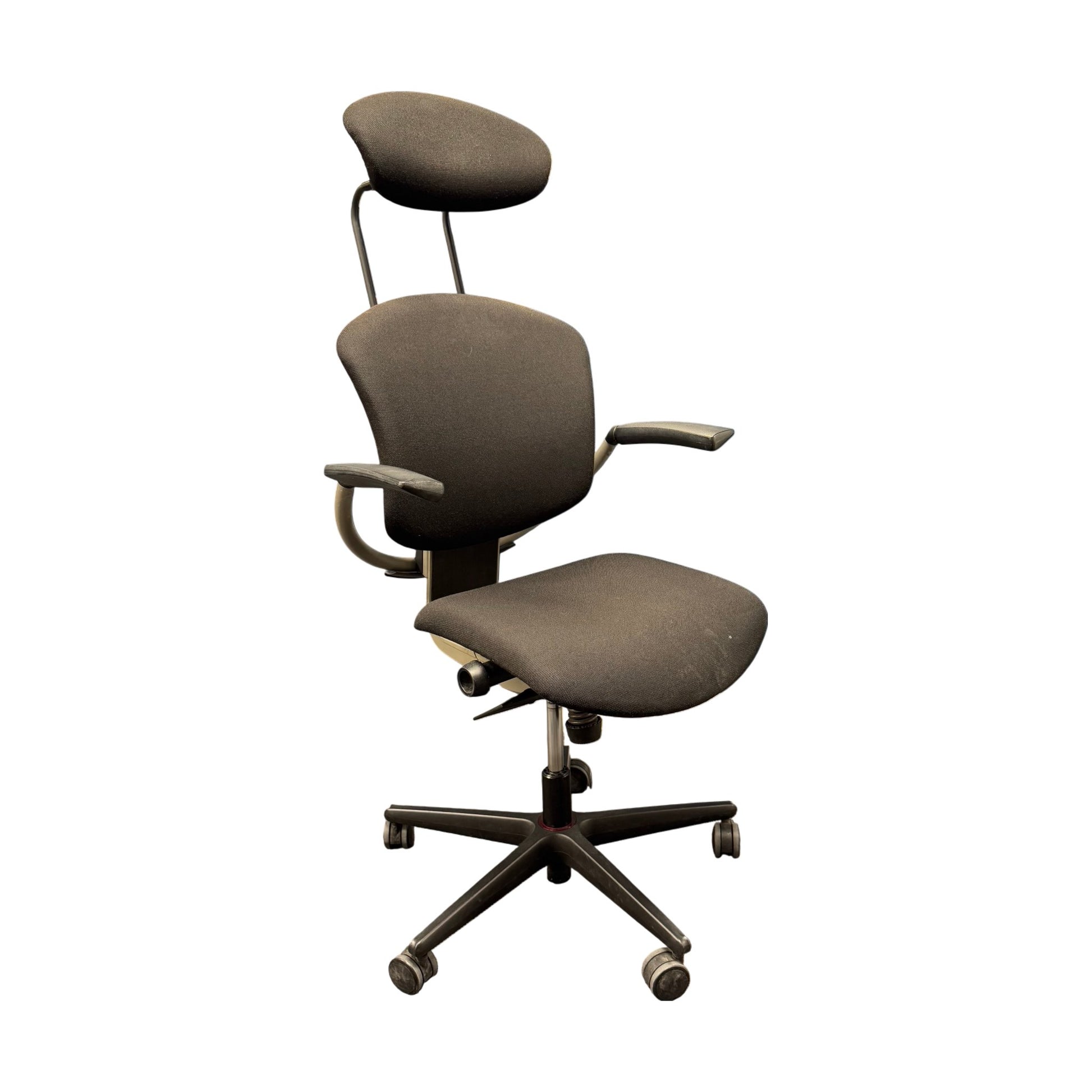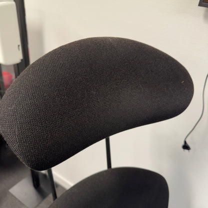 Stolen er i god stand med kun generell bruksslitasje i stoffet og et merke på ryggen. Stolen er godt bevart, og viser ikke tegn til slitasje som påvirker komfort eller funksjonalitet.