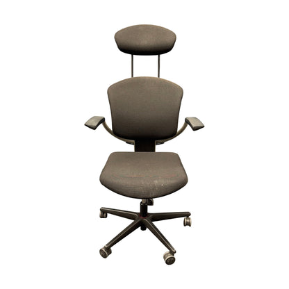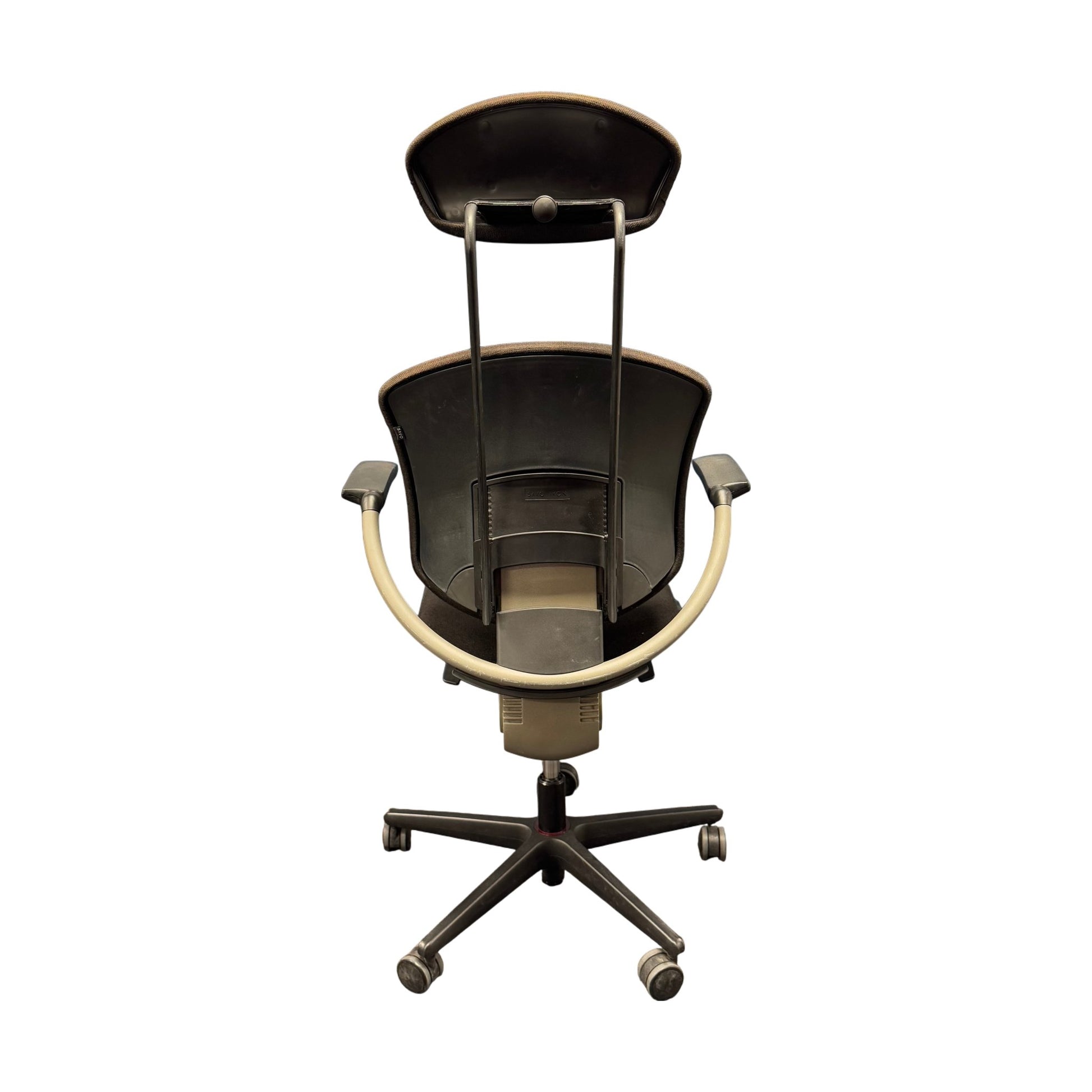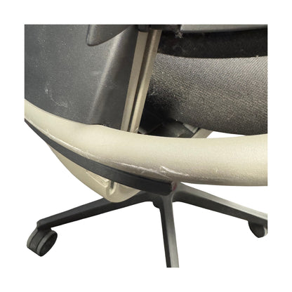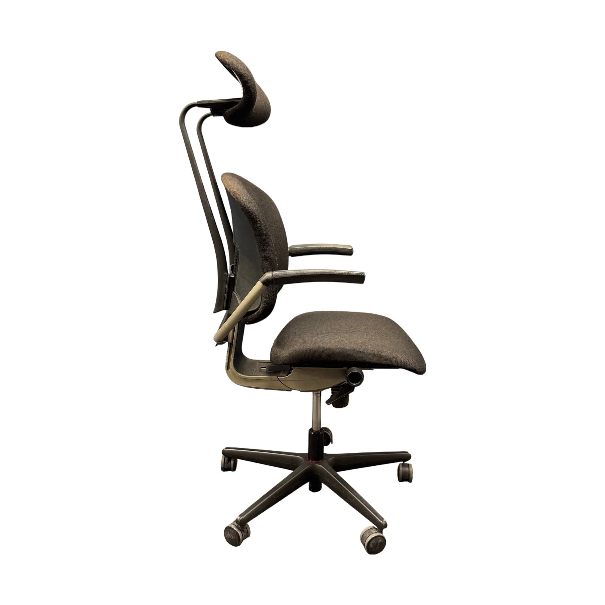 Stolen er i god stand med kun generell bruksslitasje i stoffet og et merke på ryggen. Stolen er godt bevart, og viser ikke tegn til slitasje som påvirker komfort eller funksjonalitet.