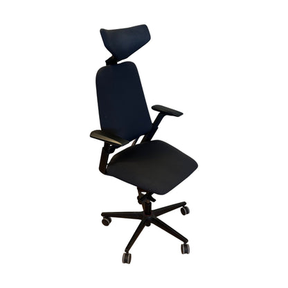 Kontorstol fra Savo i modellen S3, med et stilrent og moderne design. Denne stolen har et sort trekk og en ergonomisk utforming som gir god støtte under lange arbeidsøkter.