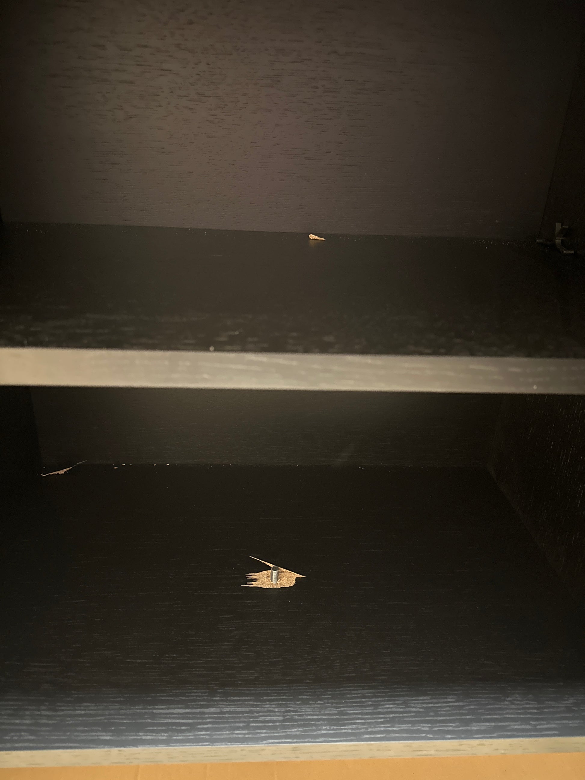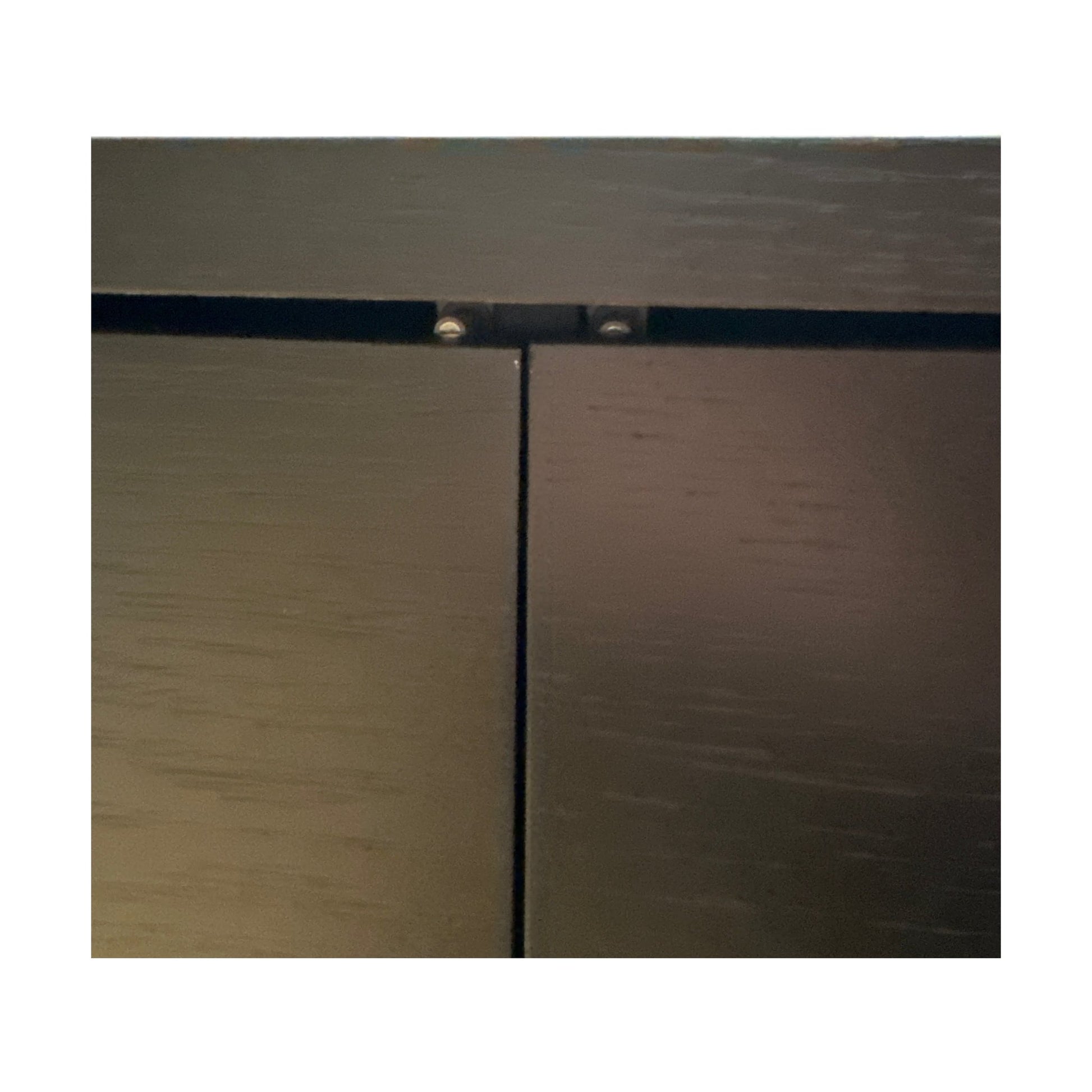 Skjenken er i god stand, men har noen synlige bruksmerker. Dørene har fått seg et hakk og står ikke helt i vater, noe som påvirker lukningen noe. Selv om lukkemekanismen ikke fungerer som normalt, kan dørene fortsatt åpnes og lukkes som en vanlig dør fra bunnen. Det er også et hakk i hjørnet på fremsiden, samt et hull inne i den ene hyllen. Dette er ikke synlig når skjenken er lukket.