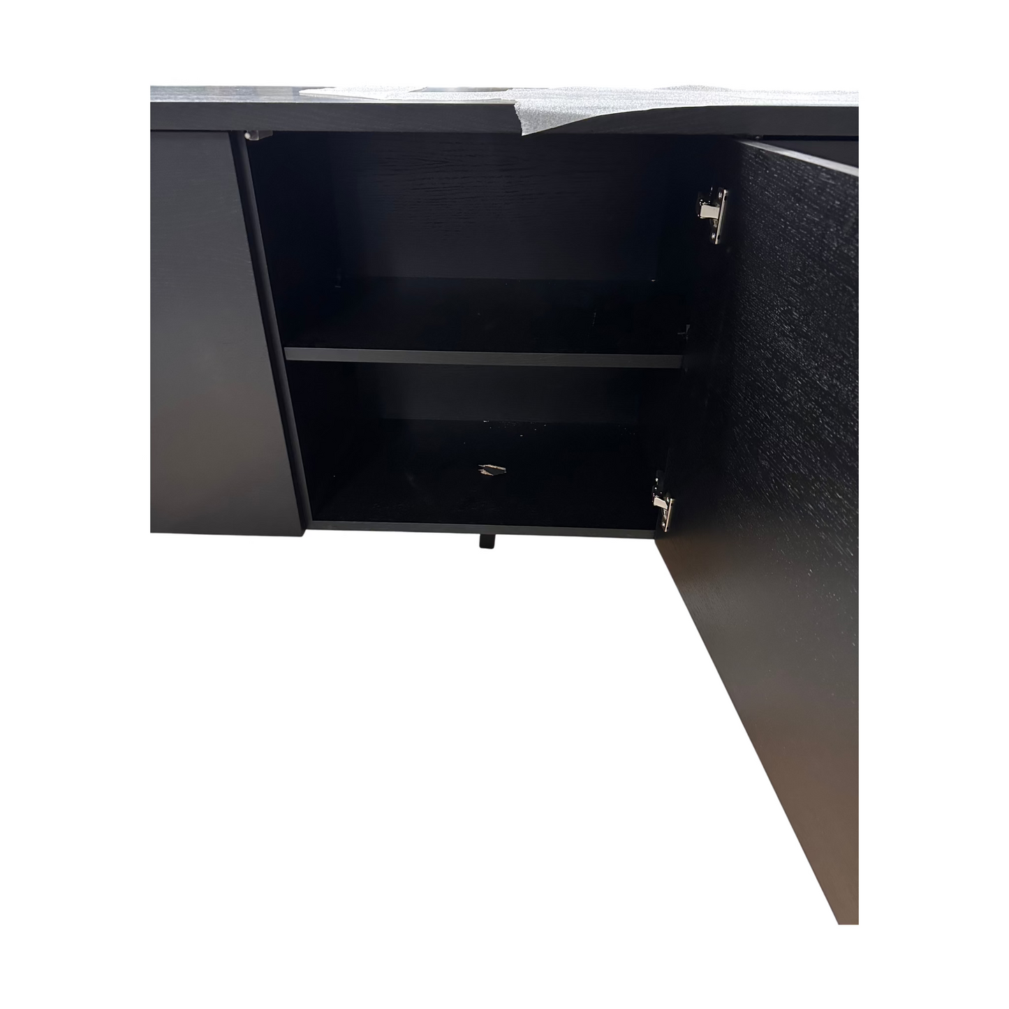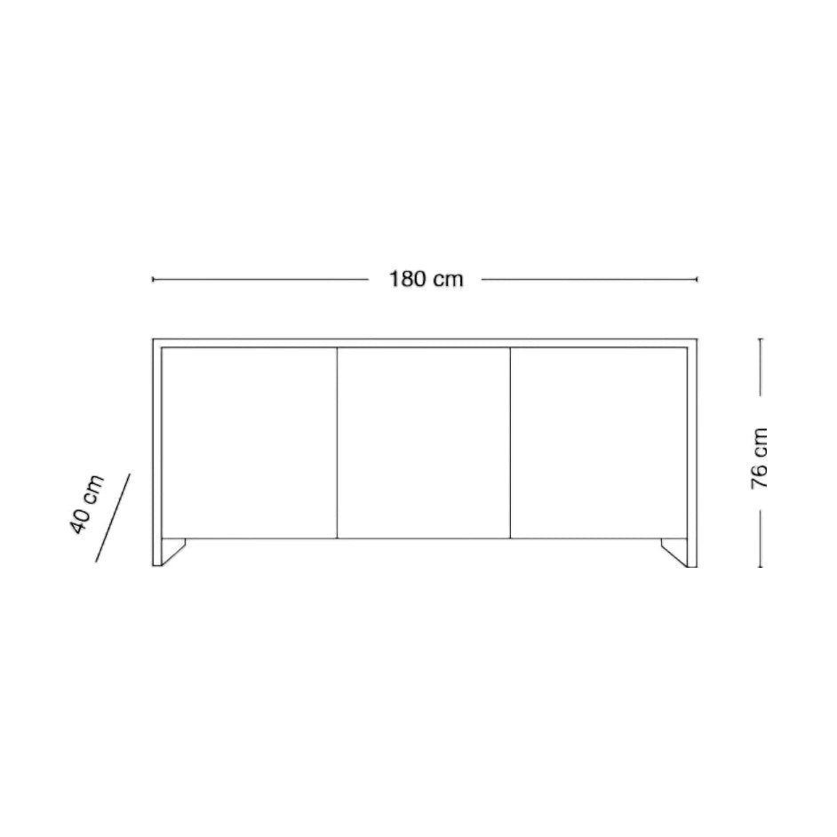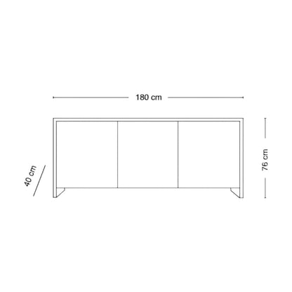 Moderne skjenk fra Kid, designet med en elegant og minimalistisk estetikk. Skjenken er i en dyp svart farge og er laget av kvalitetsmaterialer som gir et stilrent inntrykk. Med sine 180 cm i bredden og en dybde på 40 cm, tilbyr den rikelig med oppbevaringsplass bak de glatte dørene, som gir et strømlinjeformet utseende til ethvert rom.