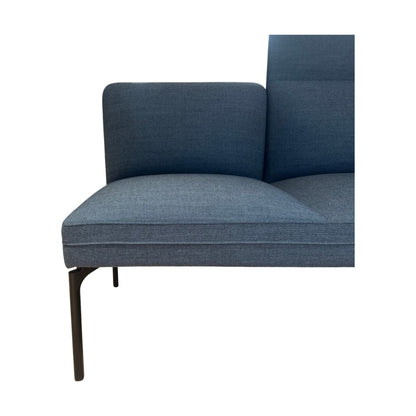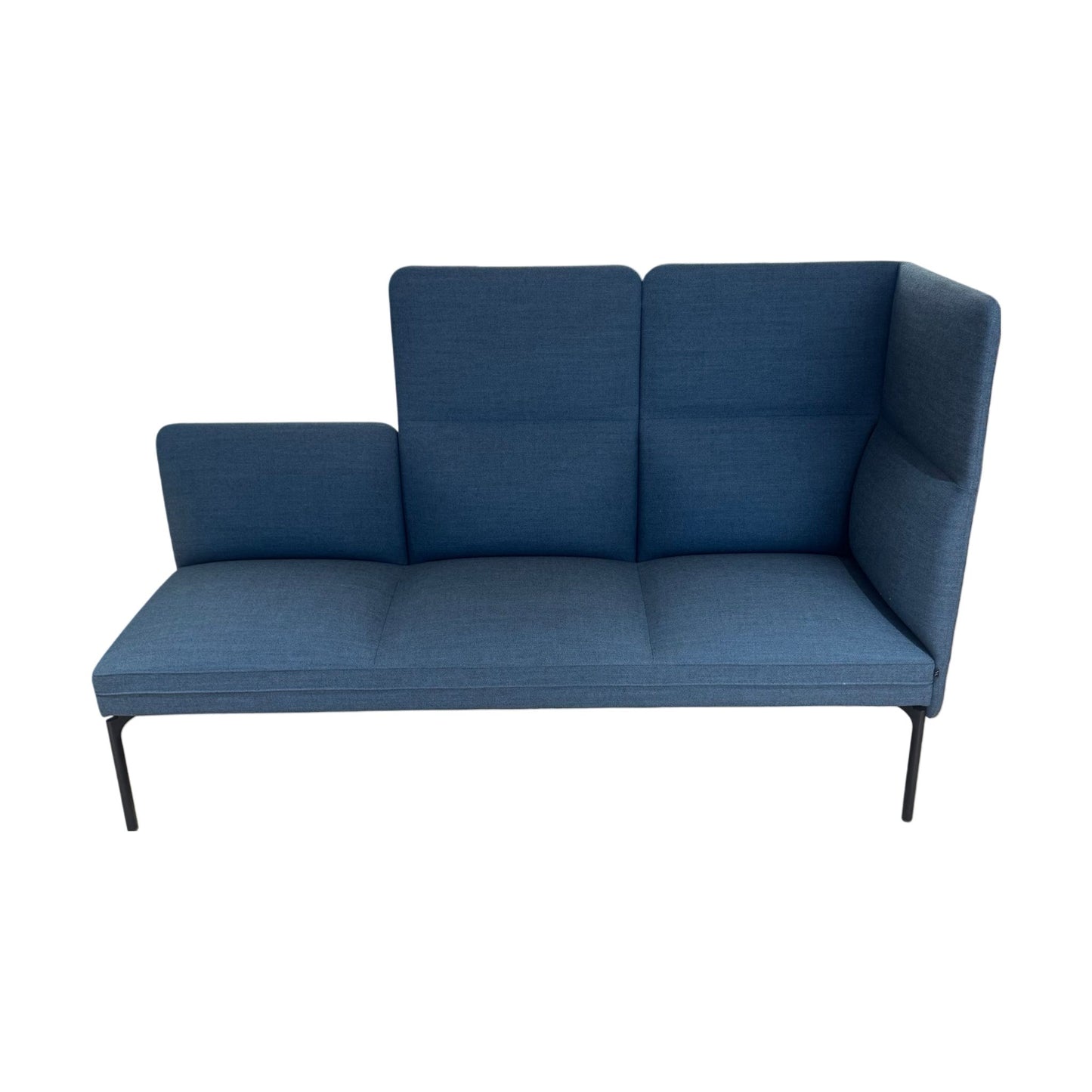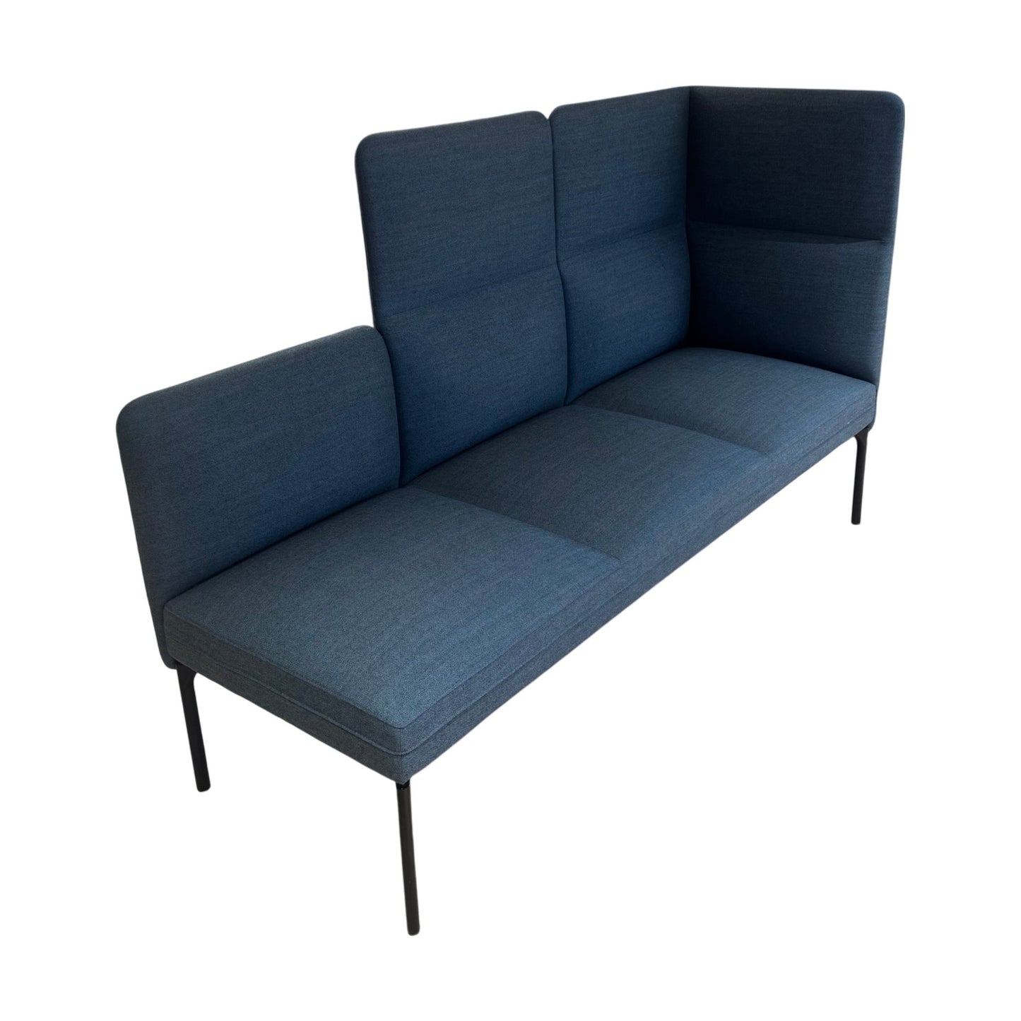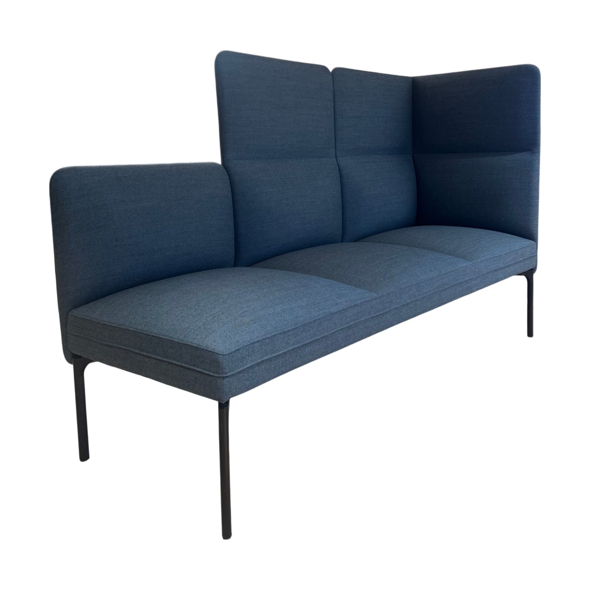Moderne Senso 3-seter sofa fra Fora Form, perfekt for kontorlandskapet. Denne sofaen har en dyp blå farge som gir et friskt og stilrent uttrykk. Den unike designen inkluderer høye, polstrede ryggstøtter og armlener, som bidrar til både komfort og avskjerming. Den passer utmerket inn i loungeområder eller som en plass for uformelle møter.