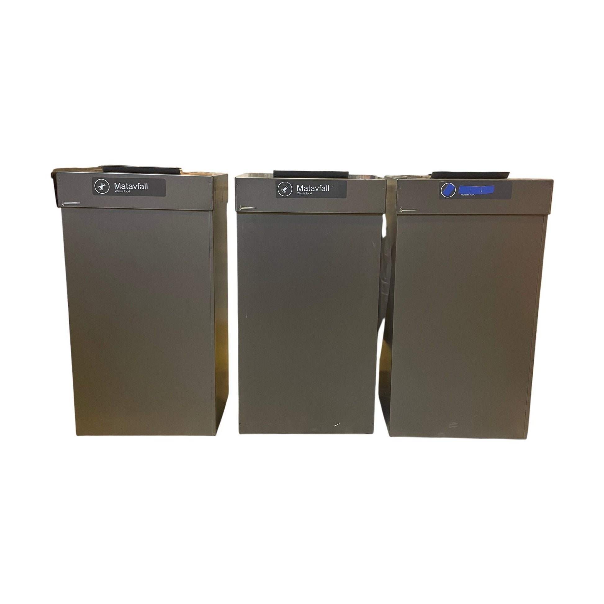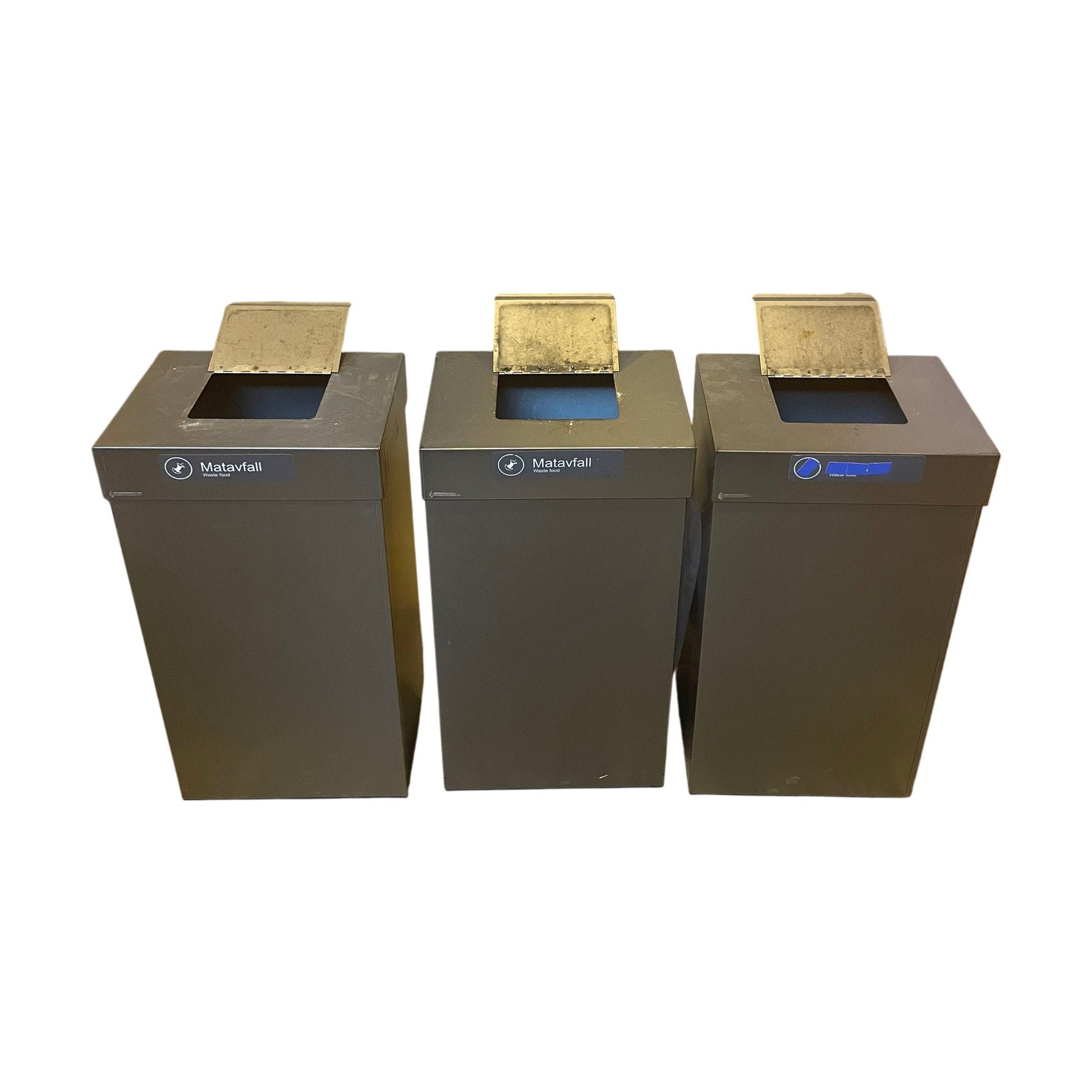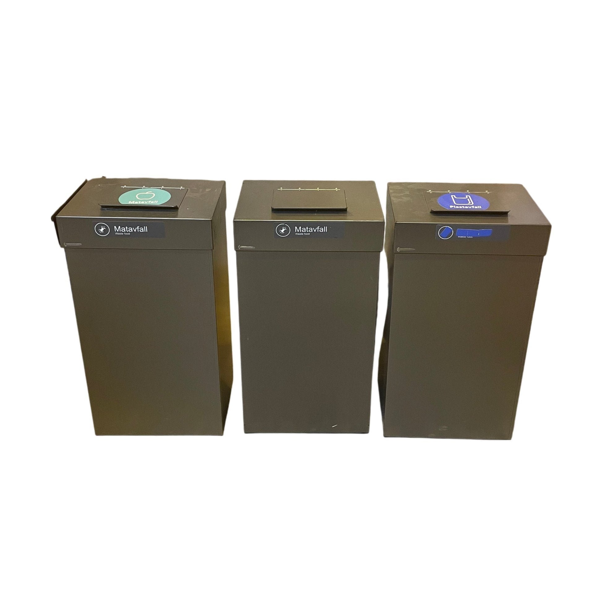 Avfallsbøtene er i god stand med minimale bruksspor, ideelle for gjenbruk i arbeidsmiljøer.