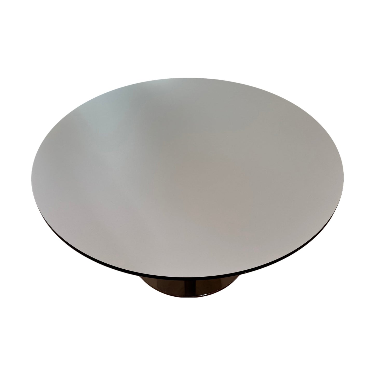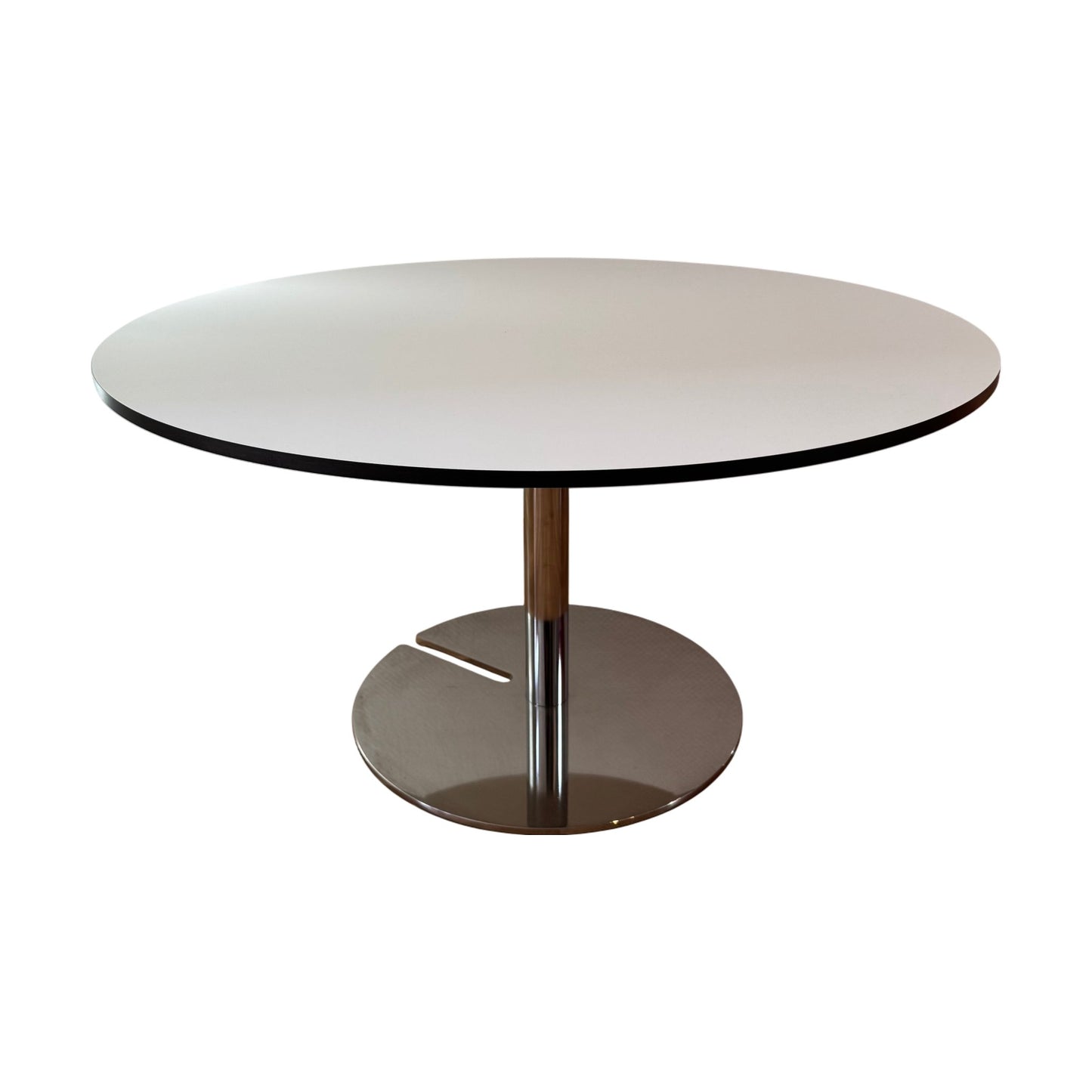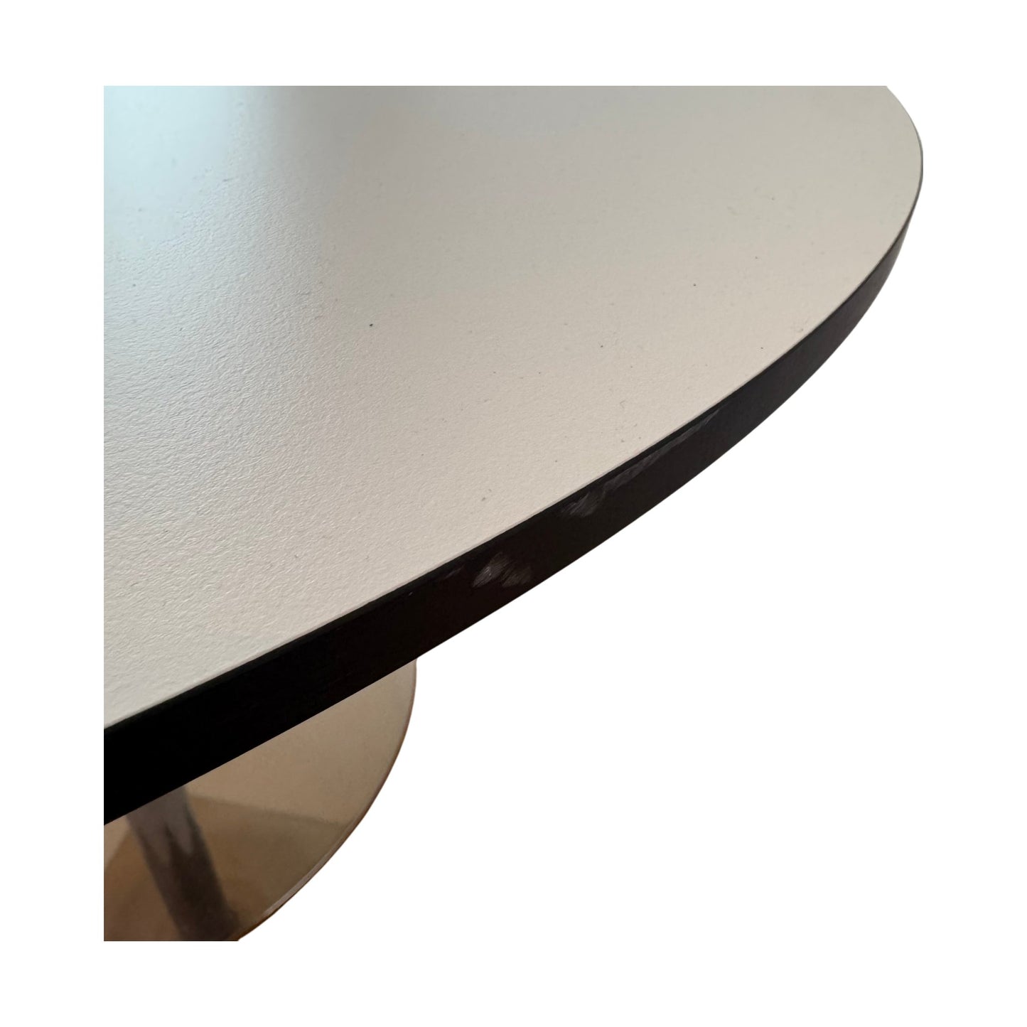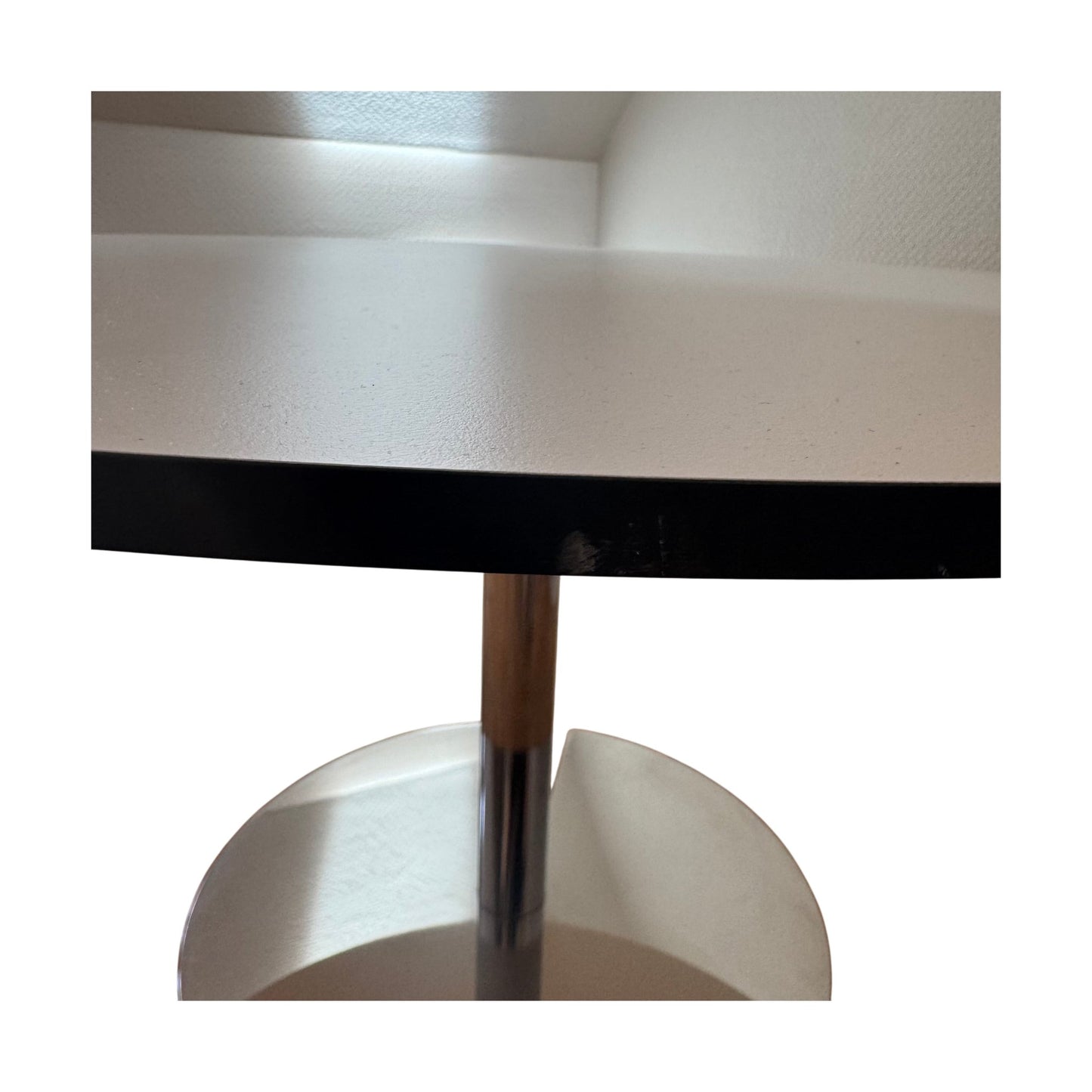 Lite sidebord i hvitt med moderne design passer perfekt inn i ethvert rom. Med sin stilrene, runde bordplate i hvit og sokkel i metall, tilfører dette bordet et minimalistisk preg som fremhever din interiørstil.