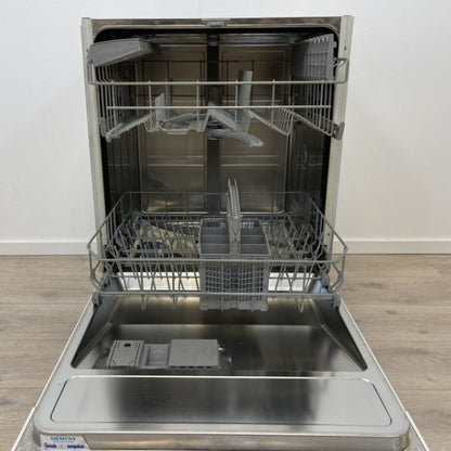 Siemens (Mod:. SE34A260SK/42, FD:8302) frittstående underbygd oppvaskmaskin i fargen hvit. Dette er en standard oppvaskmaskin som enkelt plasseres under kjøkkenbenken. Maskinen har et kontrollpanel på dørfronten for valg av diverse funksjoner.Følger med en avtagbar kurv til bestikk. Siemens oppvaskmaskinen er vasket både innvendig og utvendig. Høyre kant på døren har noe bruksmerker.