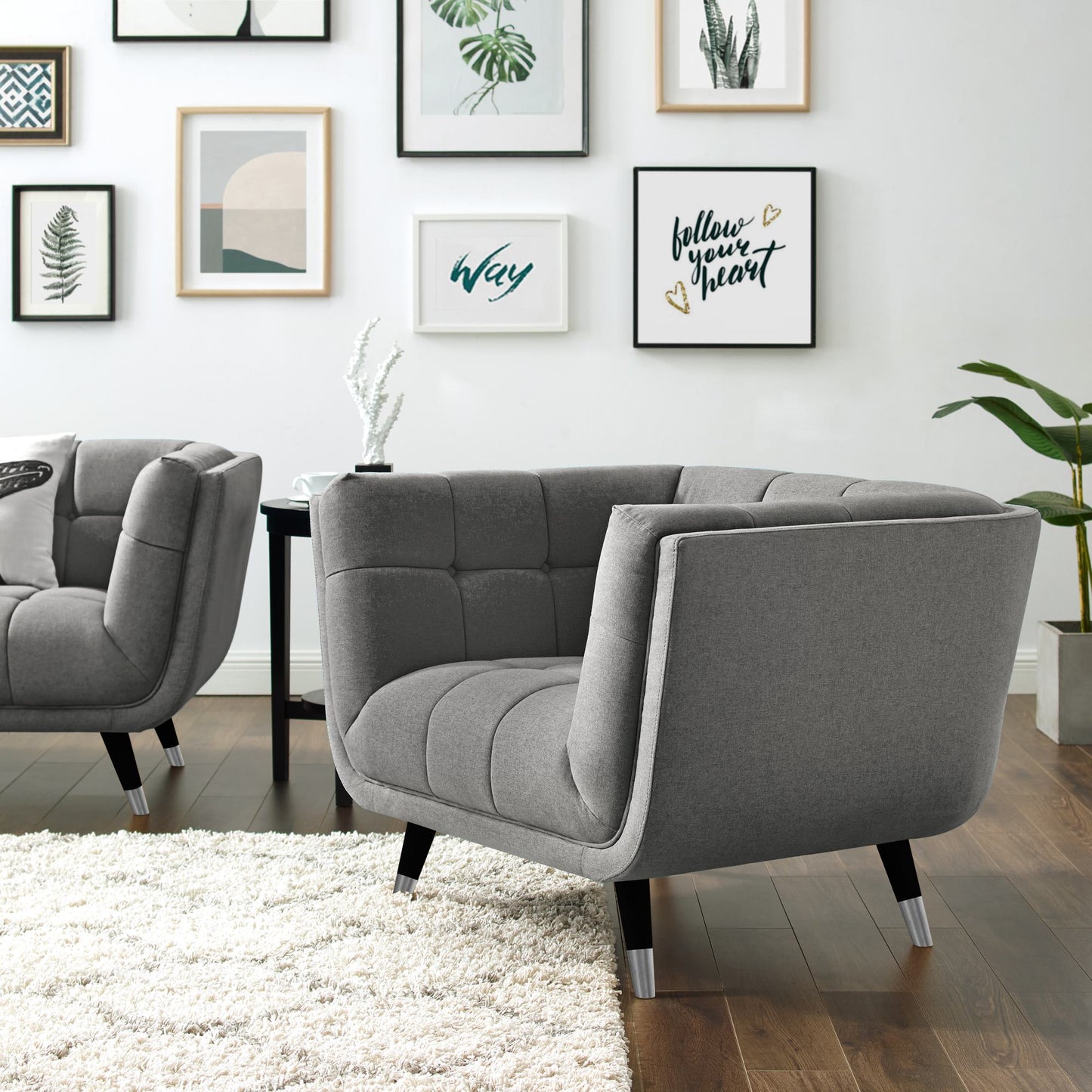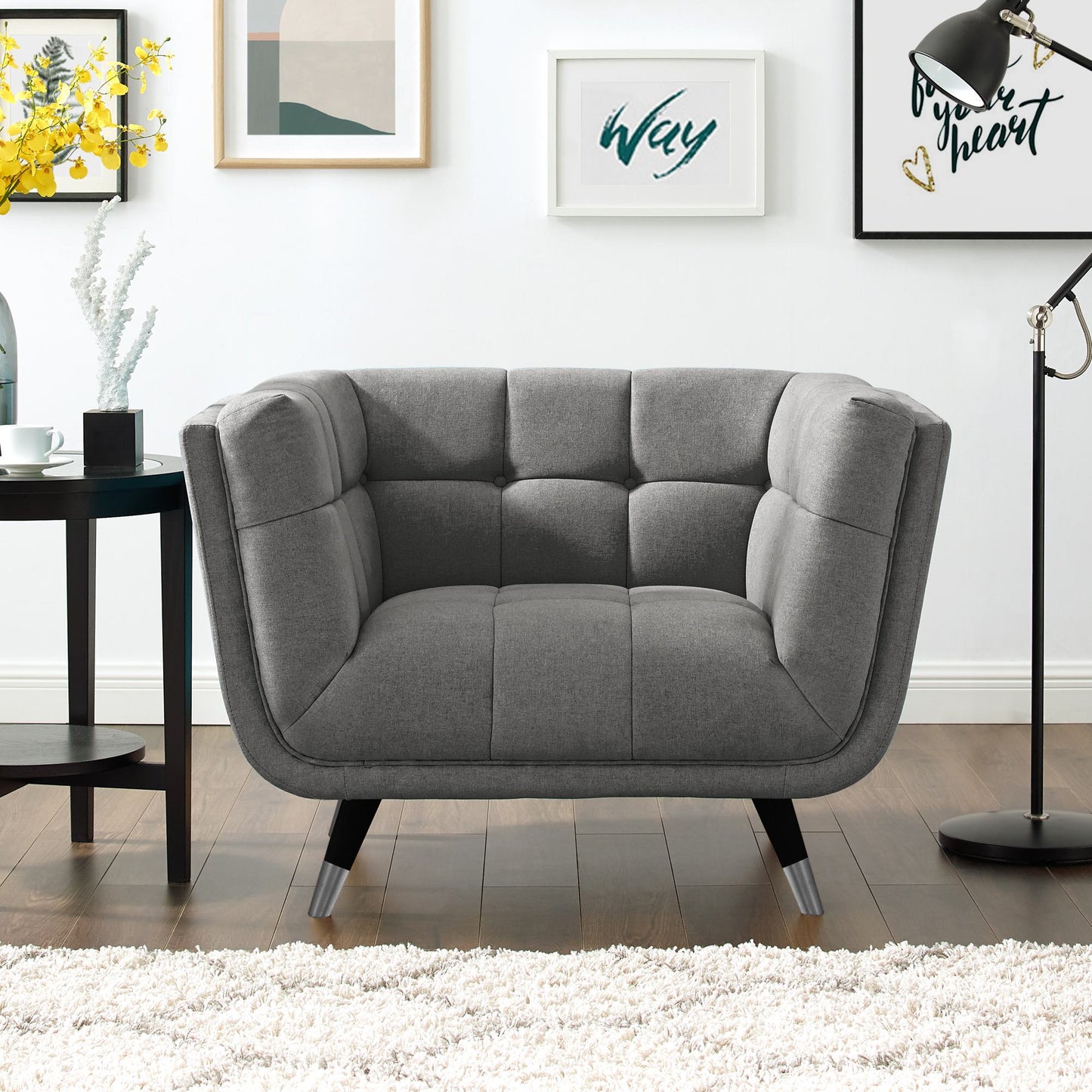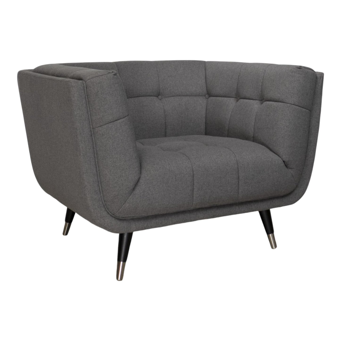 Passer perfekt i både moderne og klassiske hjem. Bena er høye slik at rengjøring under blir enkelt. Simon er trukket i et mykt mørkt grått slitesterkt stoff.
