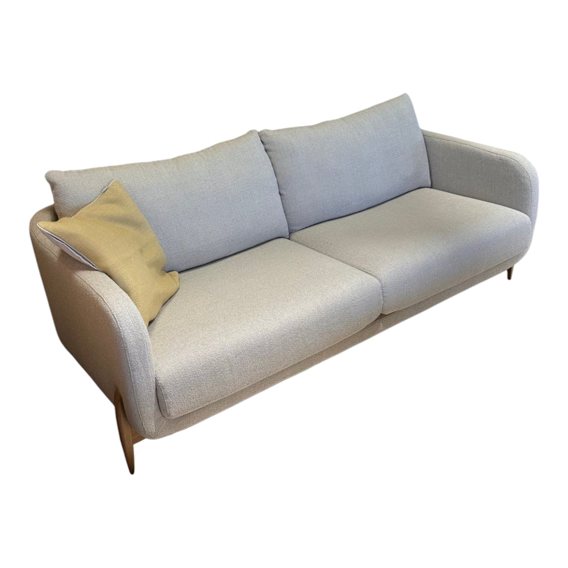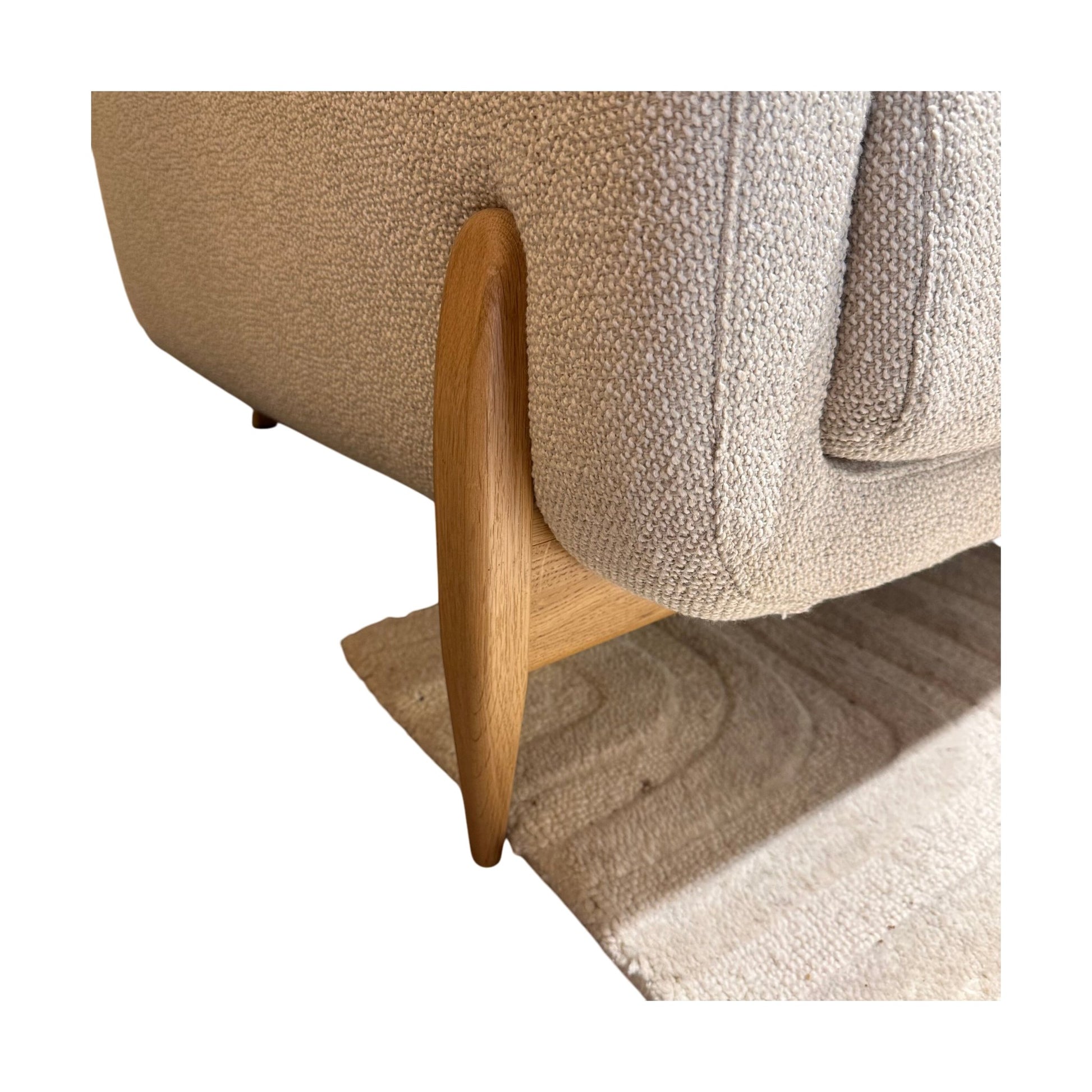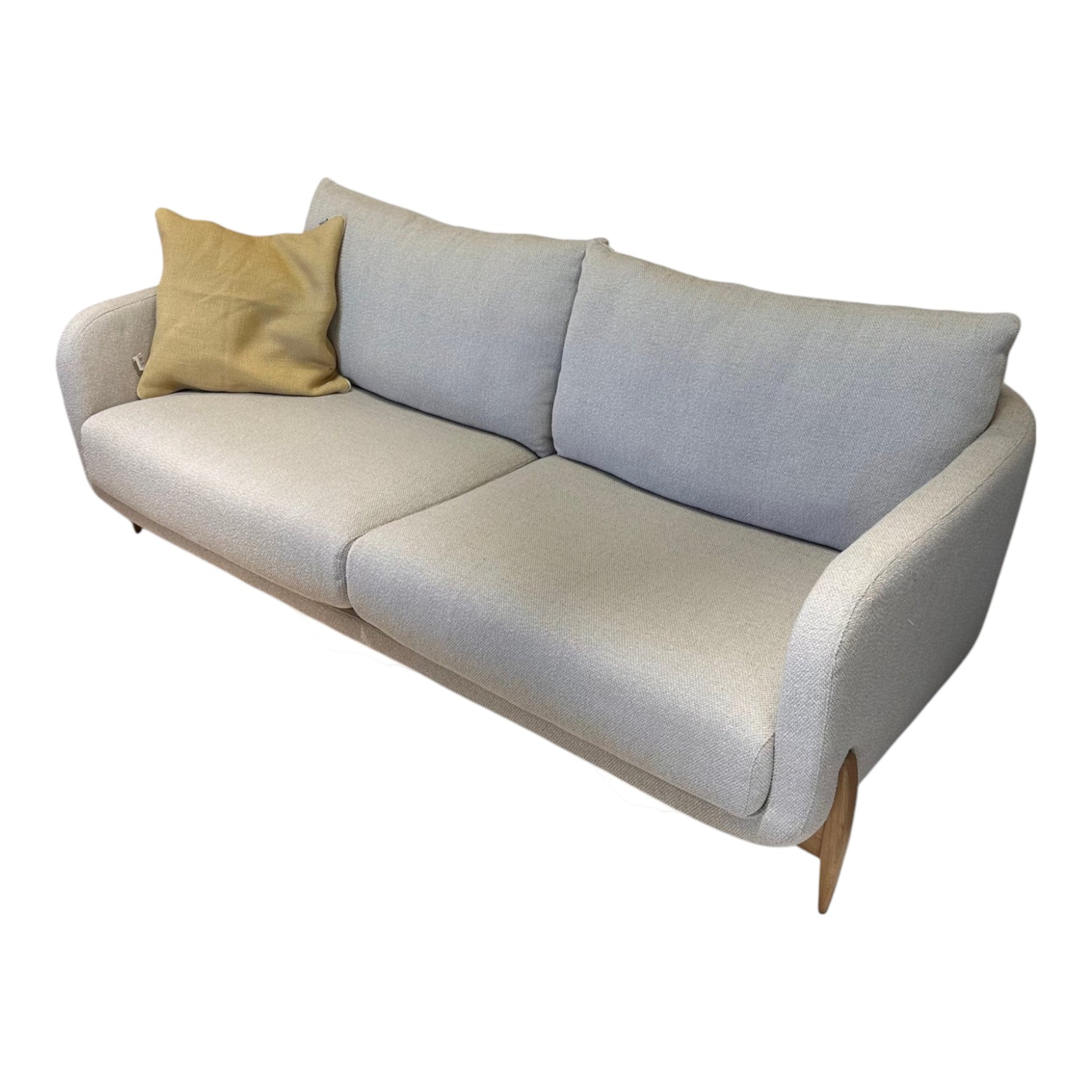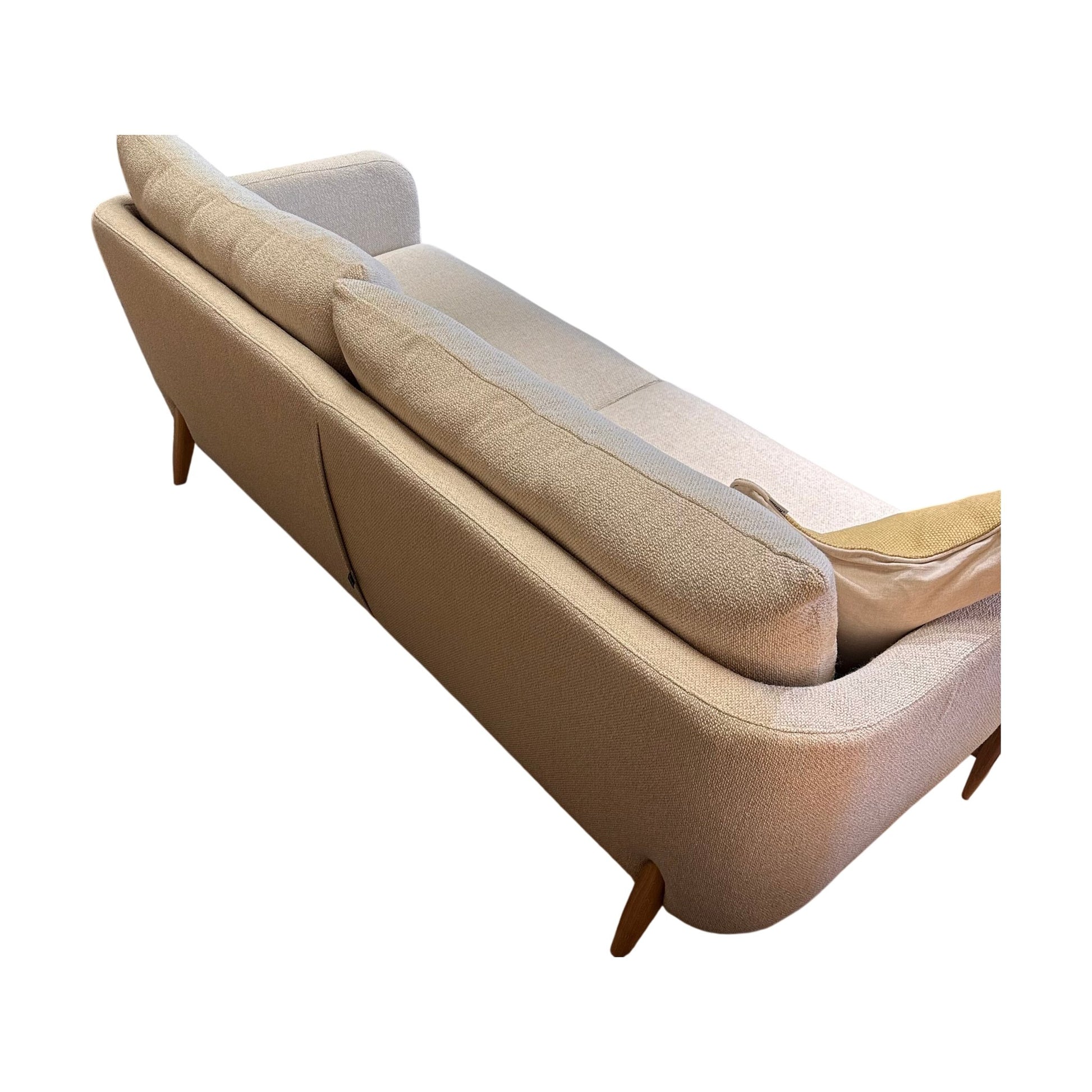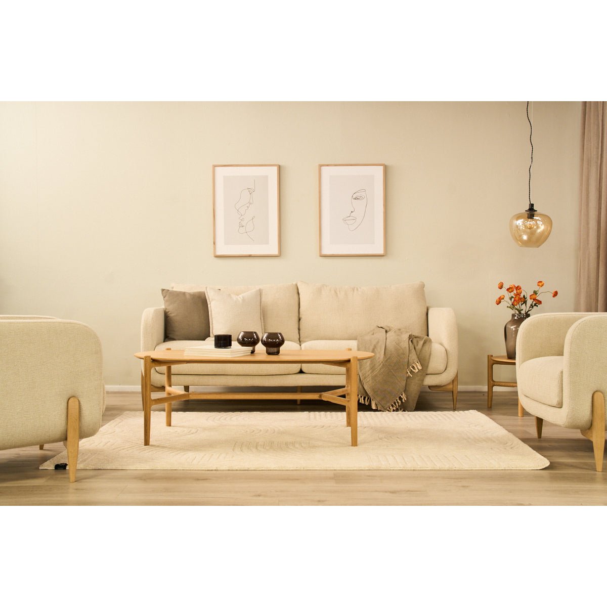 Sits Jenny 2-seter er en moderne modulsofa med et stilrent design, perfekt for både stuen og andre oppholdsrom. Sofaen har et lyst, tidløst fargevalg med myk tekstur som gjør den innbydende. De komfortable ryggputene gir god støtte, og det elegante uttrykket forsterkes av de formede armene og de slanke trebeina som gir sofaen et luftig preg.