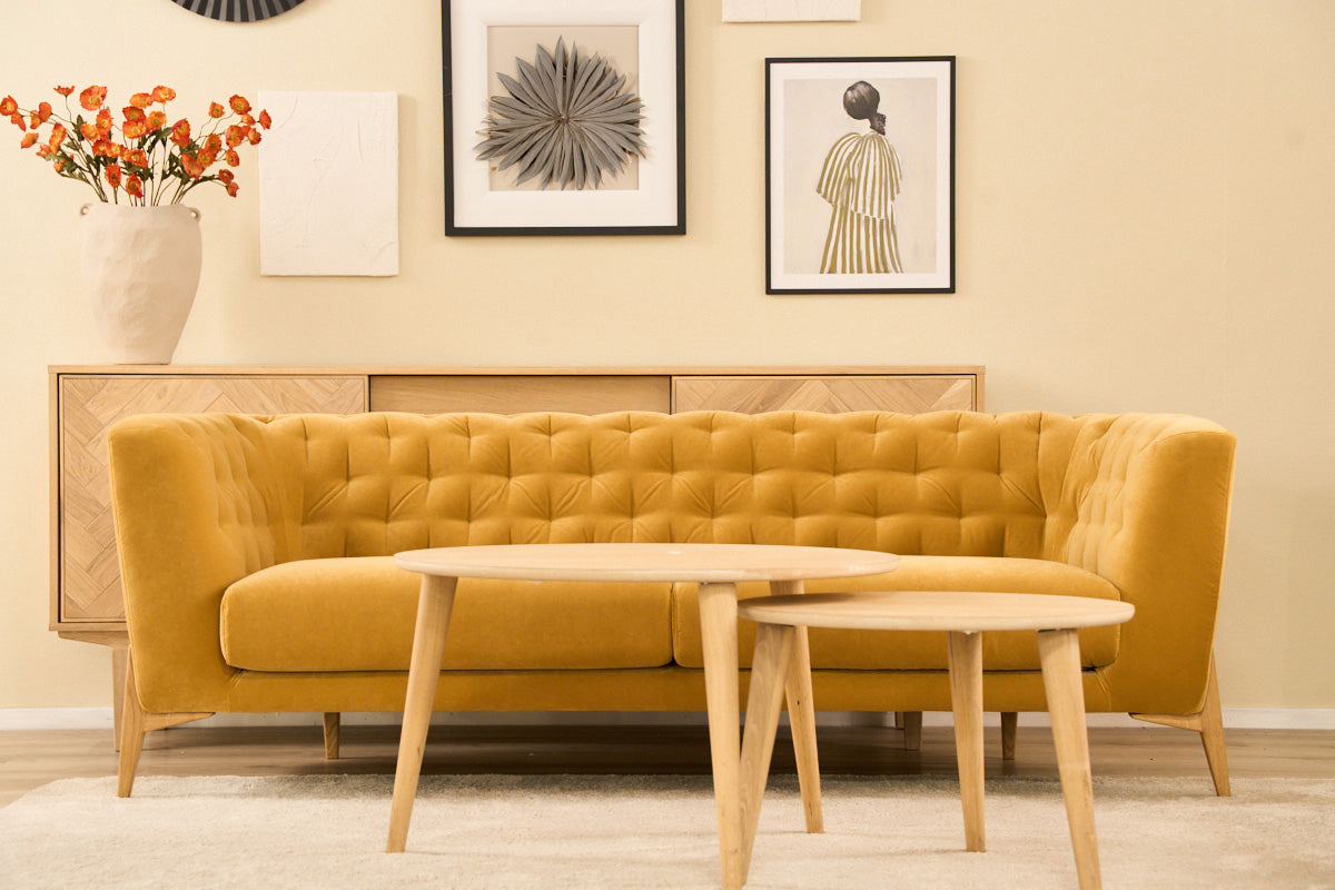 Oppdag Sits Valentine sofa, en stilren 3-seter sofa som kombinerer komfort og design. Sofaen har en vakker oransje farge og er kledd i mykt, slitesterkt stoff. Den tuftede ryggen og de runde kantene gir et moderne uttrykk, samtidig som den inviterer til avslapning og sosialt samvær. Denne sofaen er ideell for stuer, der den både fungerer som en komfortabel sitteplass og et blikkfang i innredningen.