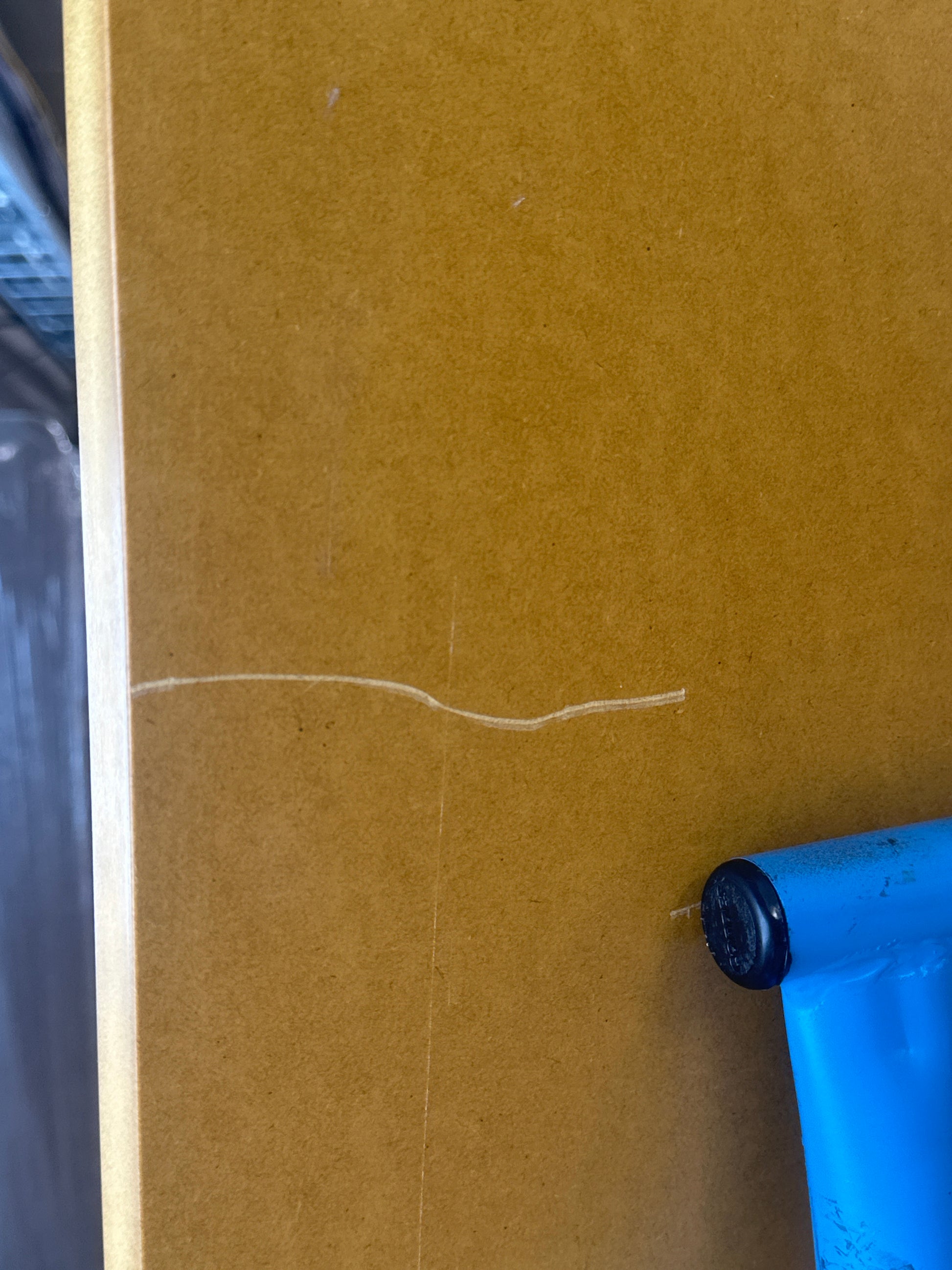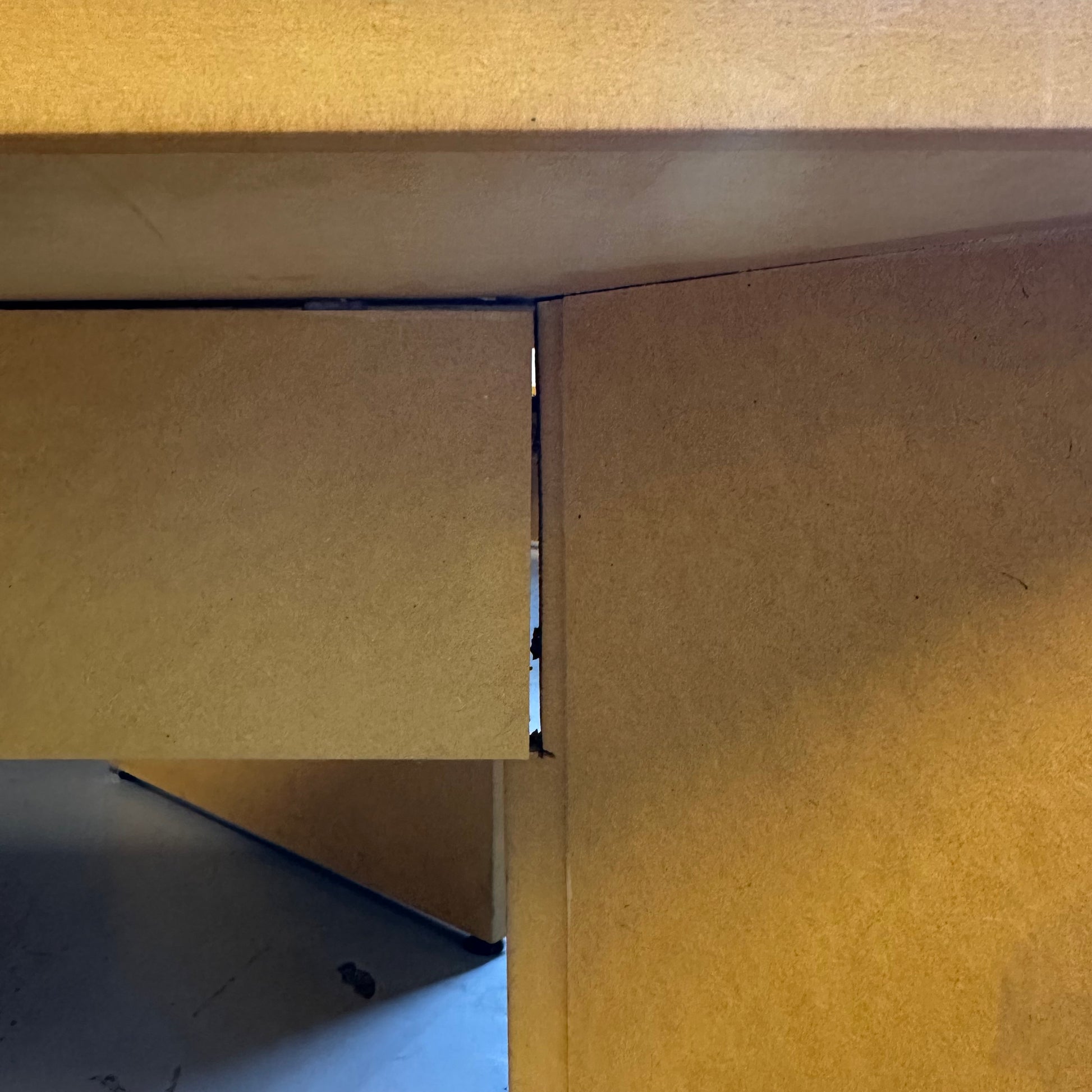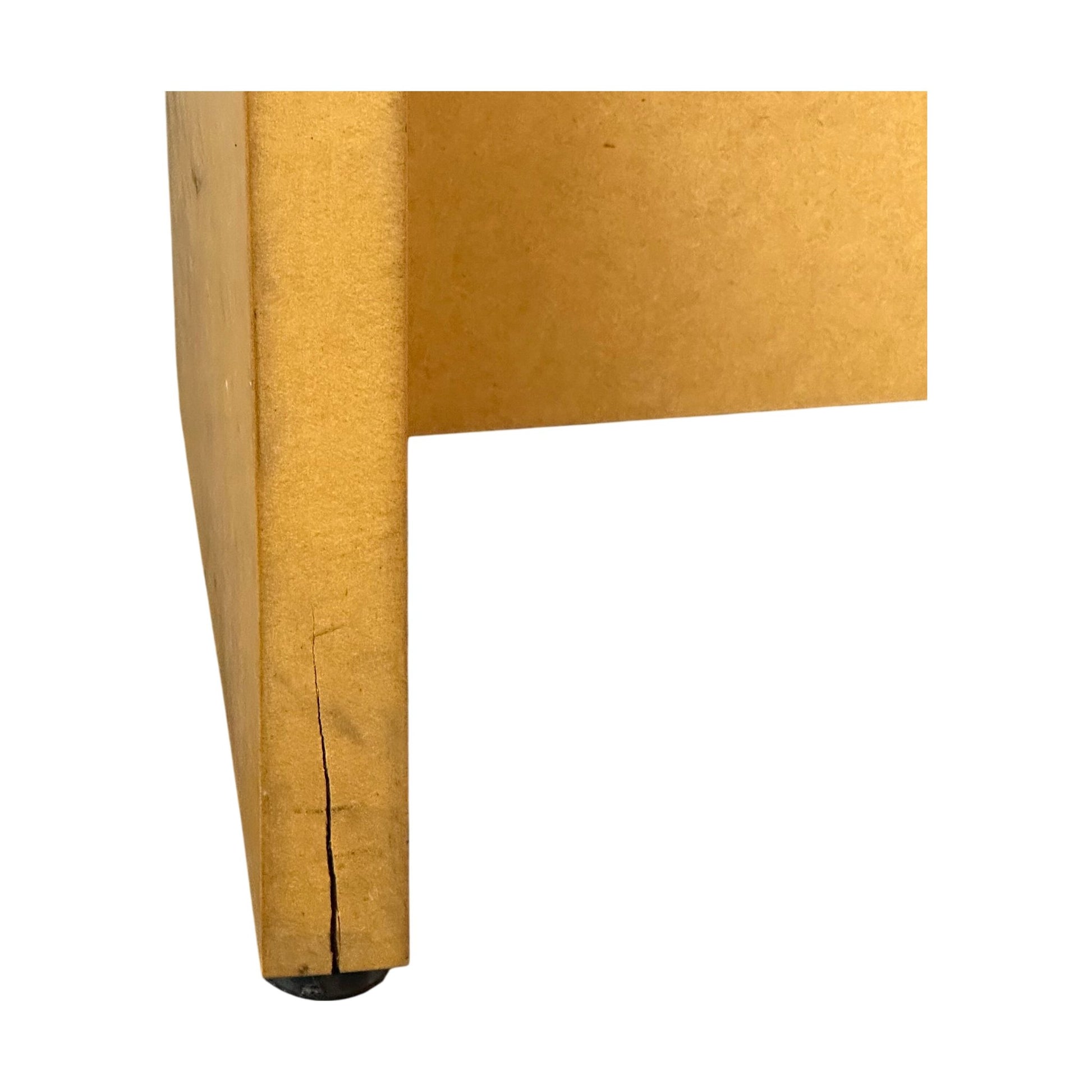 Benken har noen merker og skrammer i platen, samt enkelte sprekker og hakk i bena. Dette påvirker ikke bruken, og benken er fortsatt i god tilstand.