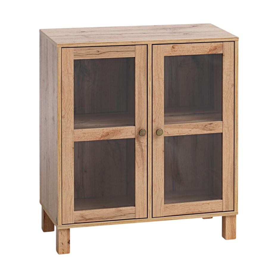 SKALS skap 2 dører fra JYSK tilbyr et moderne og funksjonelt oppbevaringsalternativ med et naturlig villeikfarget design. Skapet har to dører med glasspaneler som gir enkel innsyn til innholdet, mens dets kompakthetsdesign gjør det perfekt for både stuer og tenåringsrom.