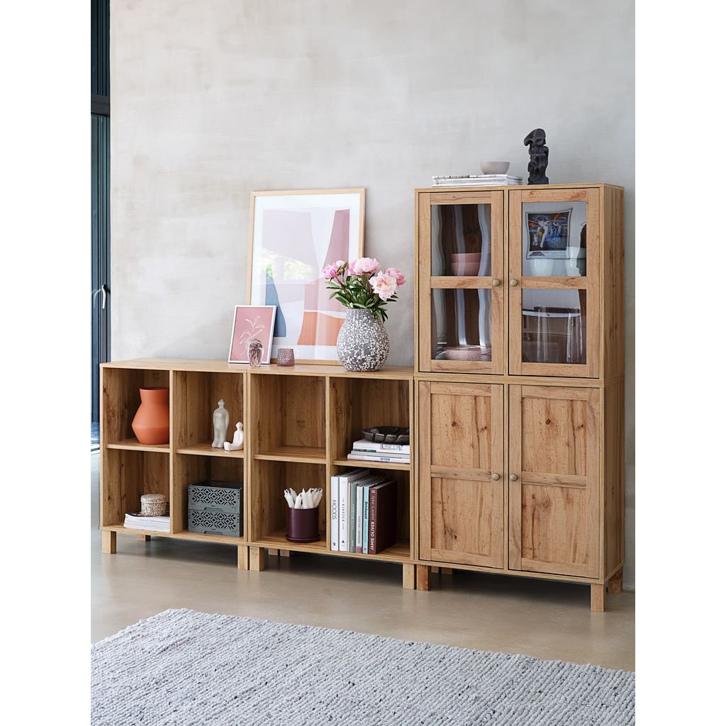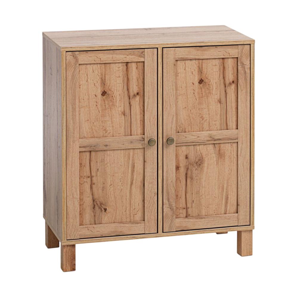 Stilrent SKALS skap fra JYSK med 2 dører. Laget i natur villeikfarget materiale, tilbyr dette skapet en moderne og tidløs design som passer perfekt i ethvert rom. Med romslig oppbevaring og minimalistisk utseende, er det ideelt for organisering av klær, bøker eller annet tilbehør.