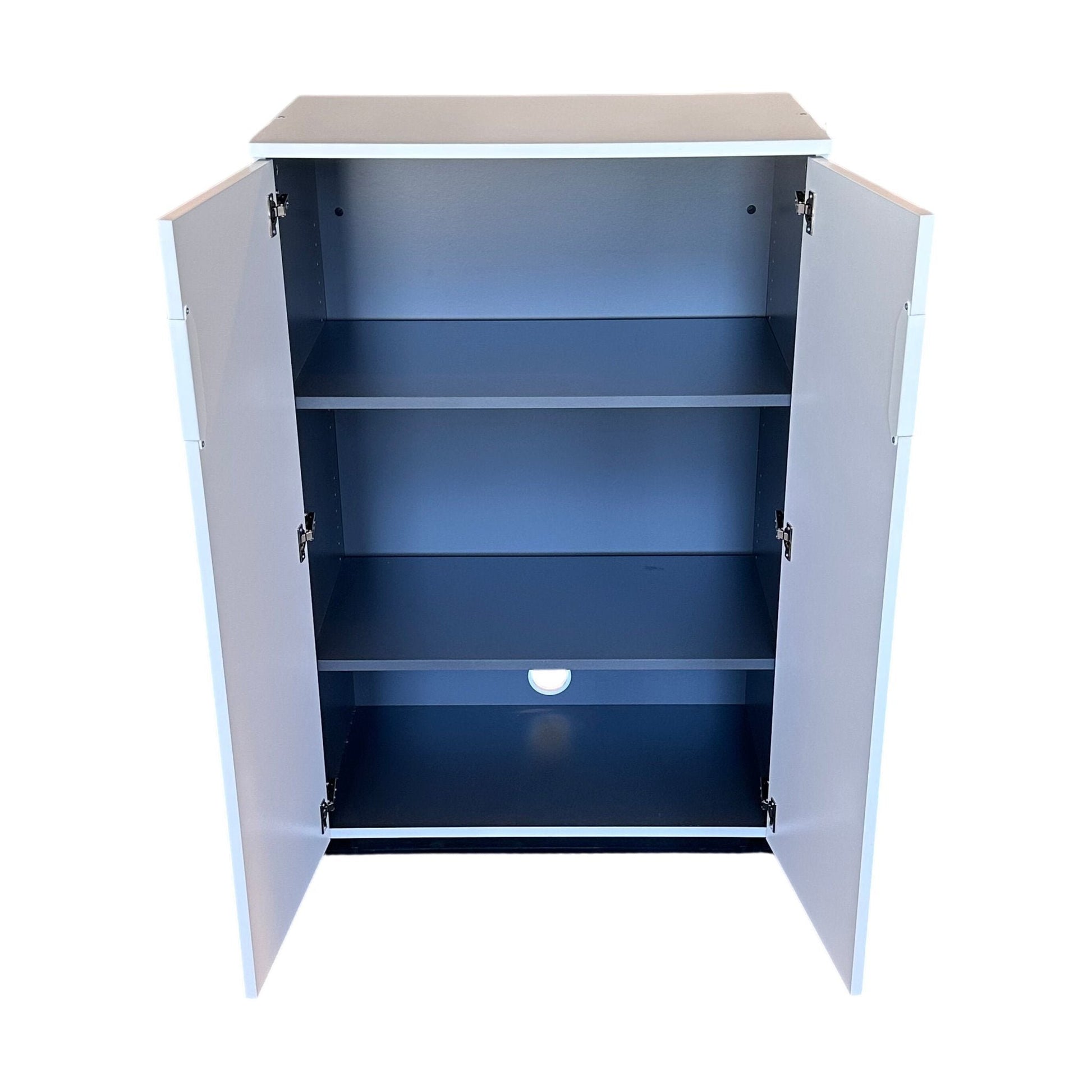 Praktisk skap med 2 dører og 3 hyller, perfekt for kontorbruk. Dette skapet tilbyr effektiv lagringsplass og har en stilren hvit overflate som passer inn i de fleste miljøer.