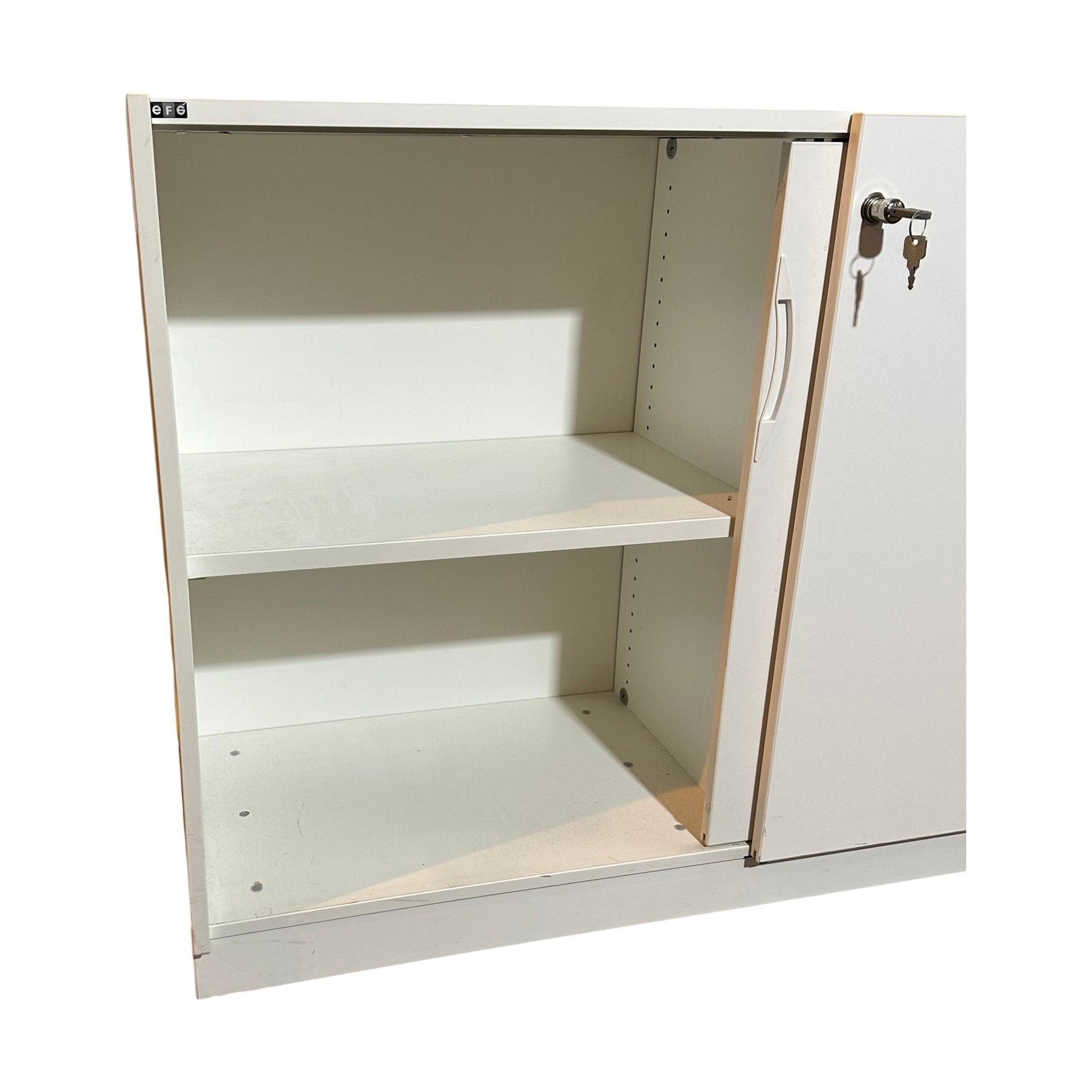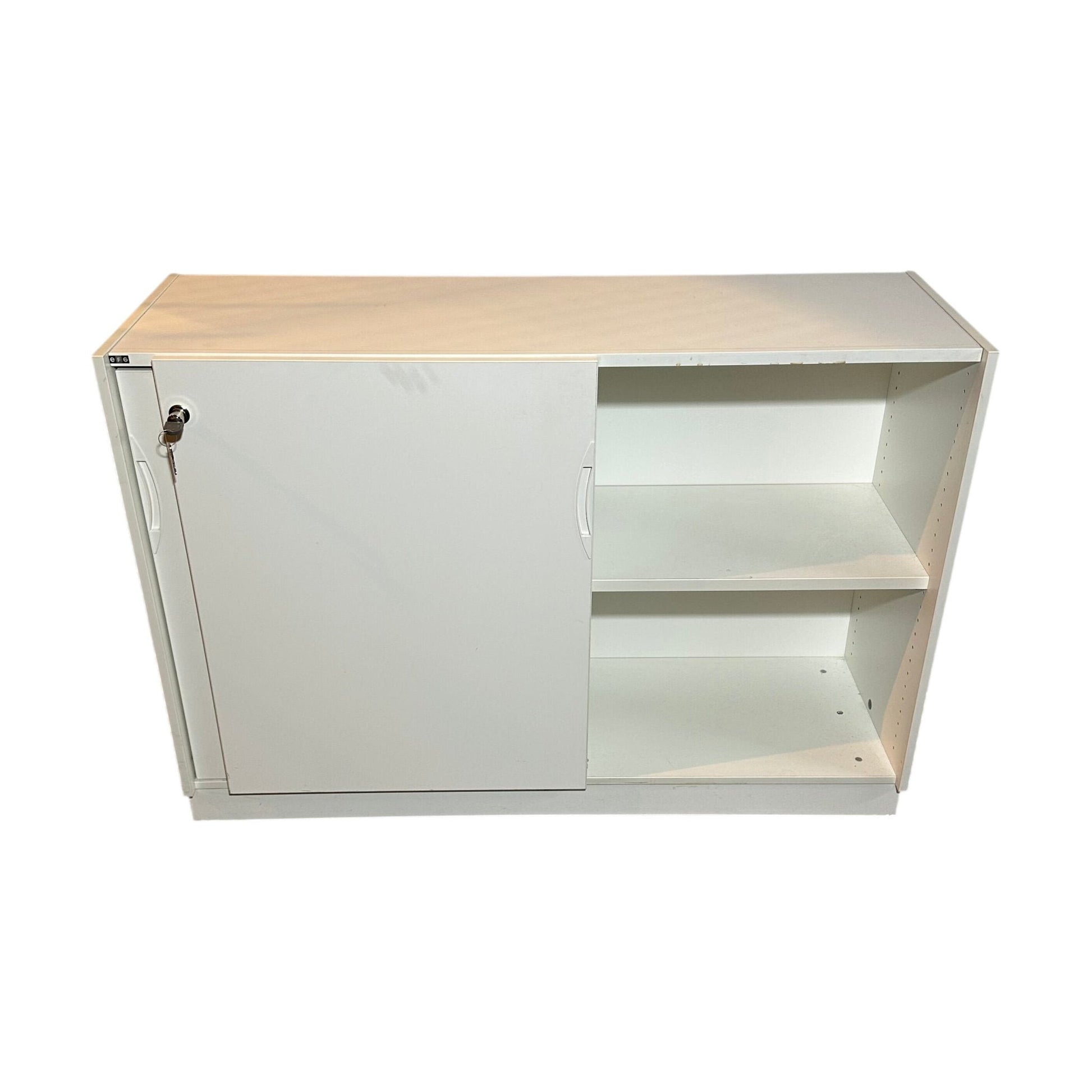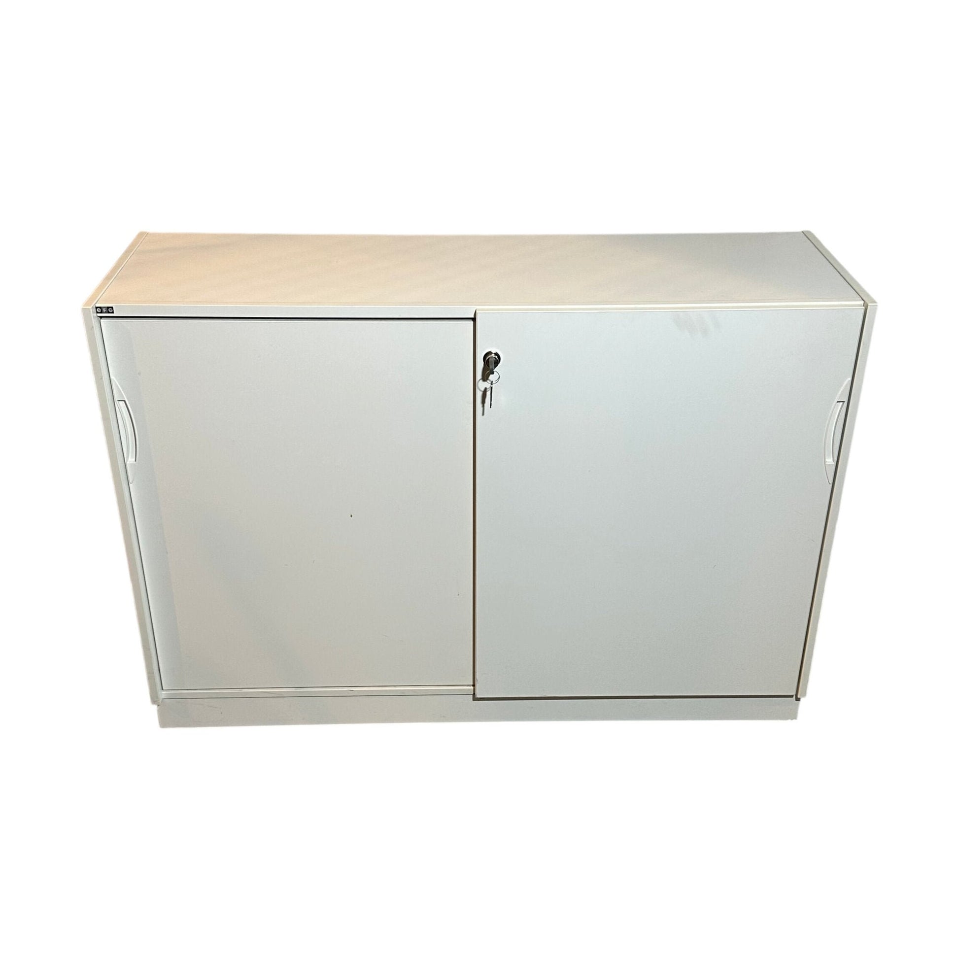 Praktisk skap med skyvedører fra EFG, designet for kontoret. Det hvite skapet har en enkel og moderne stil, perfekt for effektiv oppbevaring av dokumenter og kontorutstyr.
