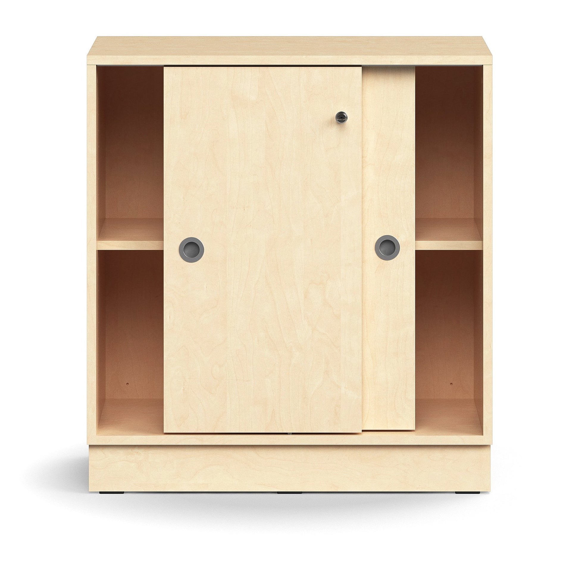 Plasseffektivt og låsbart oppbevaringsskap med skyvedører i AJ Produkters eget design. Dette skapet kombinerer funksjonalitet og stil, og passer perfekt til kontor, konferanserom eller entré. Med sin buede sokkel og elegante bjørkefinish, integreres det sømløst i enhver innredning.
