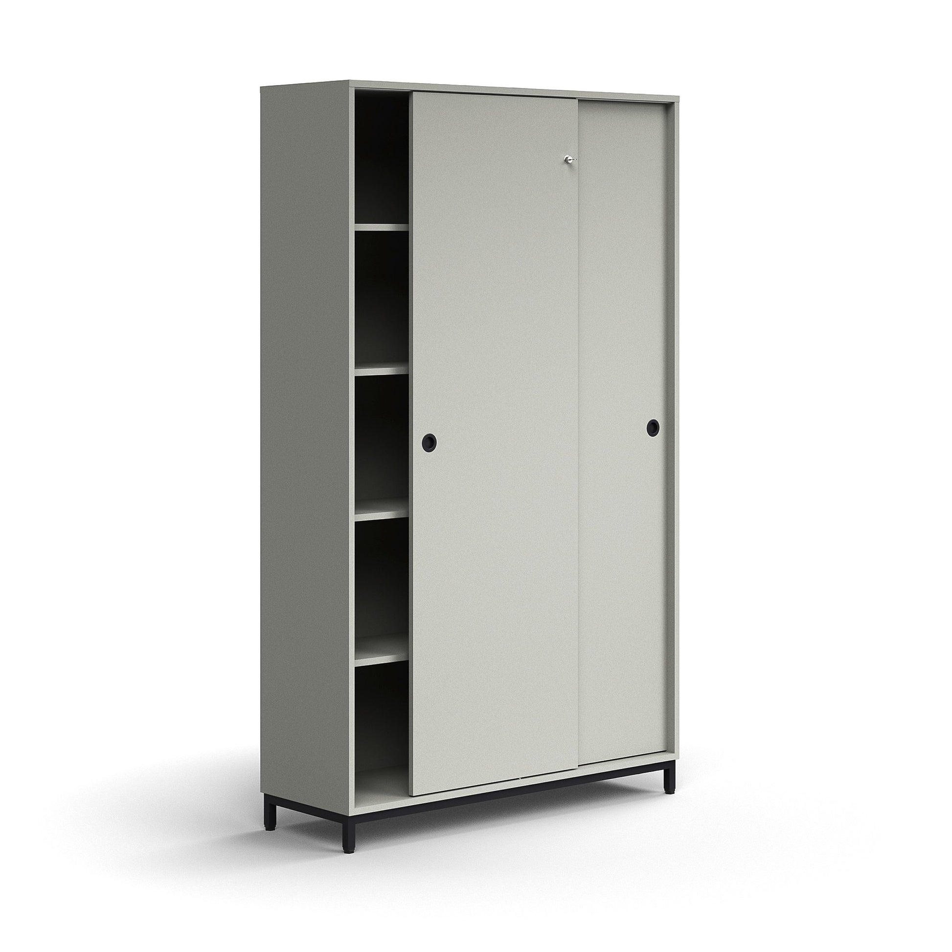 Skap QBUS, låsbare skyvedører m/håndtak, 4 hyller, benstativ, H2020 B1200 D400 mm, svart, lys grå