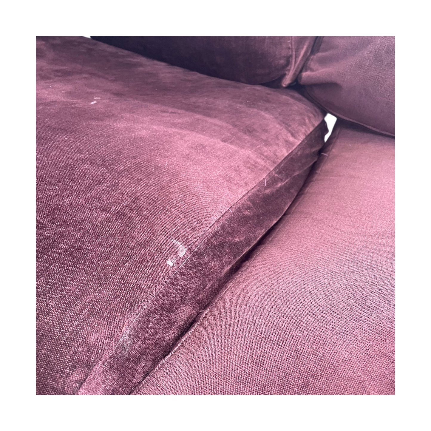 Sofaen har en hvit flekk på hjørneputen, samt noen kloremerker og løse tråder på venstre armlene. Til tross for disse småfeilene, er sofaen et flott møbel til hjemmet eller kontoret.