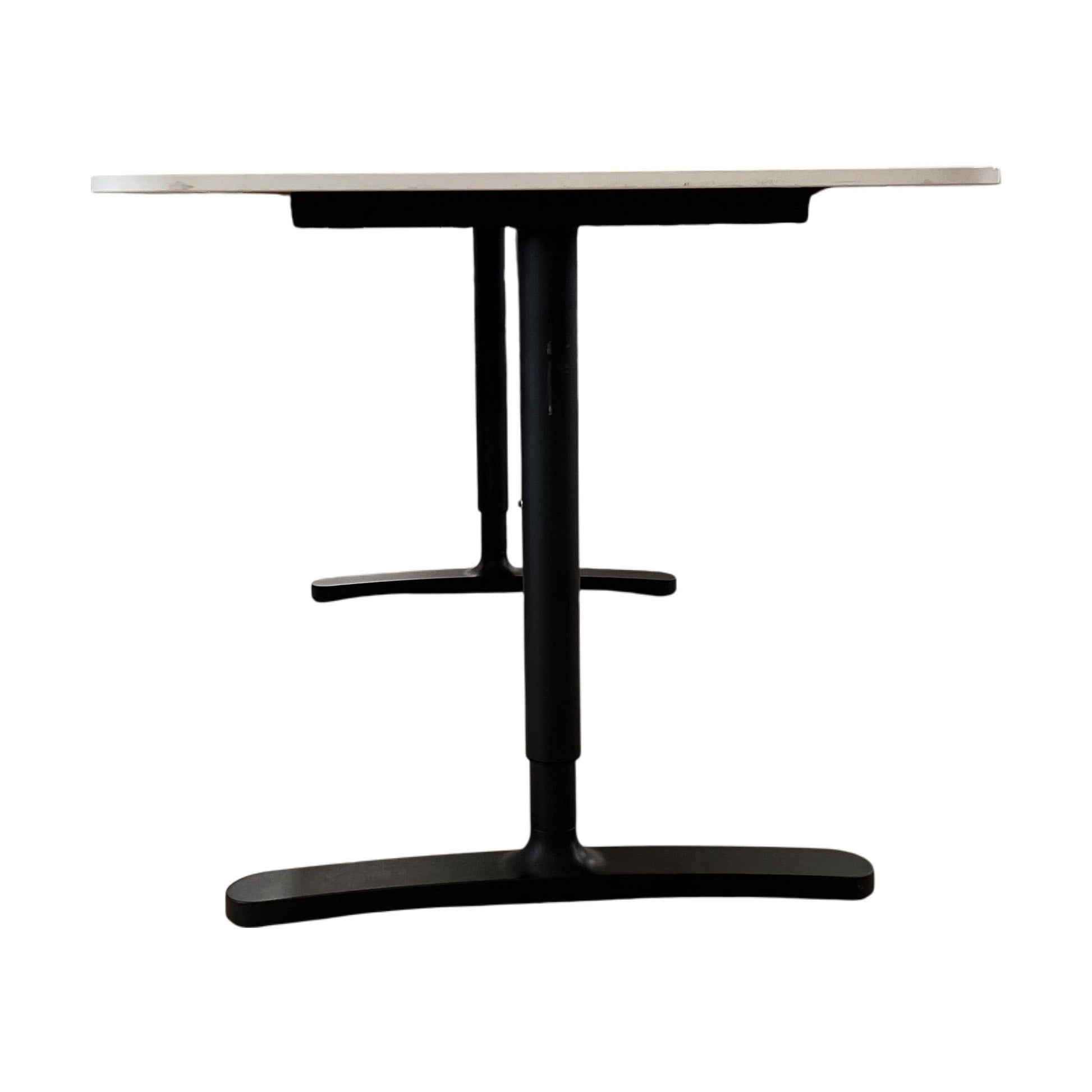 Skrivebord fra IKEA med en stilren hvit laminatbordplate og solid konstruksjon. Dette skrivebordet gir et nyttig og romslig arbeidsområde, perfekt for både kontorbruk og hjemmekontor.