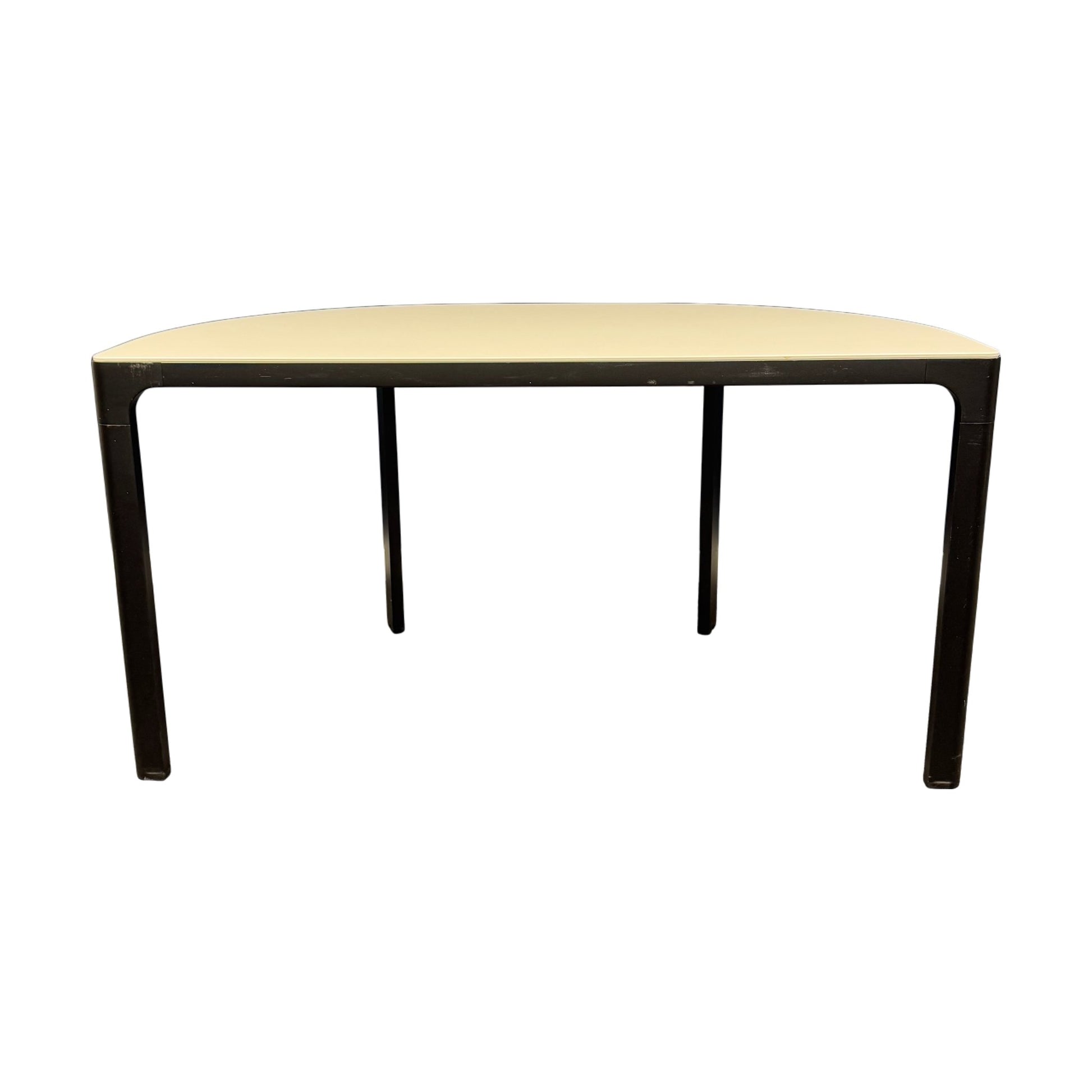 Halvmåneformet skrivebord fra IKEA Bekant med et stilrent design som passer perfekt inn i de fleste kontormiljøer. Dette skrivebordet tilbyr en praktisk arbeidsflate og gir god plass til både datamaskin, bøker og annet nødvendige kontorutstyr. Det rene utseendet gjør det enkelt å integrere i hvilken som helst innredning.