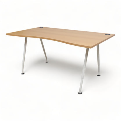 Kvalitetssikret | 160×90 cm, manuelt justerbart skrivebord med hvitt Horreds understell