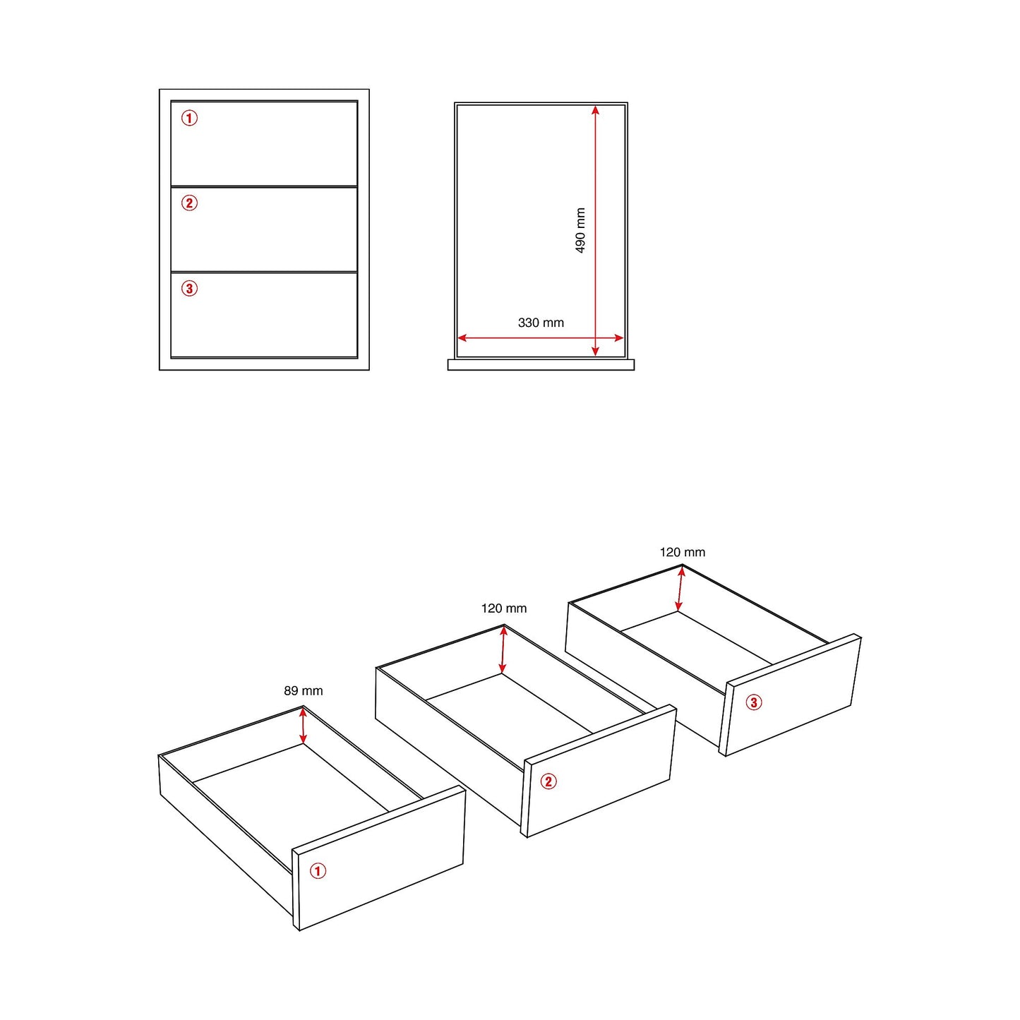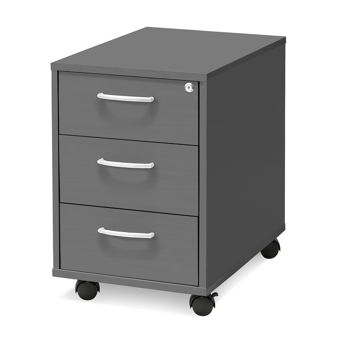 Skuffeseksjon FLEXUS, med hjul, 3 skuffer, grå