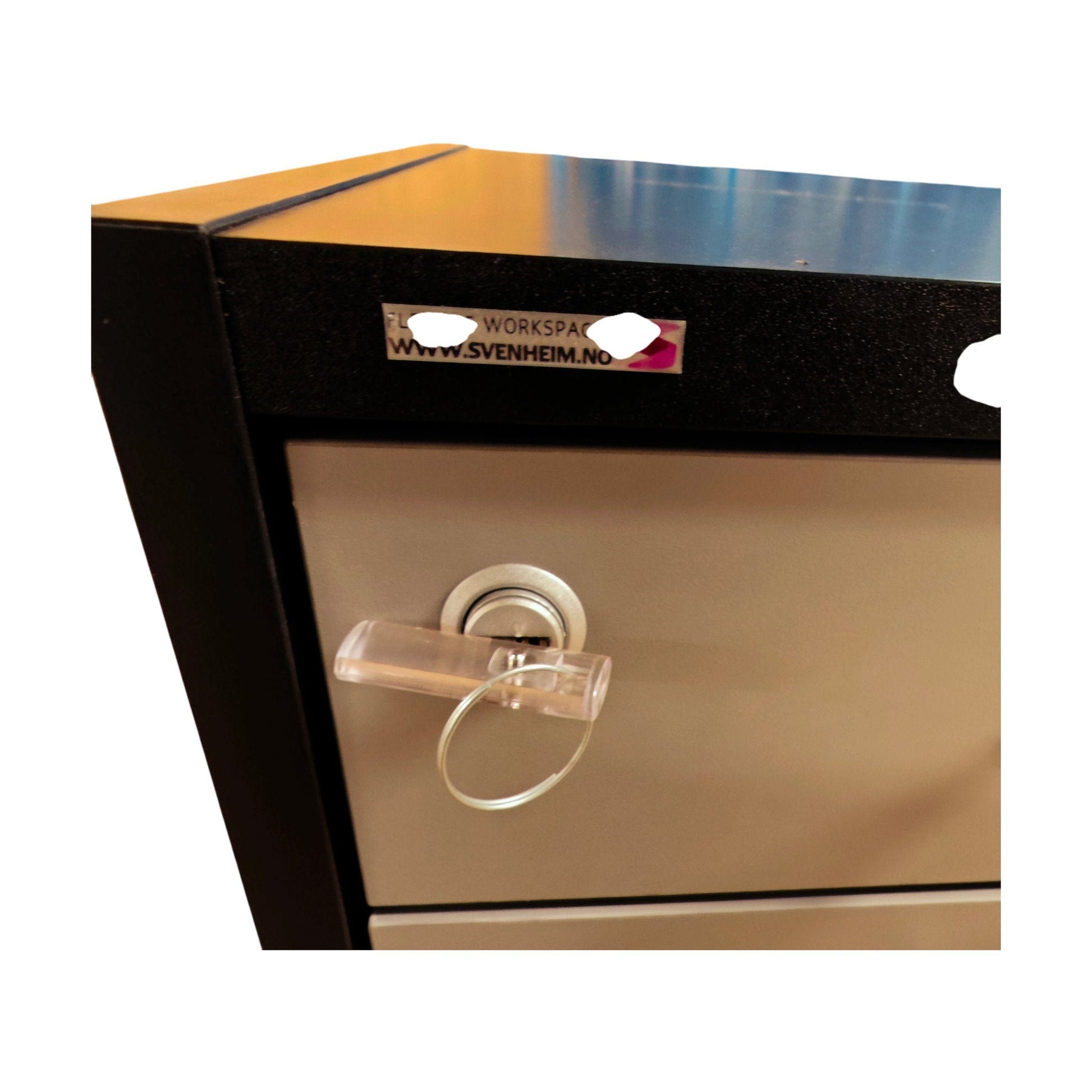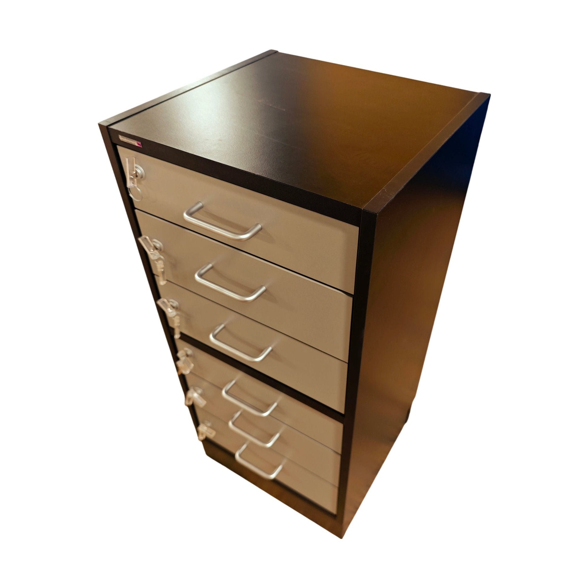 Praktisk skuffeseksjon fra Svenheim med 6 romslige skuffer, perfekt for kontoroppbevaring. Den svarte og grå fargekombinasjonen gir et moderne uttrykk, og den kompakte størrelsen gjør den ideell for mindre kontorer eller arbeidsplasser.