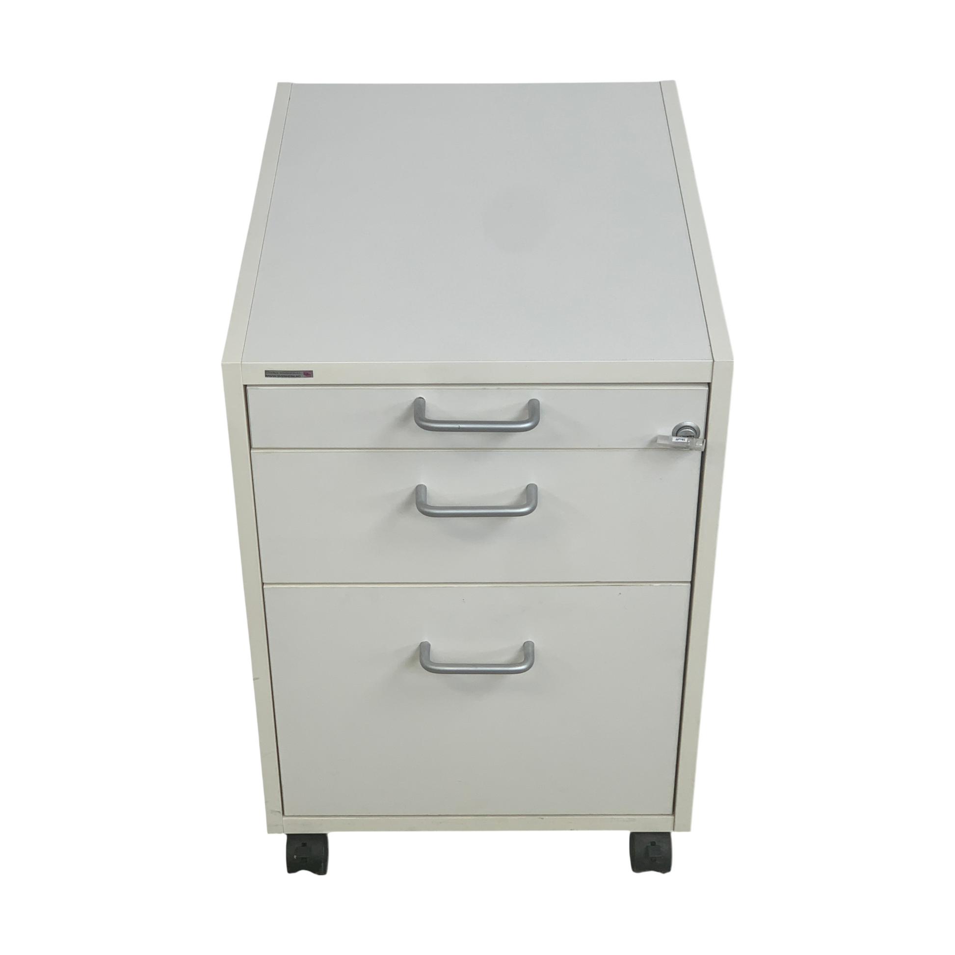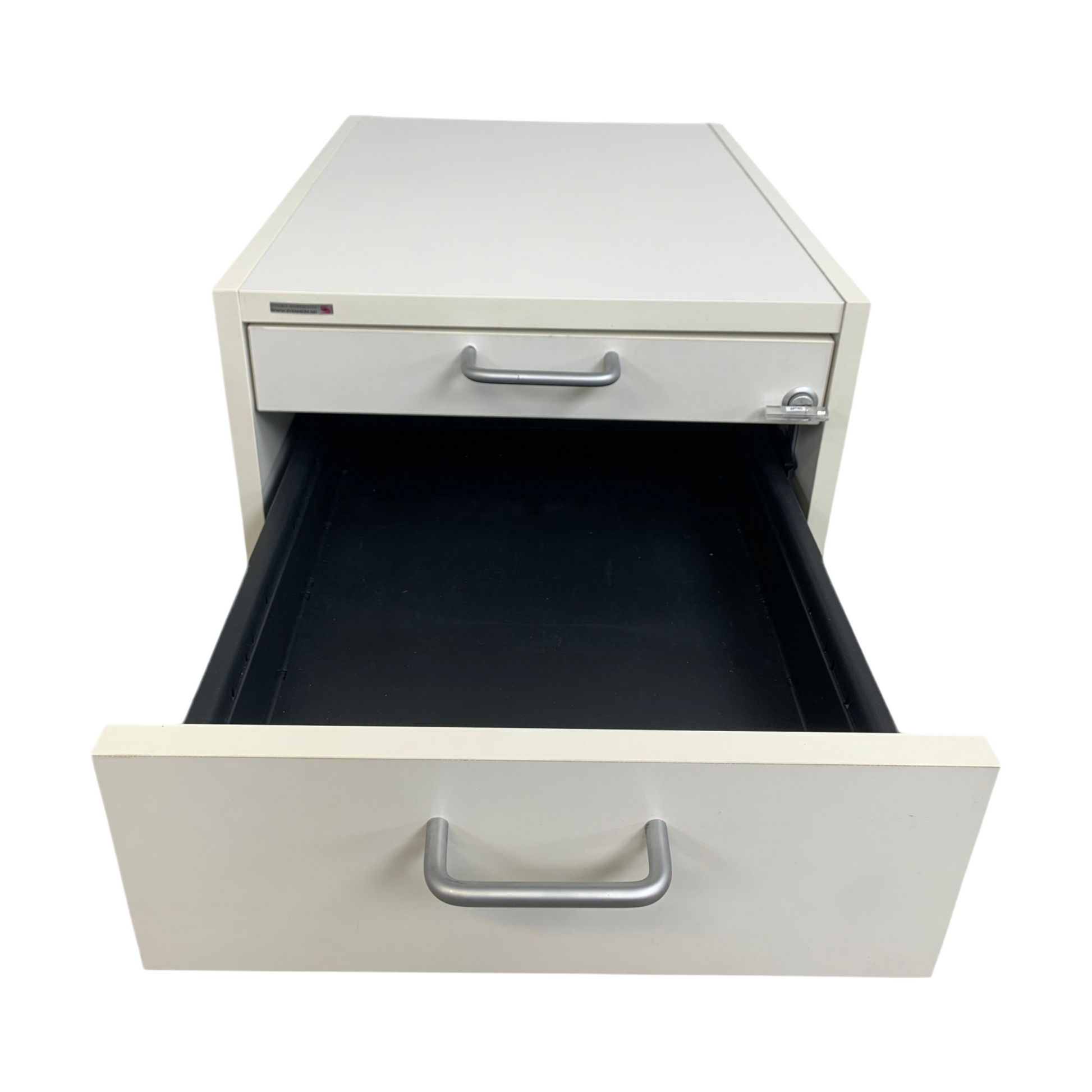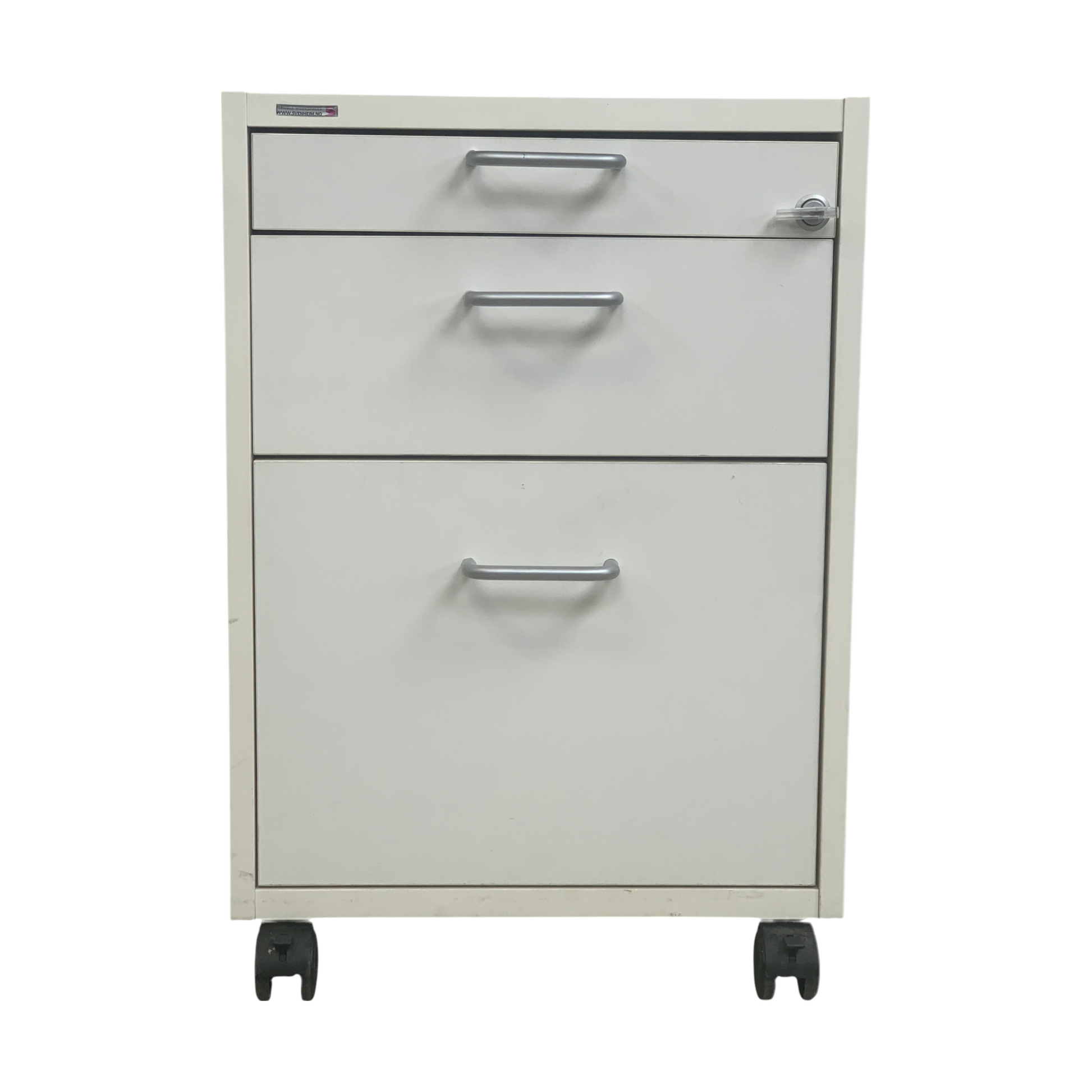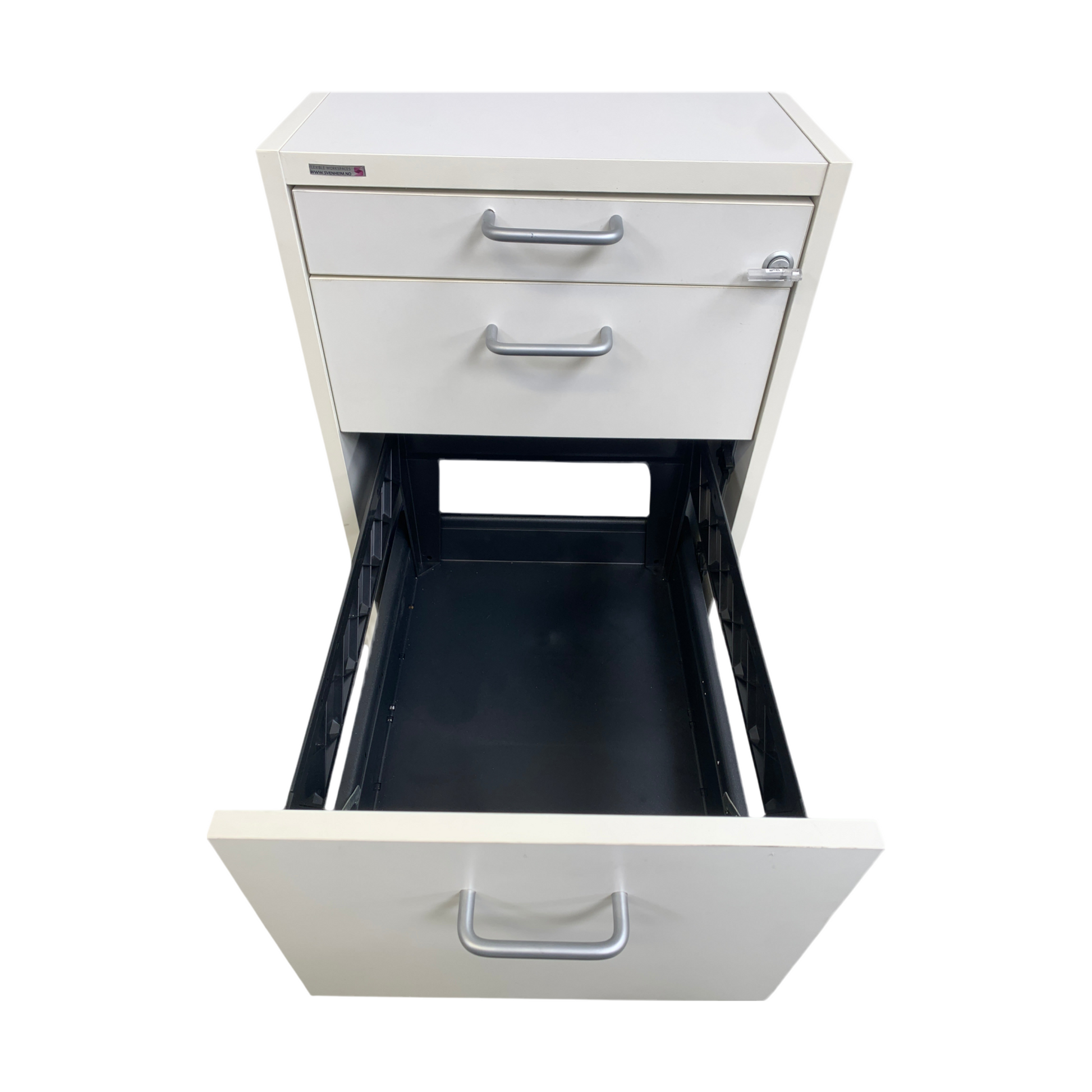 Praktisk skuffeseksjon på hjul, ideell for kontoret med begrenset plass. Med tre skuffer gir den effektiv oppbevaring for dokumenter og kontorutstyr. Den hvite fargen og enkle designet sørger for at den passer inn i de fleste kontormiljøer.