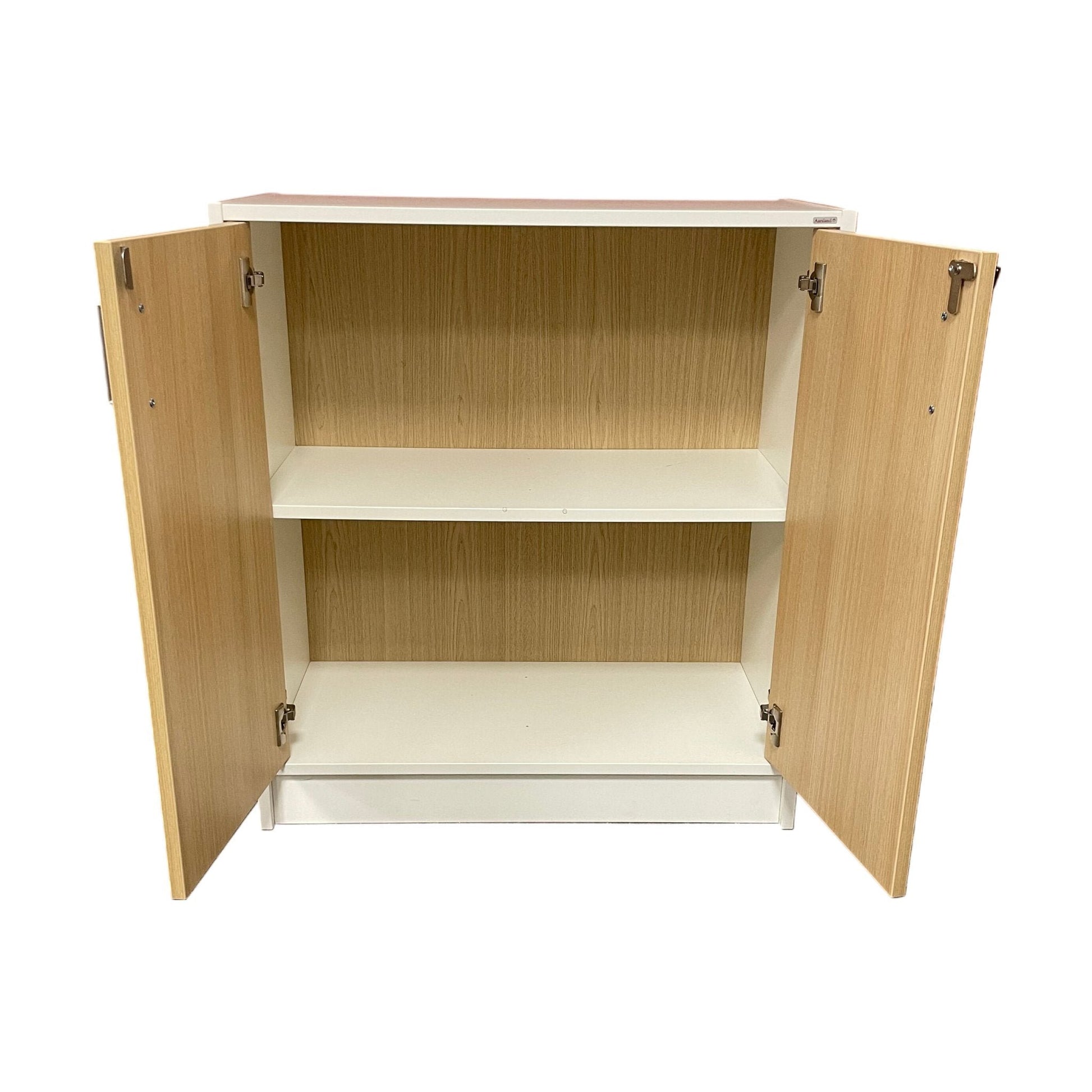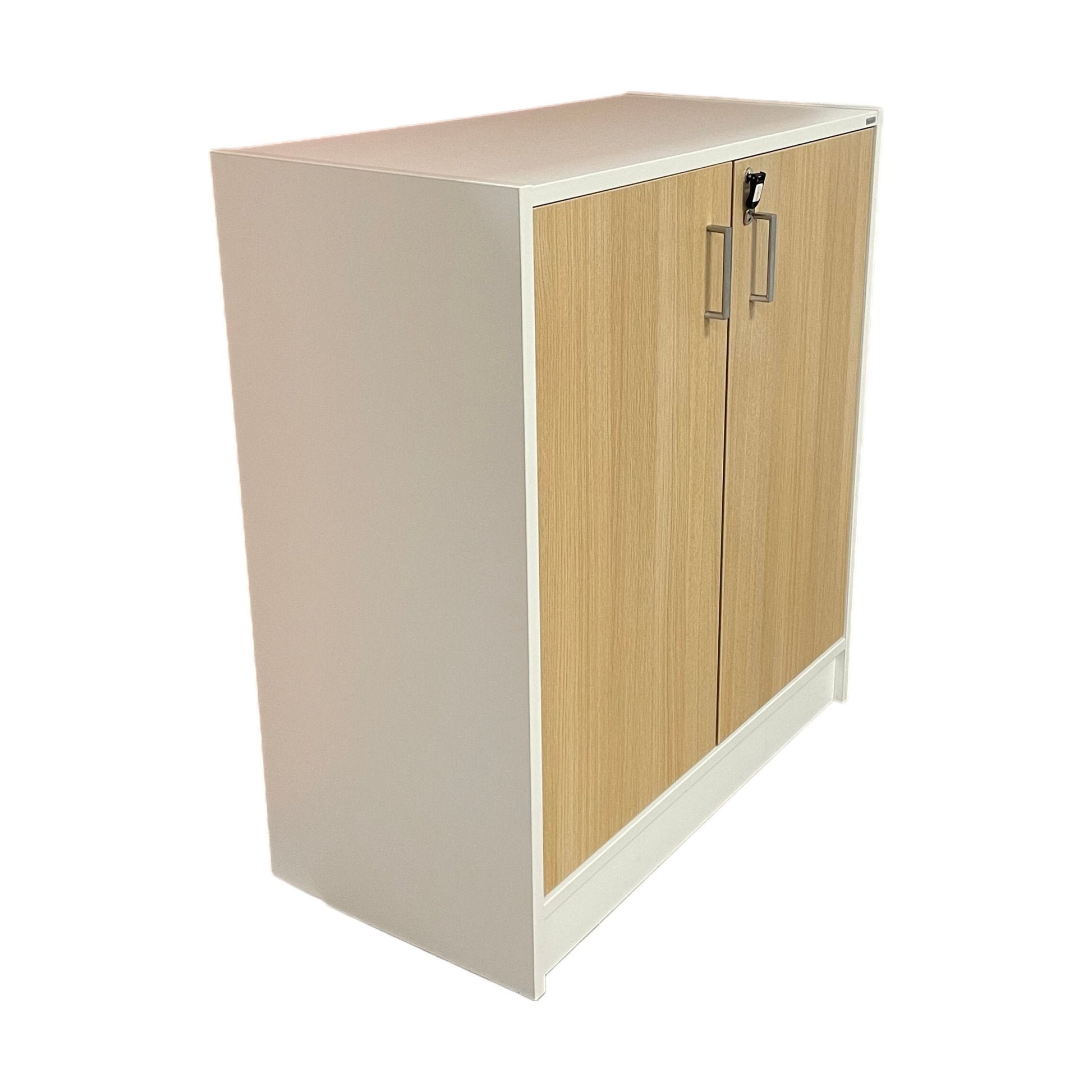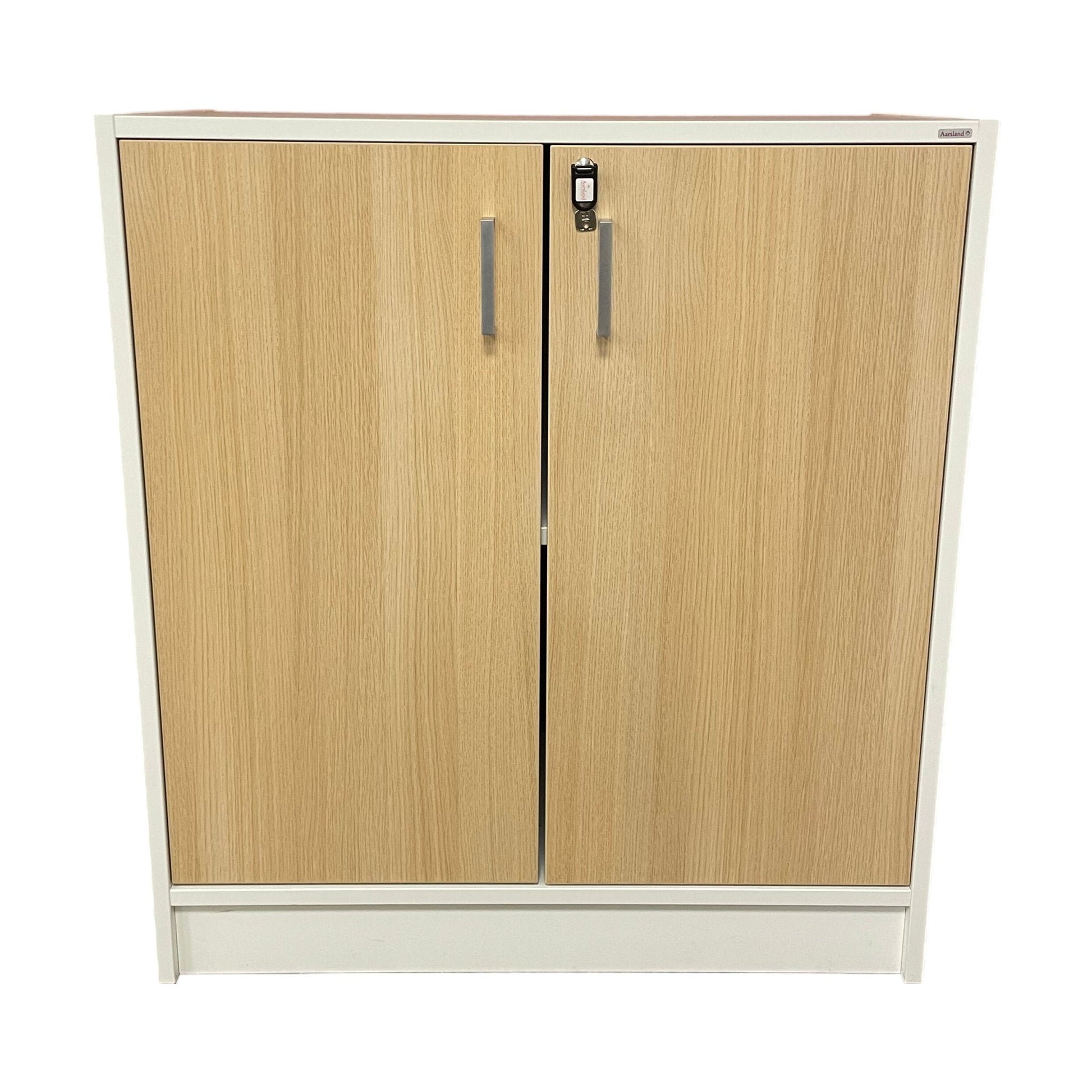Funksjonelt slagdørskap fra Aarsland med et stilrent og moderne design. Dette skapet har eikefronter som gir det et varmt og naturlig preg, perfekt for kontormiljøer. De doble dørene åpnes enkelt og gir god tilgang til oppbevaring av kontorutstyr.