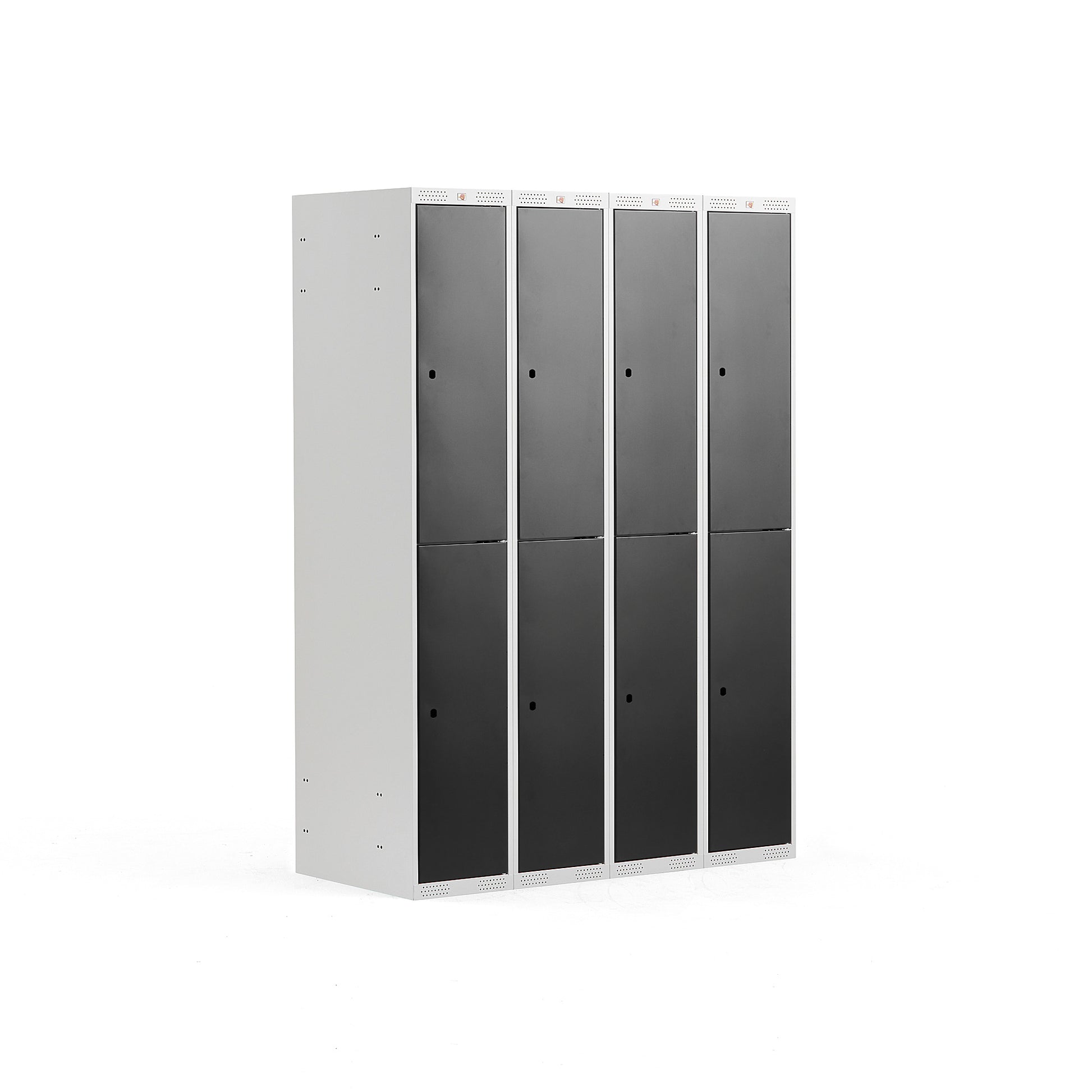 Småromsskap CLASSIC, 4 seksjoner, 8 dører, flatt tak, H1740 B1200 D550 mm, svart