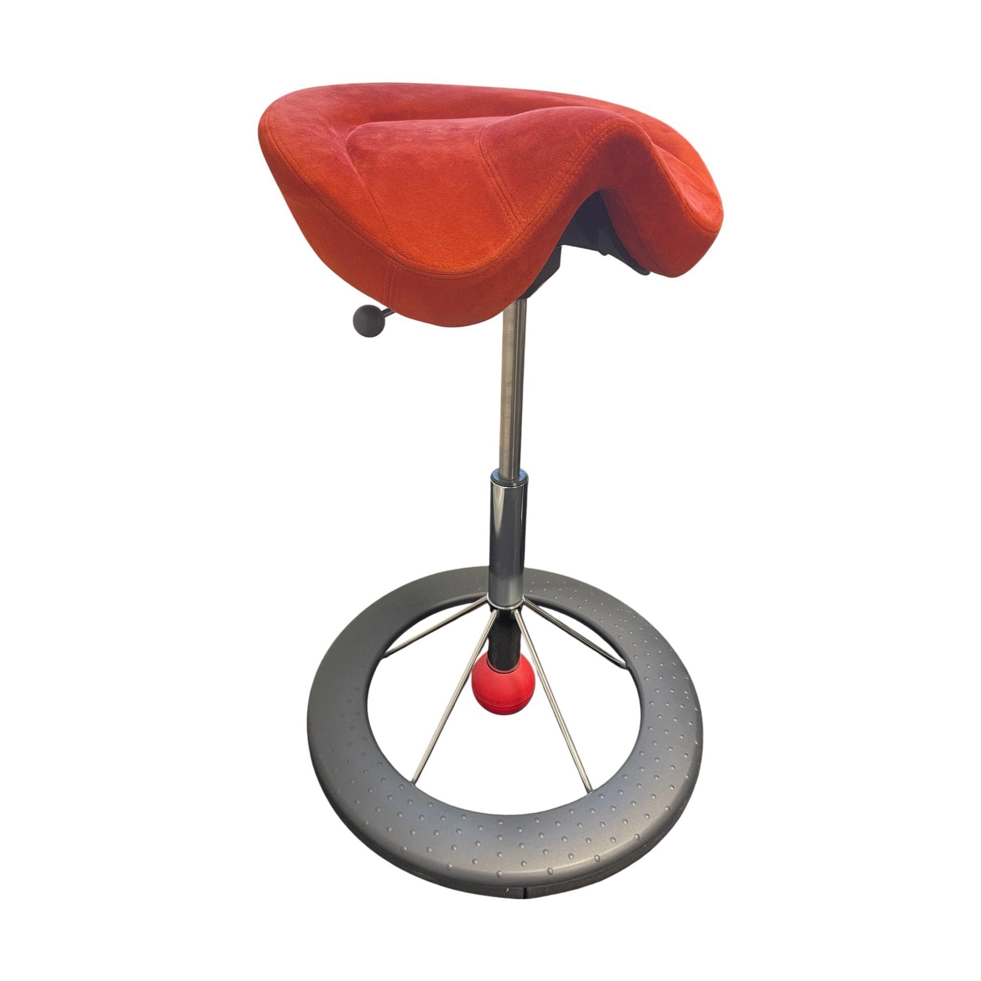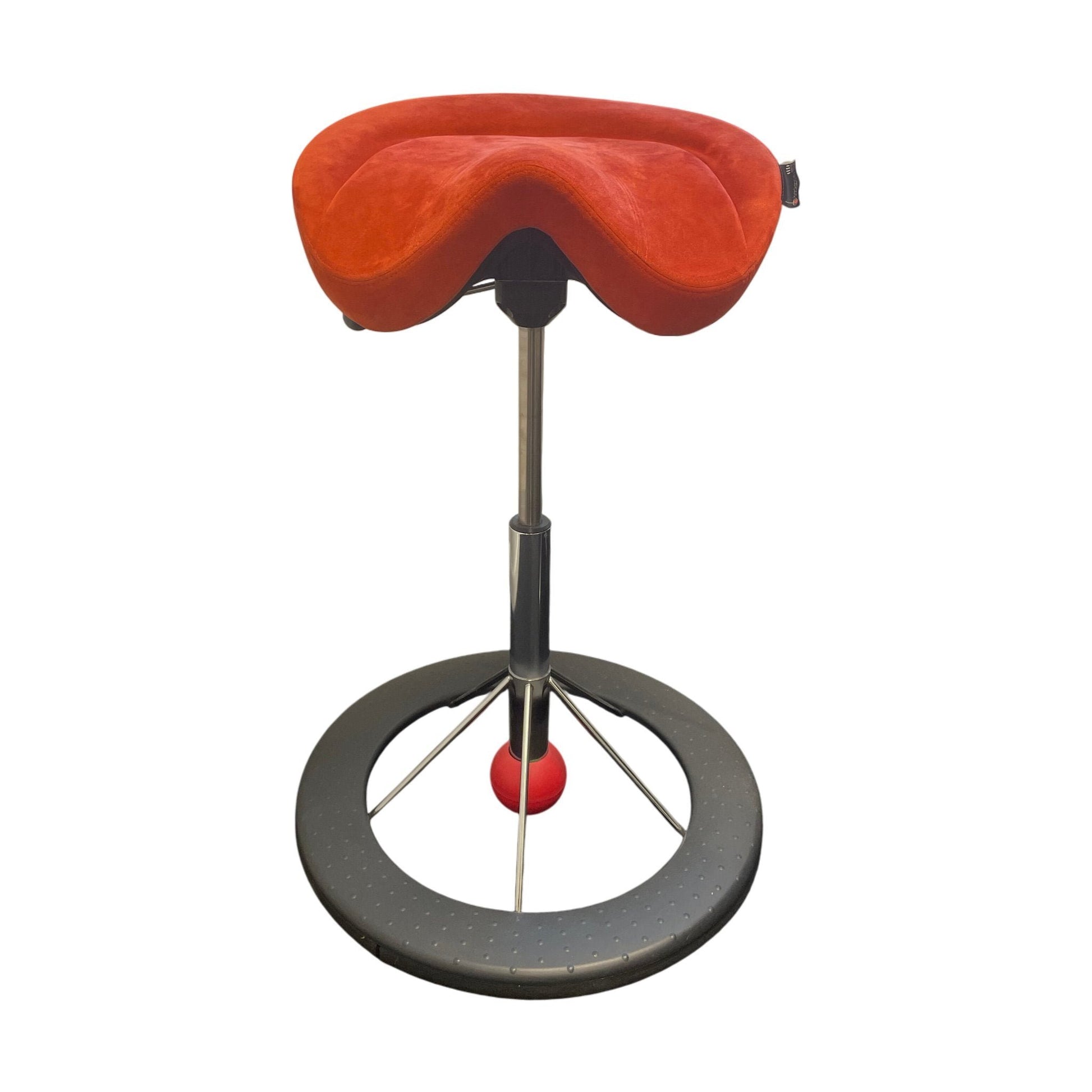 Smart barstol fra Backapp med en iøynefallende oransje sitteflate som kombinerer stil med komfort. Barstolen har en unik design som fremmer en avslappet holdning, og den justerbare høyden gjør den perfekt for bruk ved barbord eller stående arbeidsområder.