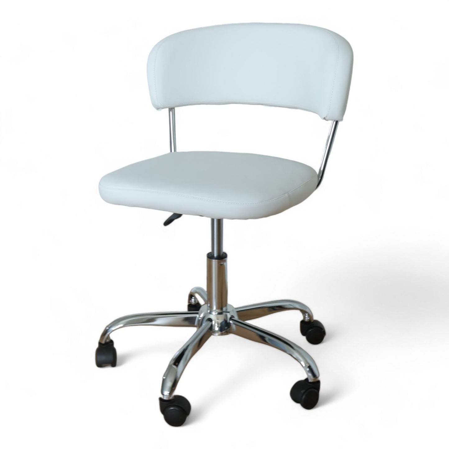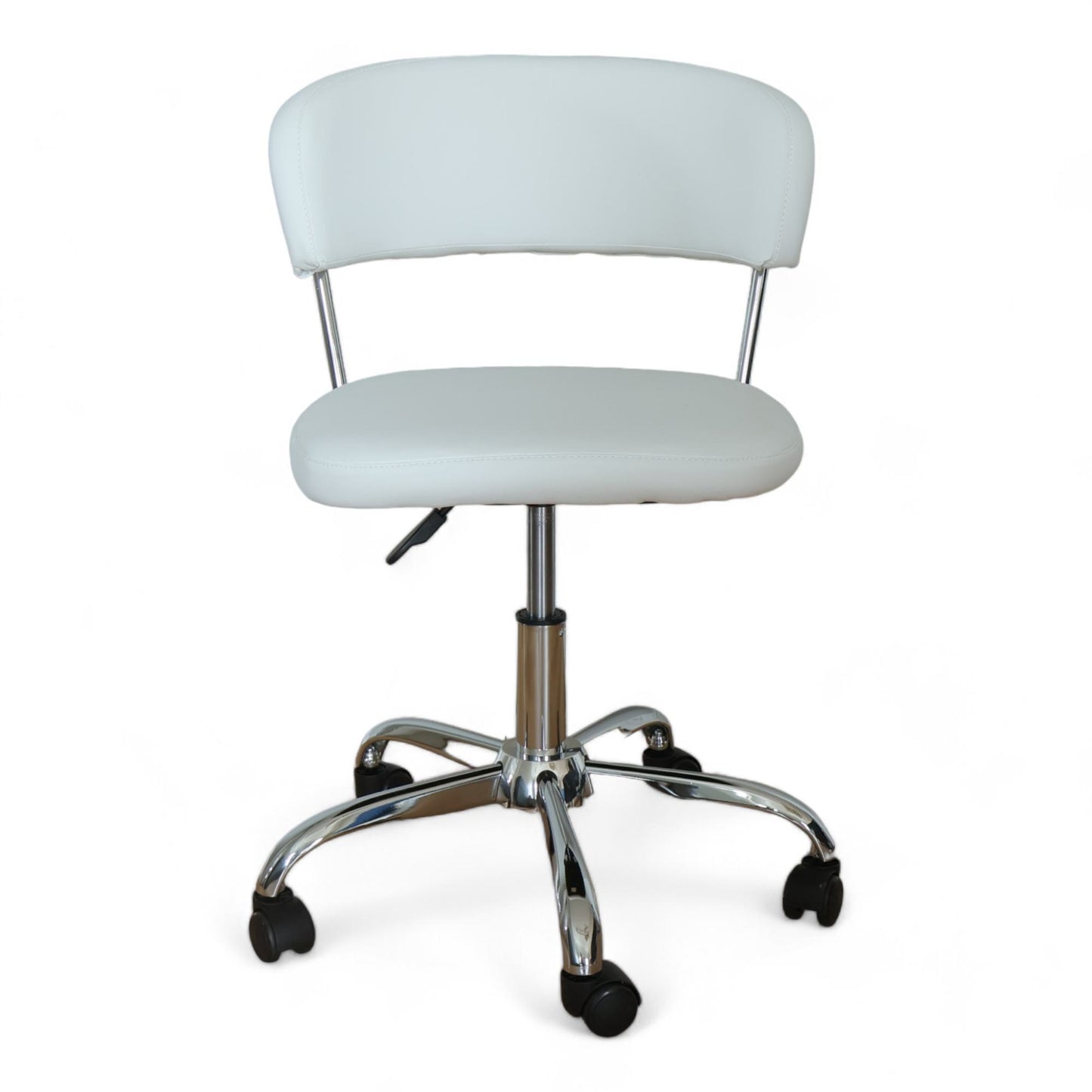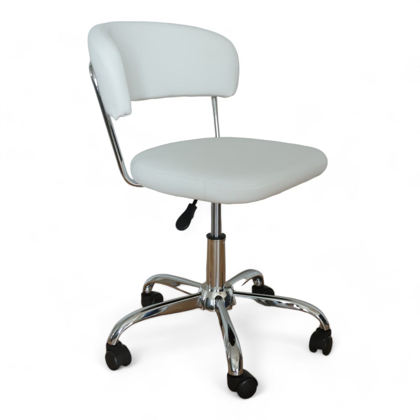 SNEDSTED møtestol i hvitt kunstskinn med kromdetaljer fra Jysk