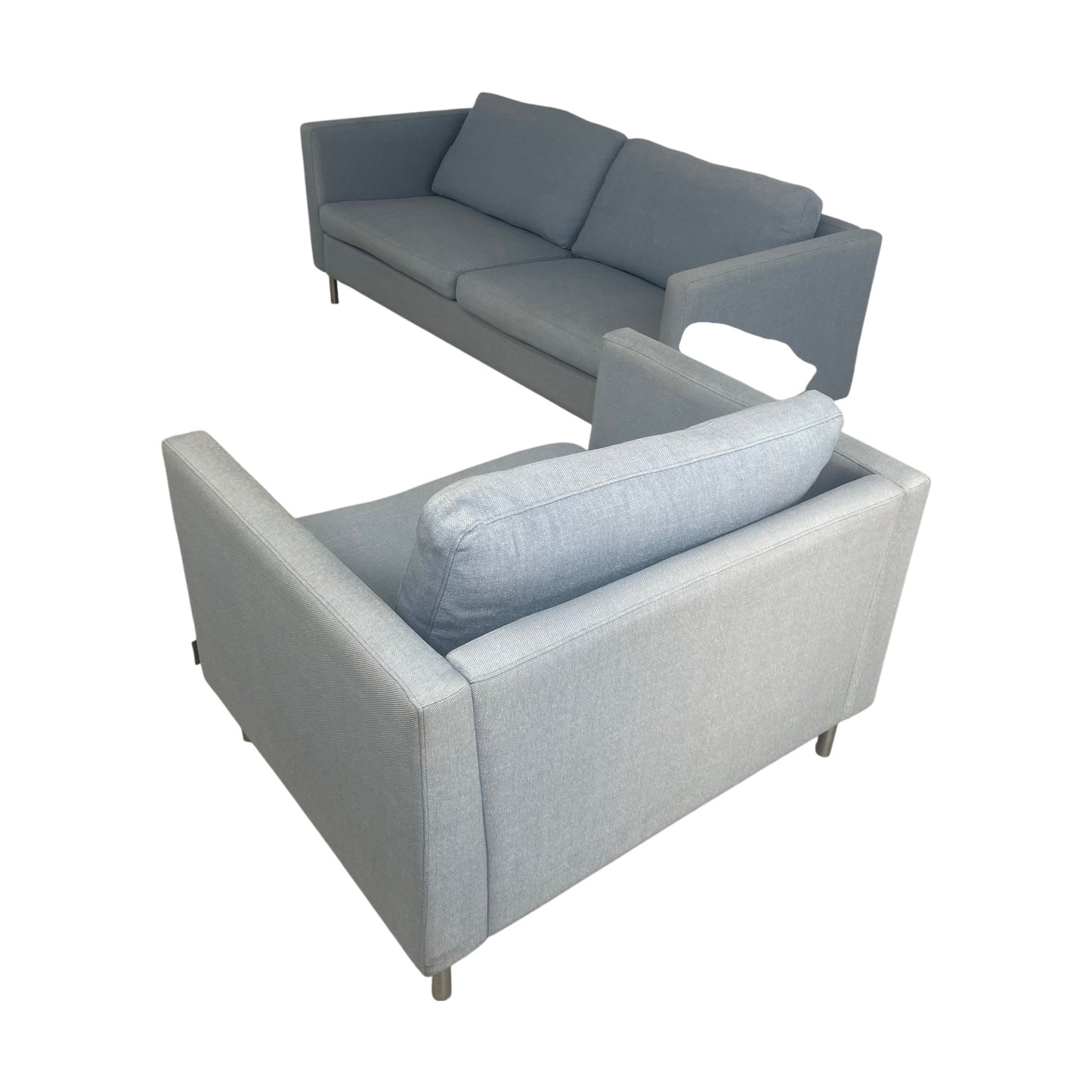 Denne sofaen og stolen fra Hødnebø er gode valg for et hjem som trenger koselige sitteplasser. Sofaen har romslig sitteplass, og det myke stoffet gir en innbydende følelse til stuen din.