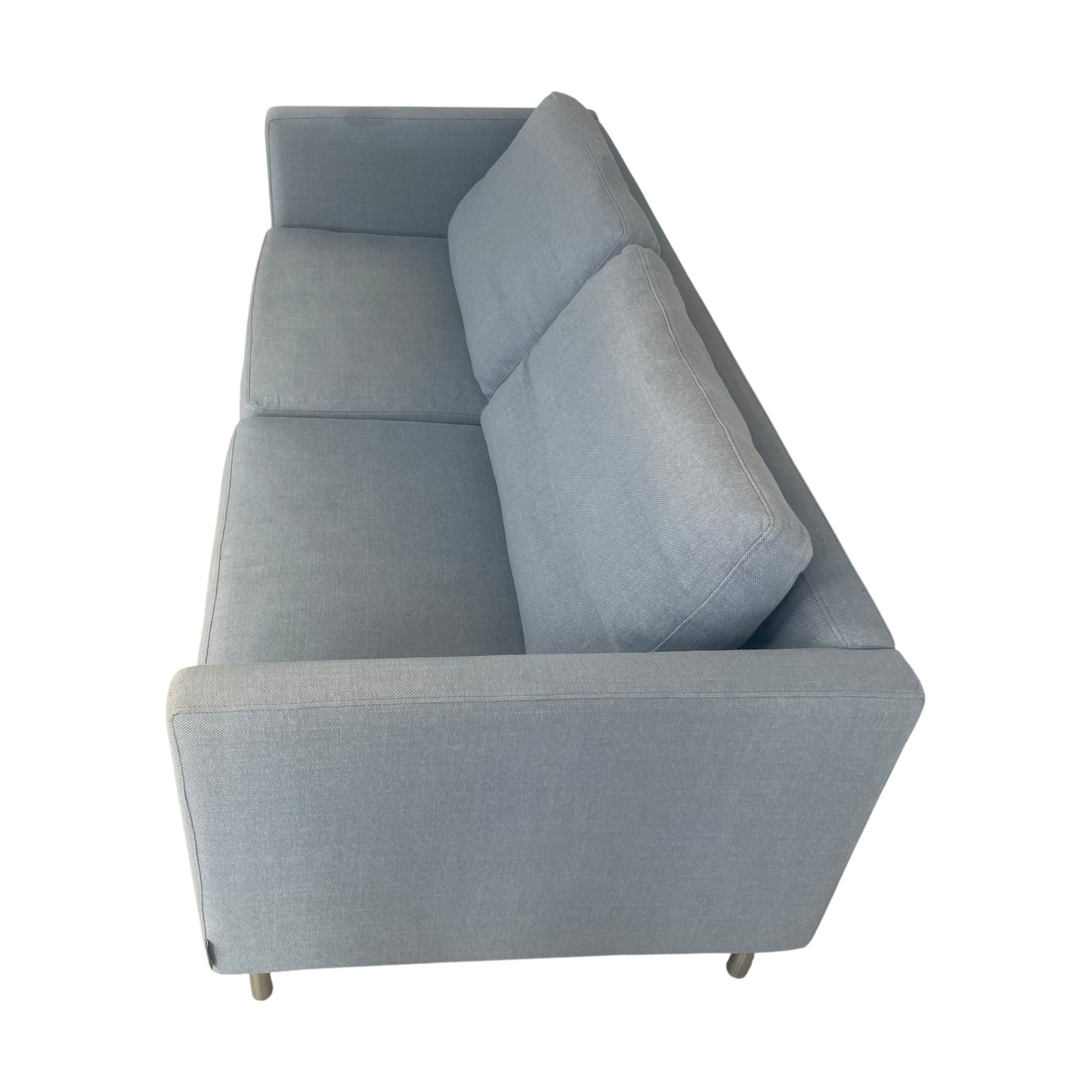 Sofaen har en fargedifferensiering med steder som er lysere enn andre, noe som gir et særpreg. Dette påvirker ikke bruken, og de slitte områdene kan sees som en del av sjarmen.
