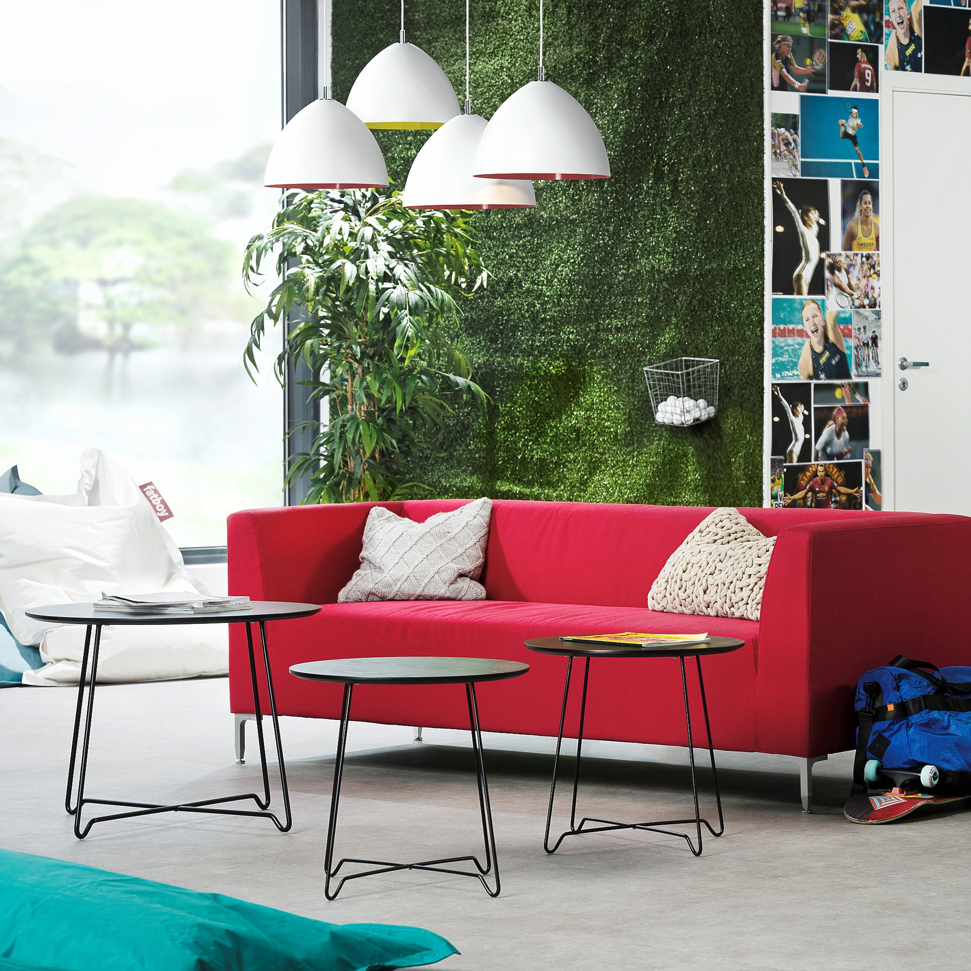 Stilrent sofabord med moderne design, perfekt for både stue og kontor. Bordets runde bordplate i laminat gir et luksuriøst preg, mens de faste benene i stål sikrer stabilitet. Det enkle, svarte uttrykket gjør bordet enkelt å kombinere med ulike innredningsstiler.