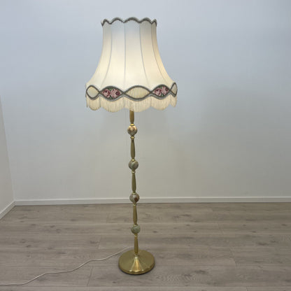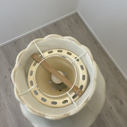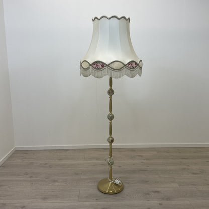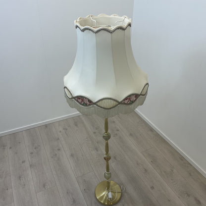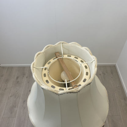 SOLGT. Vintage Sego stålampe med bjelleformet lampeskjerm i beige farge og rosemotiv