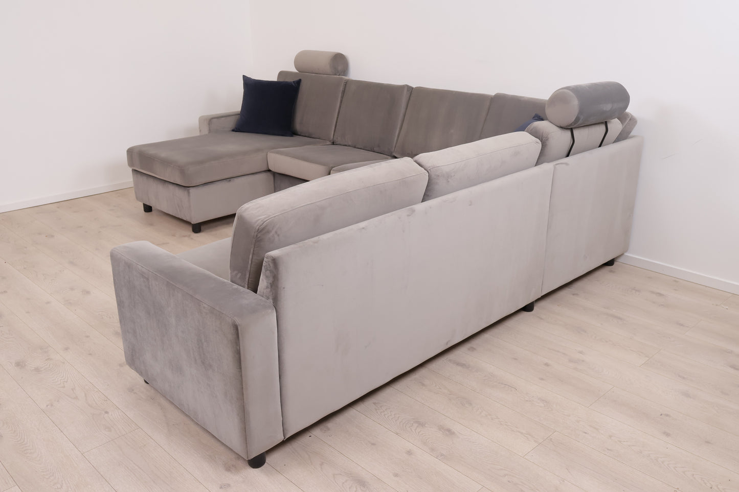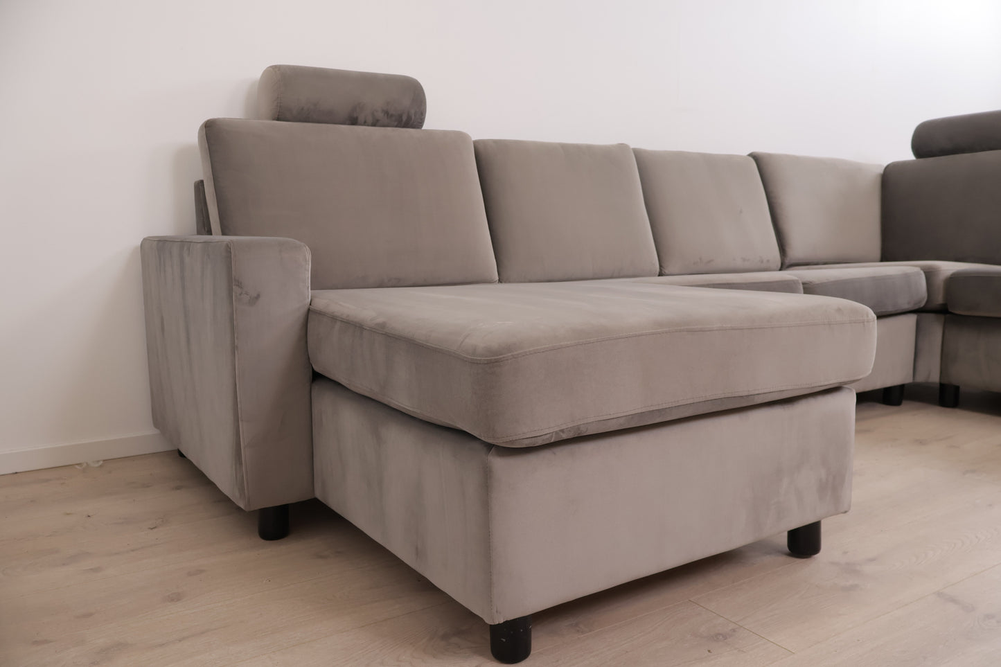 Som ny | Grå London Symphony u-sofa med sjeselong i velur
