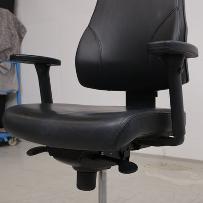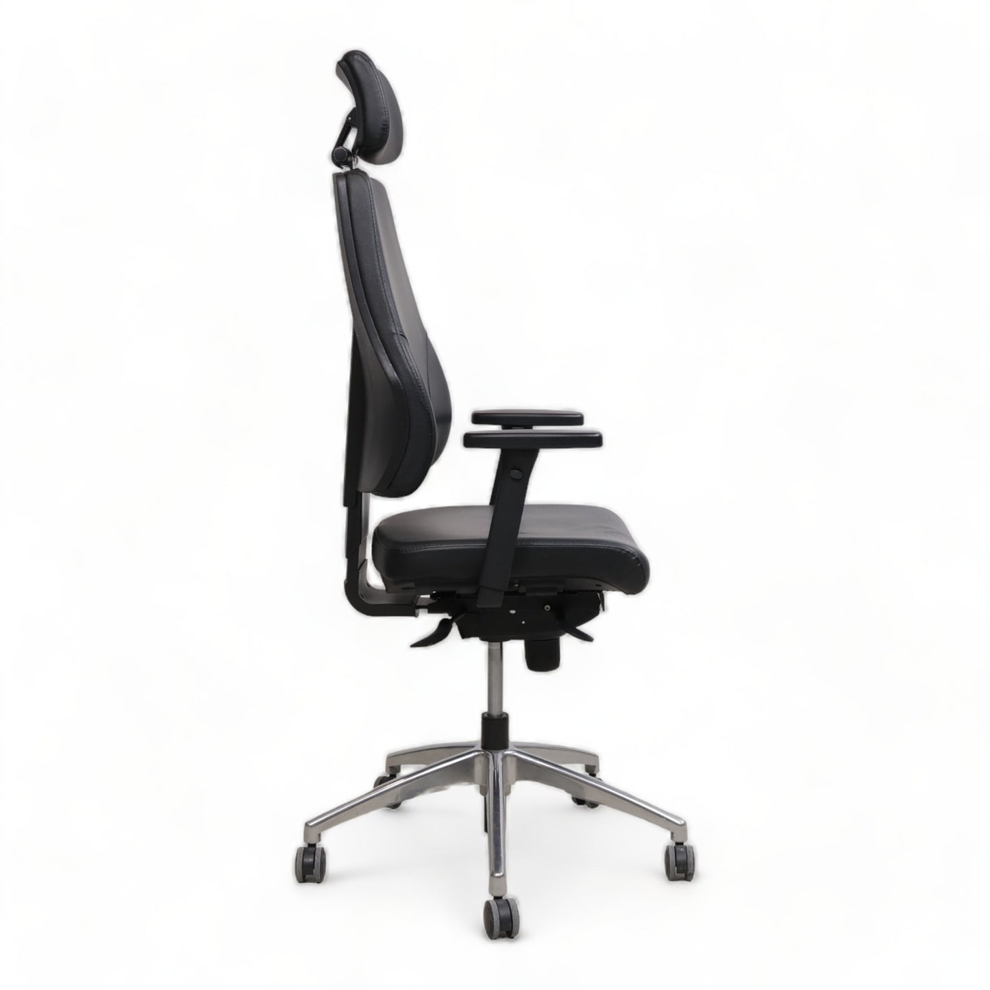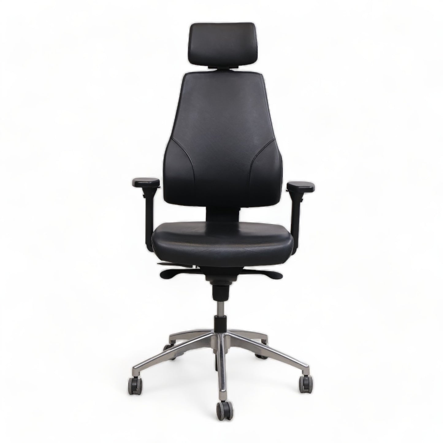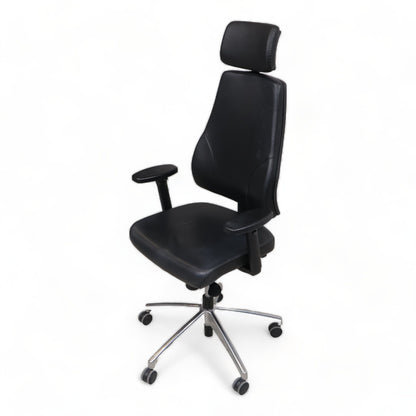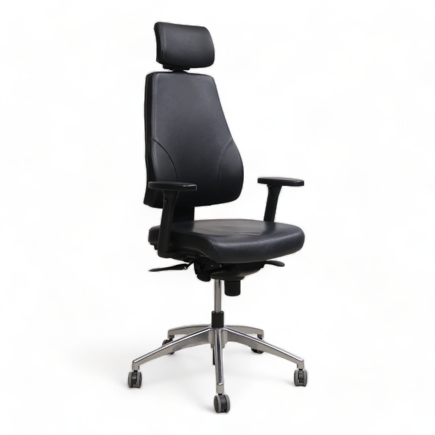 Nyrenset | Sort kontorstol i skinn med høy rygg og nakkestøtte