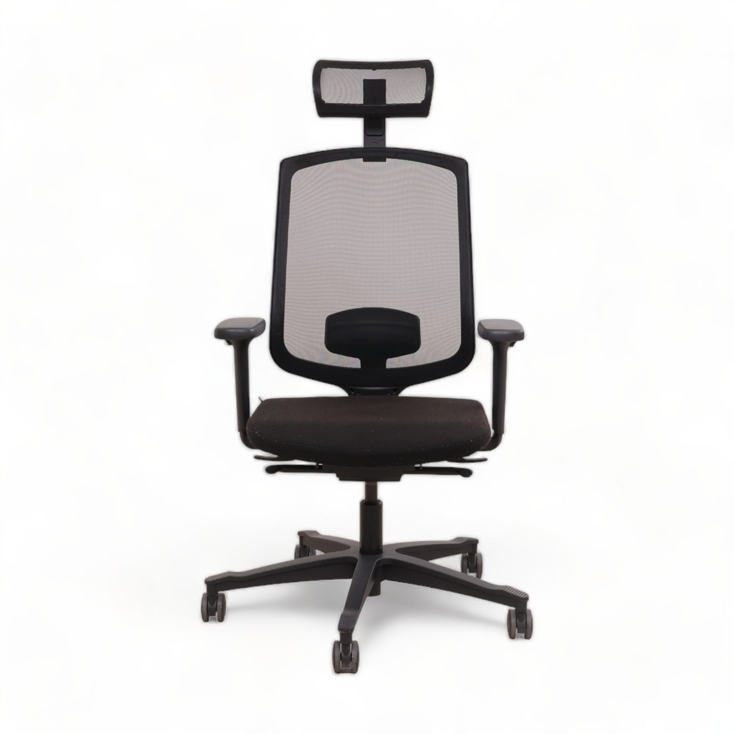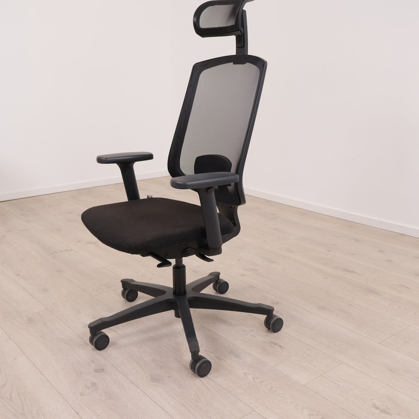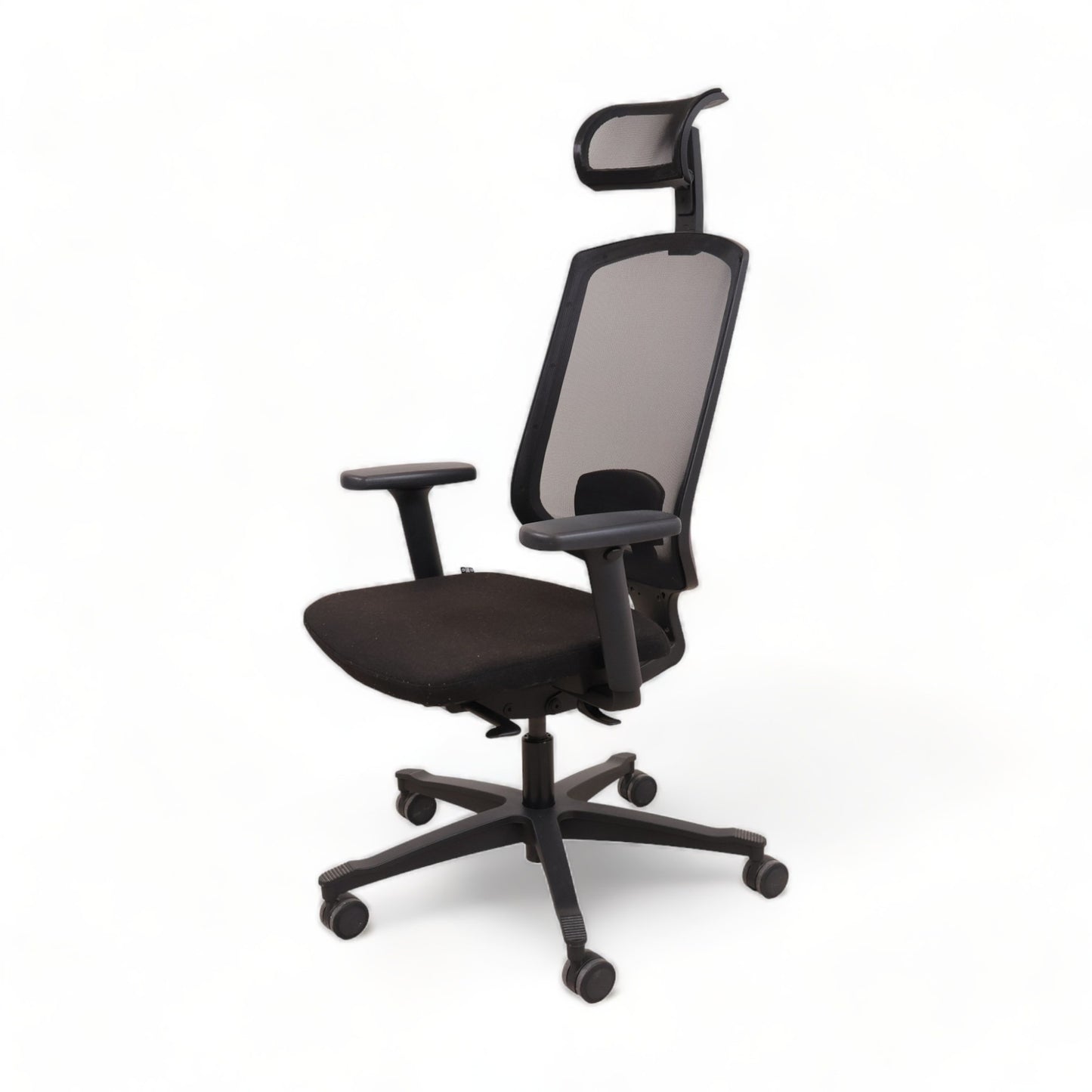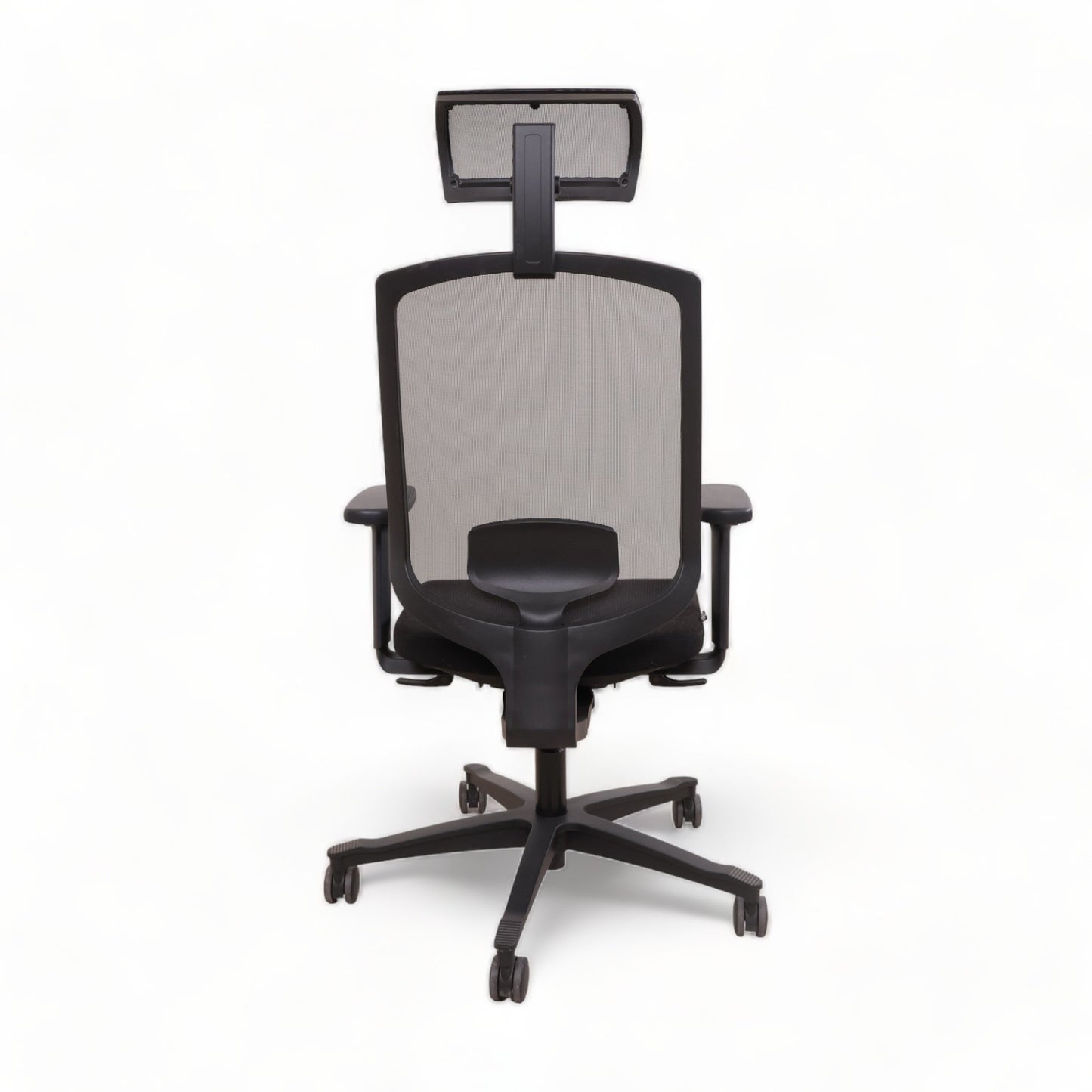 Sort kontorstol med høy rygg, mesh-rygg og justerbare armlener