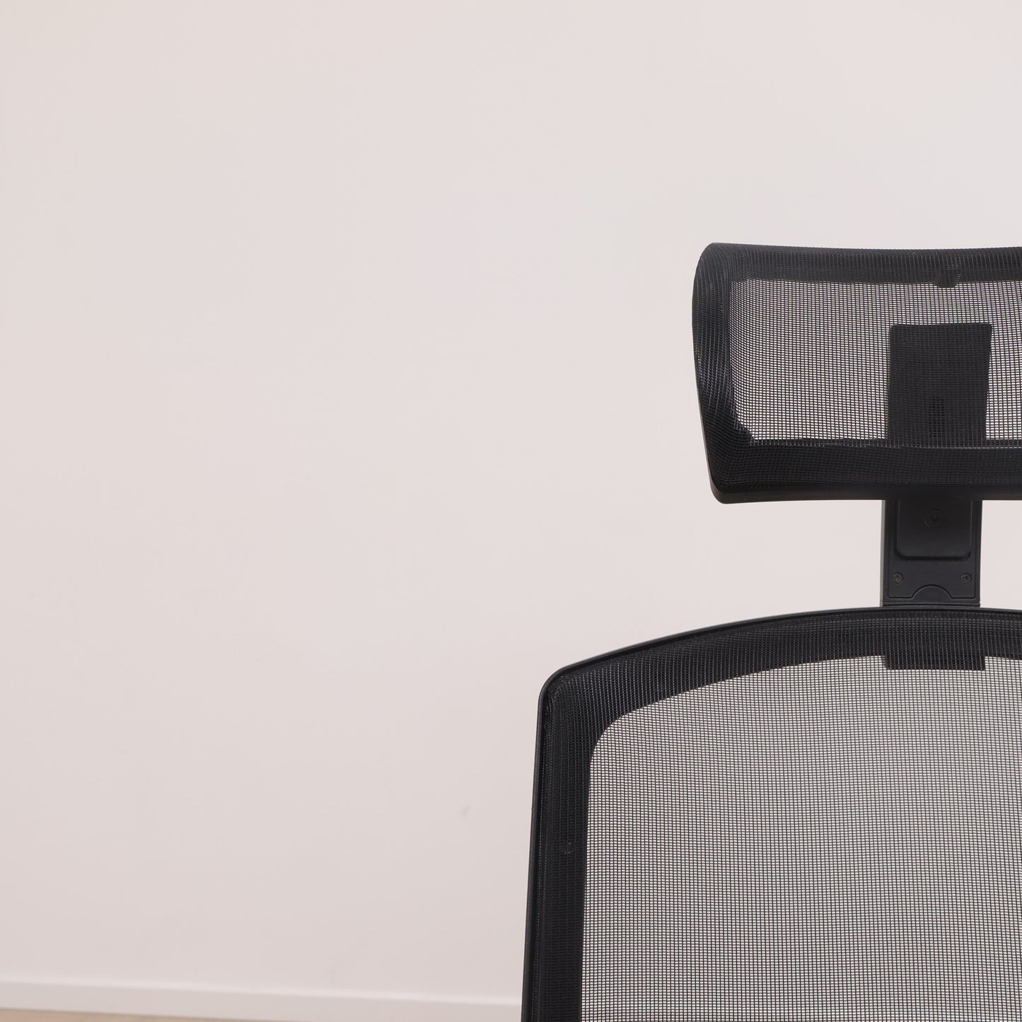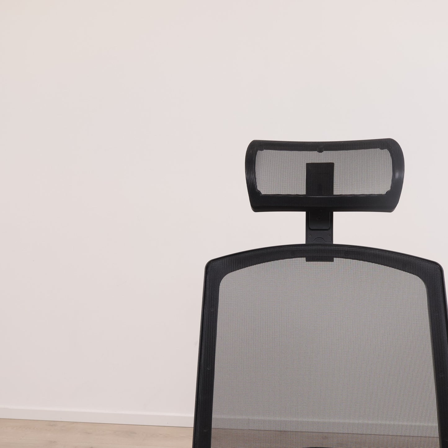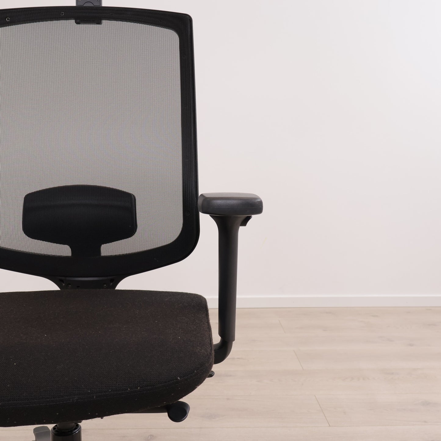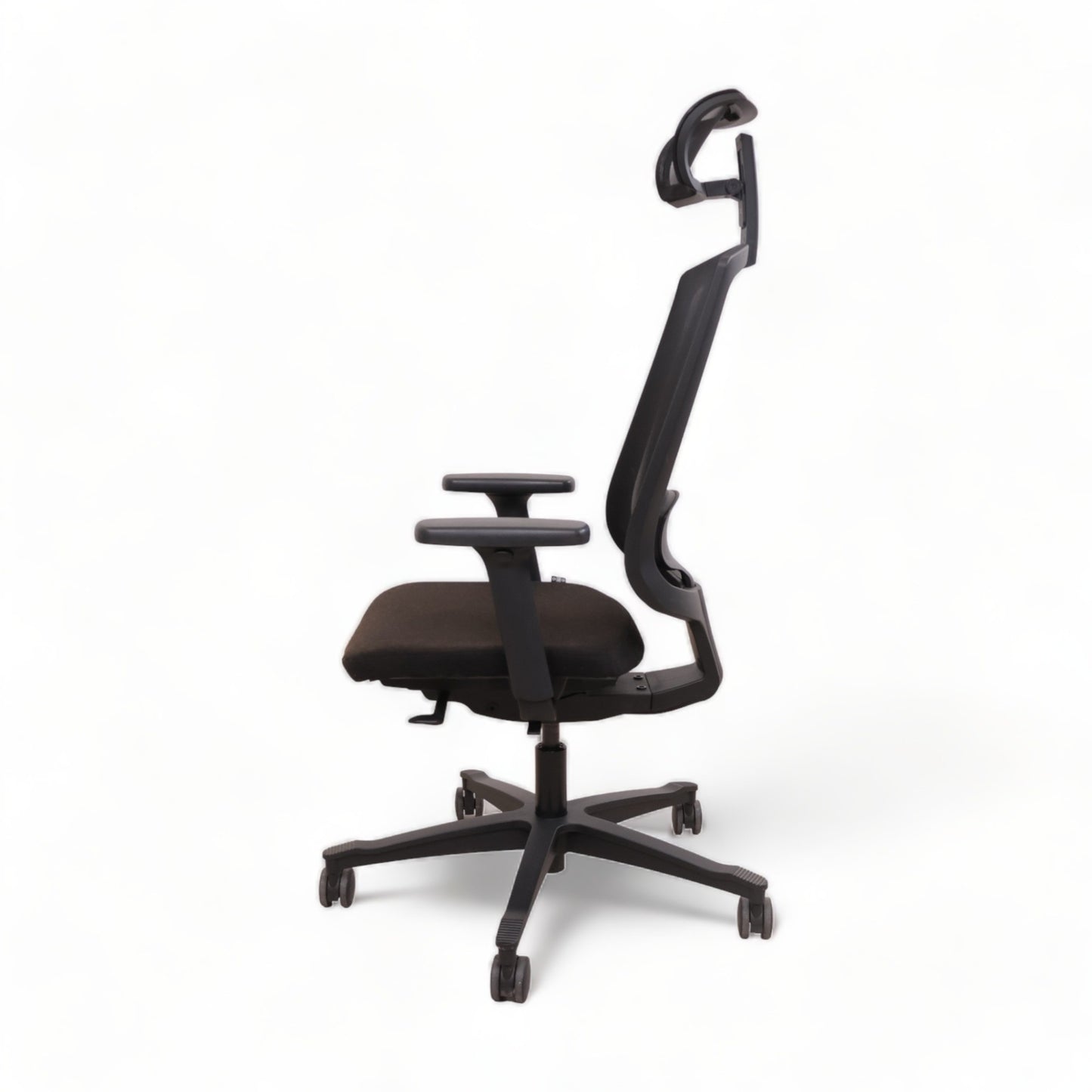 Sort kontorstol med høy rygg, mesh-rygg og justerbare armlener